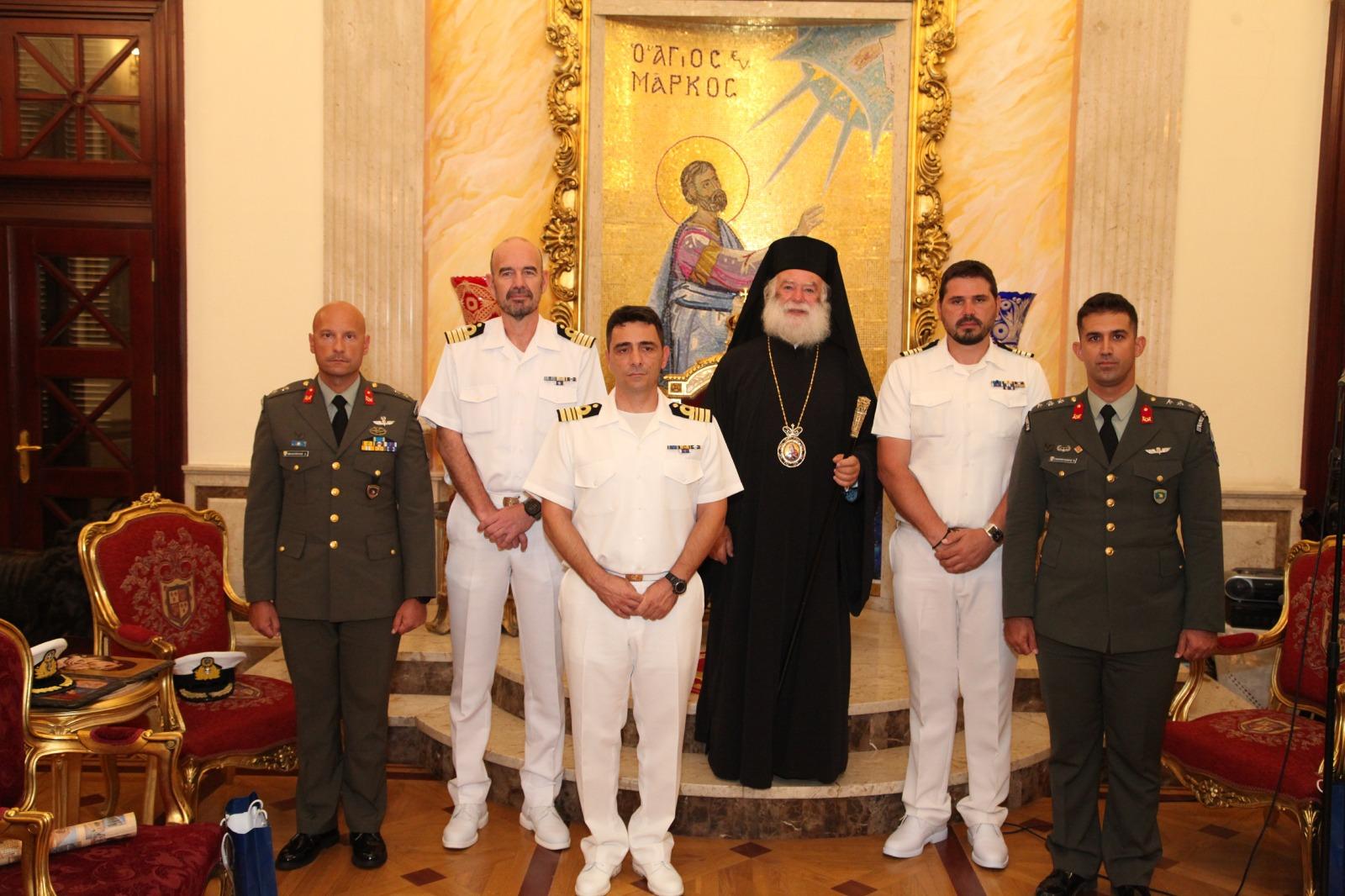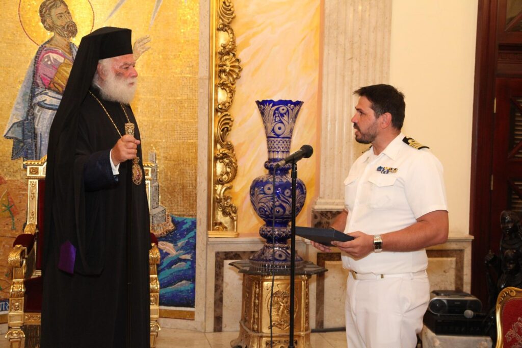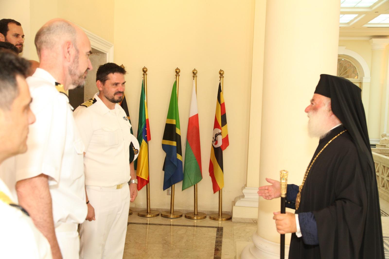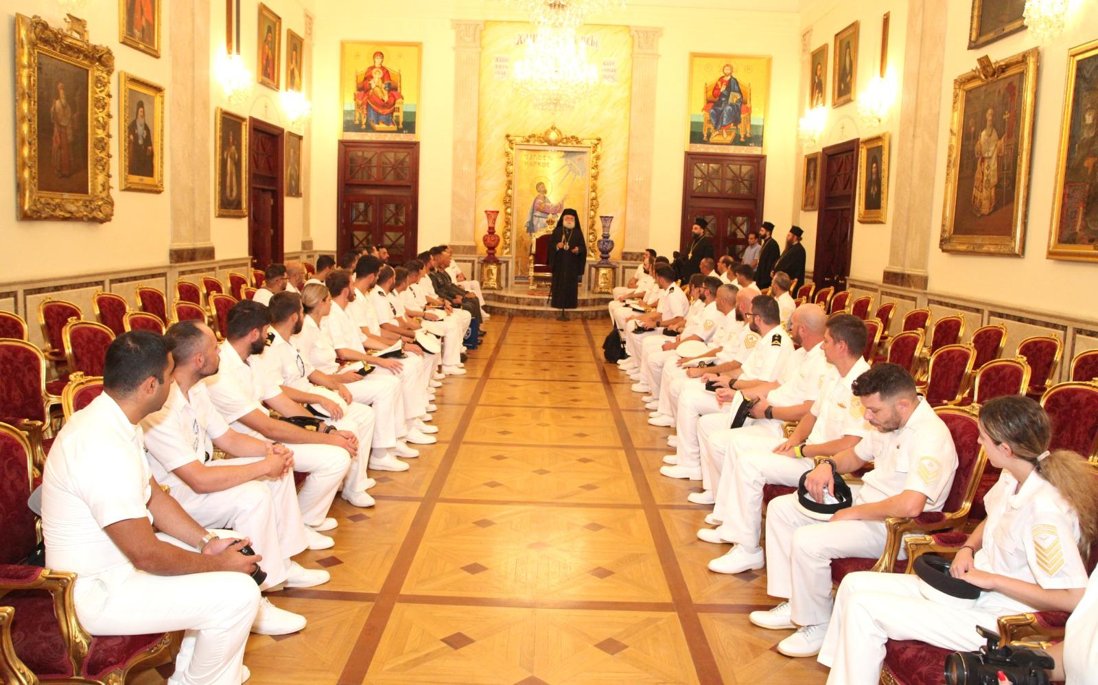 Στην Πατριαρχική Καθέδρα του Δευτερόθρονου Πατριαρχείου, υποδέχθηκε ο Μακαριώτατος Πάπας και Πατριάρχης Αλεξανδρείας και πάσης Αφρικής κ.κ. Θεόδωρος Β΄ τα πληρώματα της Φρεγάτας «ΛΗΜΝΟΣ» και του Αρματαγωγού «ΙΚΑΡΙΑ», καθώς και στελέχη της Πολεμικής Αεροπορίας τα οποία επισκέπτονται την Μεγάλη Πόλη της Αλεξάνδρειας στο πλαίσιο της πολυεθνικής άσκησης “Bright Star 25”.