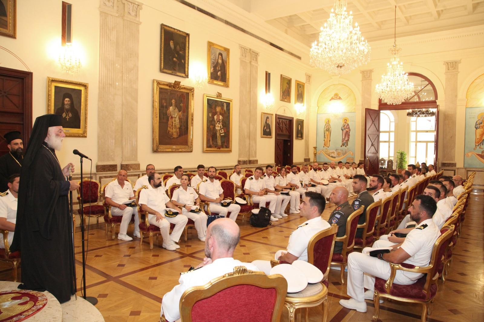 Κατά τον Χαιρετισμό του, ο Μακαριώτατος υποδέχθηκε με θερμούς λόγους τα πληρώματα και τα στελέχη των Ενόπλων Δυνάμεων τονίζοντας: