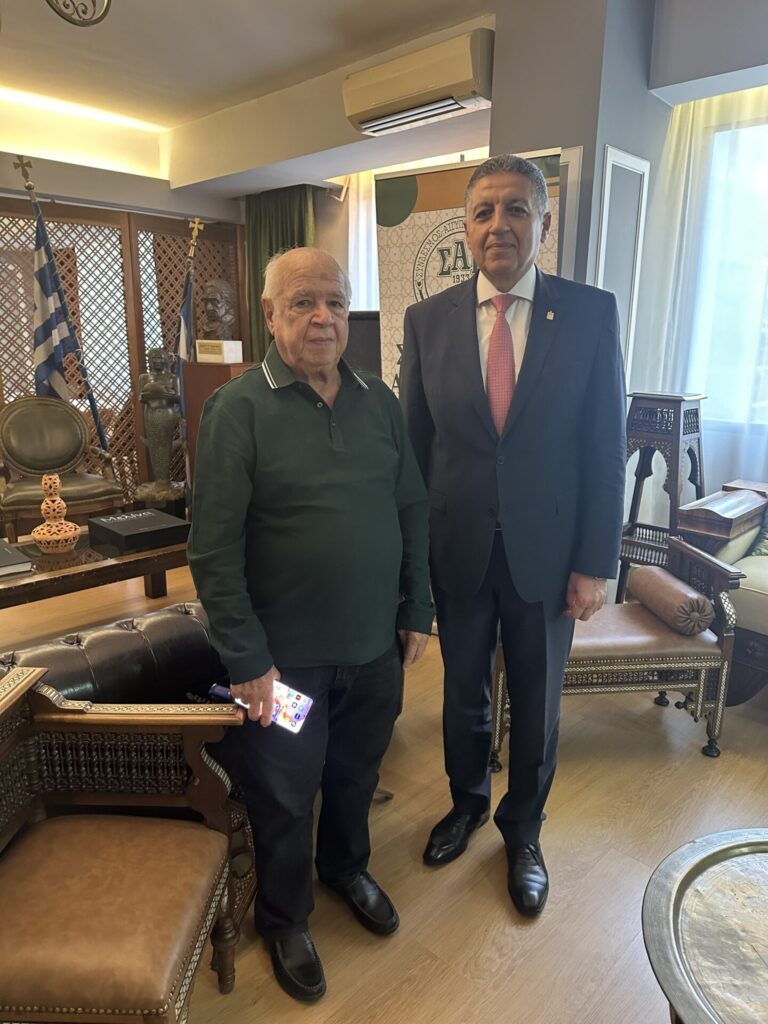 Την Πέμπτη 23 Οκτωβρίου 2025, ο Σύνδεσμος Αιγυπτιωτών Ελλήνων είχε την ιδιαίτερη τιμή και χαρά να υποδεχθεί στο φιλόξενο εντευκτήριό του τον Εξοχότατο Πρέσβη της Αραβικής Δημοκρατίας της Αιγύπτου, κ. Omar Amer Youssef. Τον Πρέσβη καλωσόρισε με θερμά λόγια ο Πρόεδρος του Συνδέσμου, κ. Κώστας Μιχαηλίδης, συνοδευόμενος από μέλη του Διοικητικού Συμβουλίου.