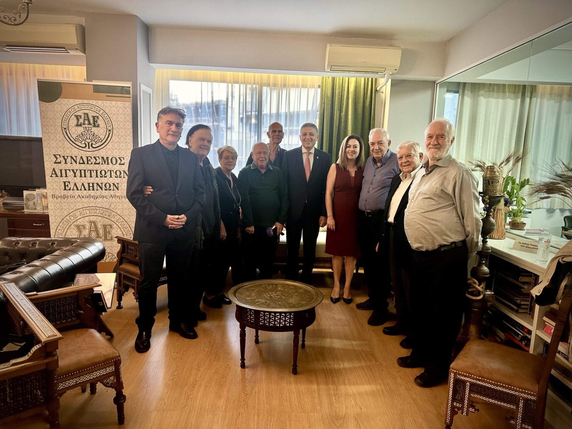 Την Πέμπτη 23 Οκτωβρίου 2025, ο Σύνδεσμος Αιγυπτιωτών Ελλήνων είχε την ιδιαίτερη τιμή και χαρά να υποδεχθεί στο φιλόξενο εντευκτήριό του τον Εξοχότατο Πρέσβη της Αραβικής Δημοκρατίας της Αιγύπτου, κ. Omar Amer Youssef. Τον Πρέσβη καλωσόρισε με θερμά λόγια ο Πρόεδρος του Συνδέσμου, κ. Κώστας Μιχαηλίδης, συνοδευόμενος από μέλη του Διοικητικού Συμβουλίου.