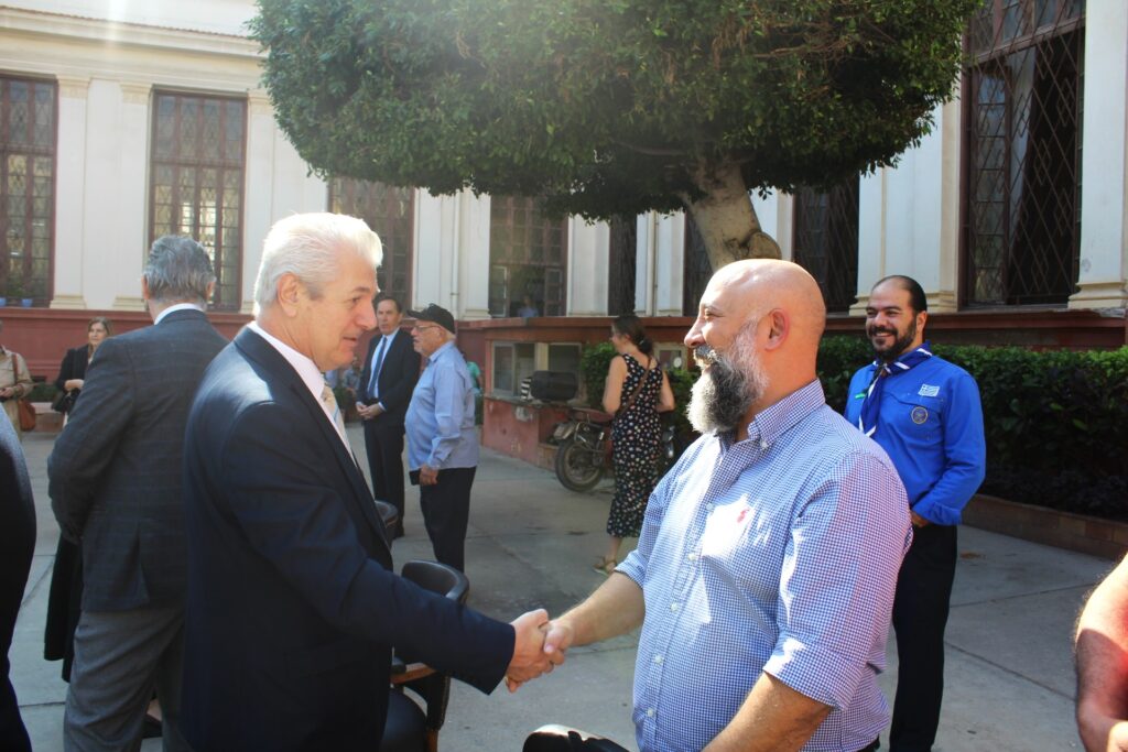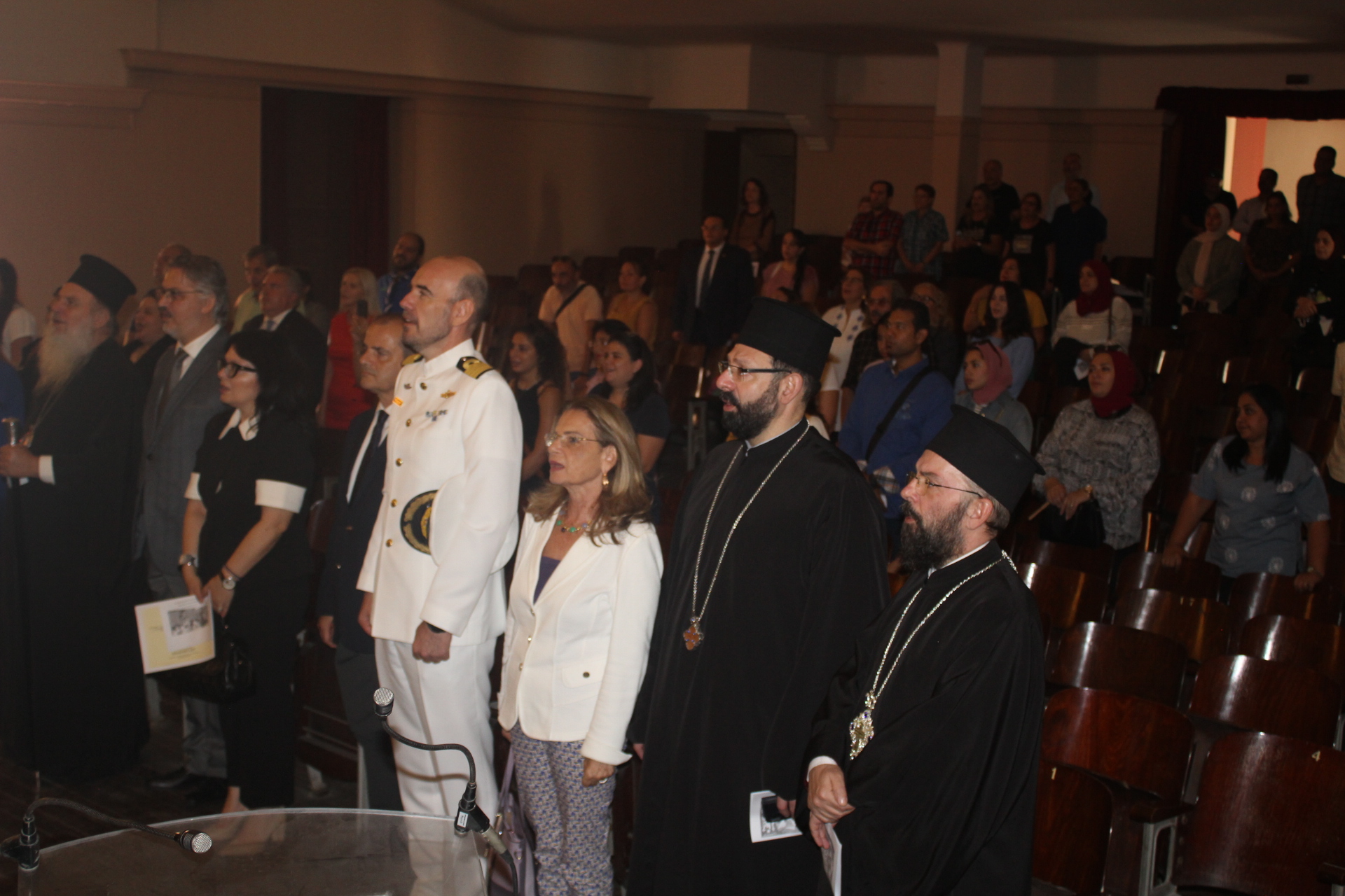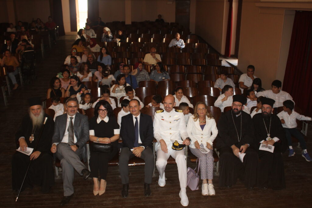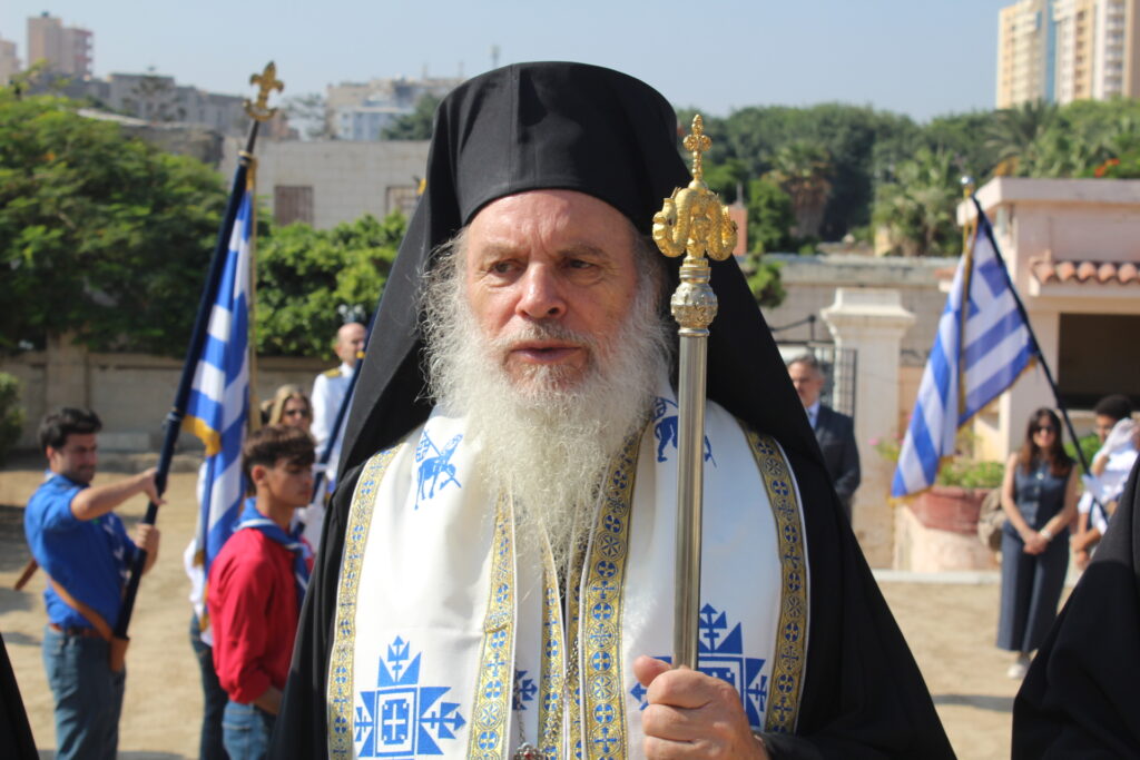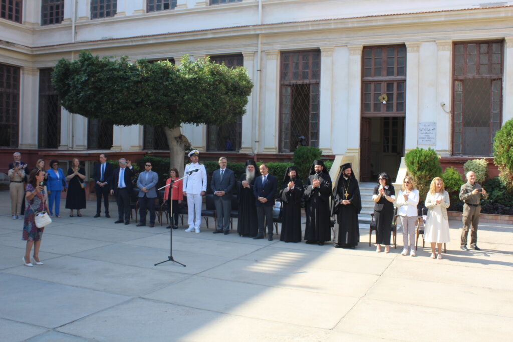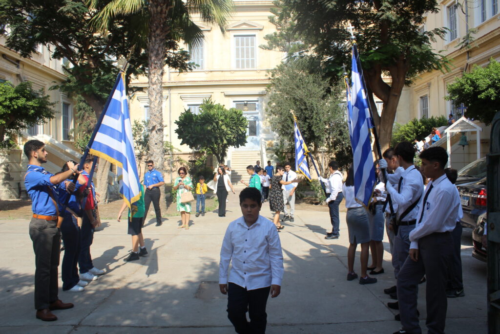 Στην Επέτειο της 28ης Οκτωβρίου παρέστησαν οι κάτωθι: ο Σεβασμιότατος Μητροπολίτης κ. Γερμανός Προϊστάμενος της Ιεράς Μονής του Οσίου Σάββα του Ηγιασμένου, μετά των Πανοσιολογιότατων Αρχιμανδριτών κυρίων Αθανασίου, Ιωακείμ και Επιφανίου, ο Γενικός Πρόξενος της Ελλάδας στην Αλεξάνδρεια κ. Ιωάννης Πυργάκης, μετά της συζύγου του κας Κατερίνας Γιδαράκου, ο Σύνδεσμος της Ελλάδας στην Αλεξάνδρεια Πλοίαρχος του Πολεμικού Ναυτικού κ. Χρυσόστομος Ράγκος μετά της συζύγου του κας Έλλης Ράγκου, ο Πρόεδρος της Ελληνικής Κοινότητας Αλεξανδρείας κ. Ανδρέας Βαφειάδης, ο Γενικός Γραμματέας κ. Νικόλαος Κατσιμπρής, ο Αναπληρωτής Γενικός Γραμματέας κ. Δημήτριος Κάβουρας, ο Κοινοτικός Επίτροπος κ. Βασίλειος Ζουές, η Πρόεδρος του ΕΝΟΑ και του Πτολεμαίου Α΄ κα Λιλίκα Θλιβίτου, η Πρόεδρος του Λυκείου Ελληνίδων Αλεξανδρείας κα Αλίκη Αντωνίου, η Διευθύντρια του Γυμνασίου Λυκείου κα Αφροδίτη Πεβερέτου, η Διευθύντρια του Τοσιτσαίου Πρατσίκειου Δημοτικού κα Αδαμαντία Νικολακοπούλου, η Διευθύντρια των Κοινοτικών Ξενώνων και του Ιδρύματος «Μάννα» κα Ελένη Άστωρ, ο Dr αρχαιολόγος κ. Κυριάκος Σαββόπουλος, ο μουσικός κ. Μανώλης Χναράκης, όλοι οι εκπαιδευτικοί, οι εργαζόμενοι στην Κοινότητα, γονείς συγγενείς και φίλοι των μαθητών που παρέλασαν.