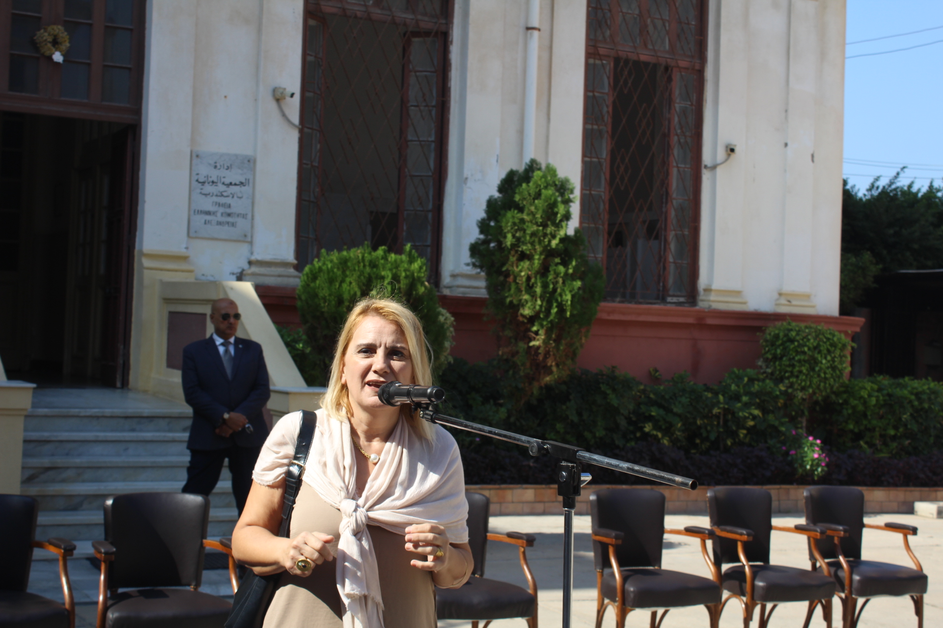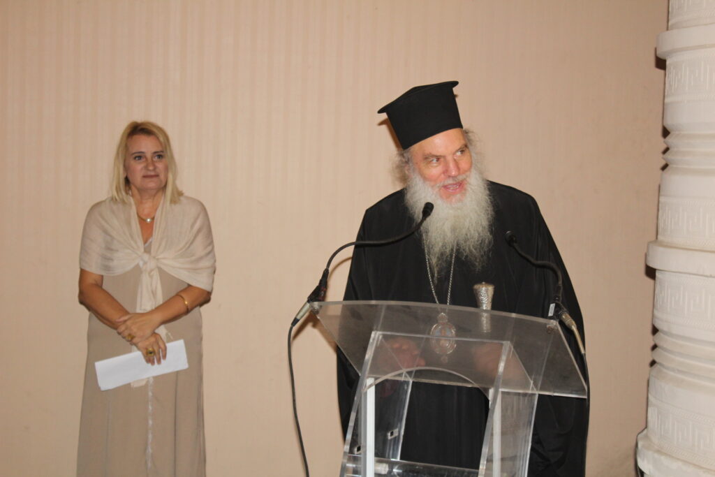 Άπαντες επέστρεψαν στο Ελληνικό Τετράγωνο και συγκεκριμένα στην αίθουσα «Ιουλία Σαλβάγου» όπου εκεί η Διευθύντρια του Αβερωφείου κα. Αφροδίτη Πεβερέτου χαιρέτησε τους παρισταμένους και έδωσε κατά σειρά το λόγο στον Σεβασμιότατο κ. Γερμανό, στον Γενικό Πρόξενο κ. Πυργάκη, στον Πρόεδρο της ΕΚΑ κ. Βαφειάδη και στο Σύνδεσμο του Π/Ν κ. Ράγκο.