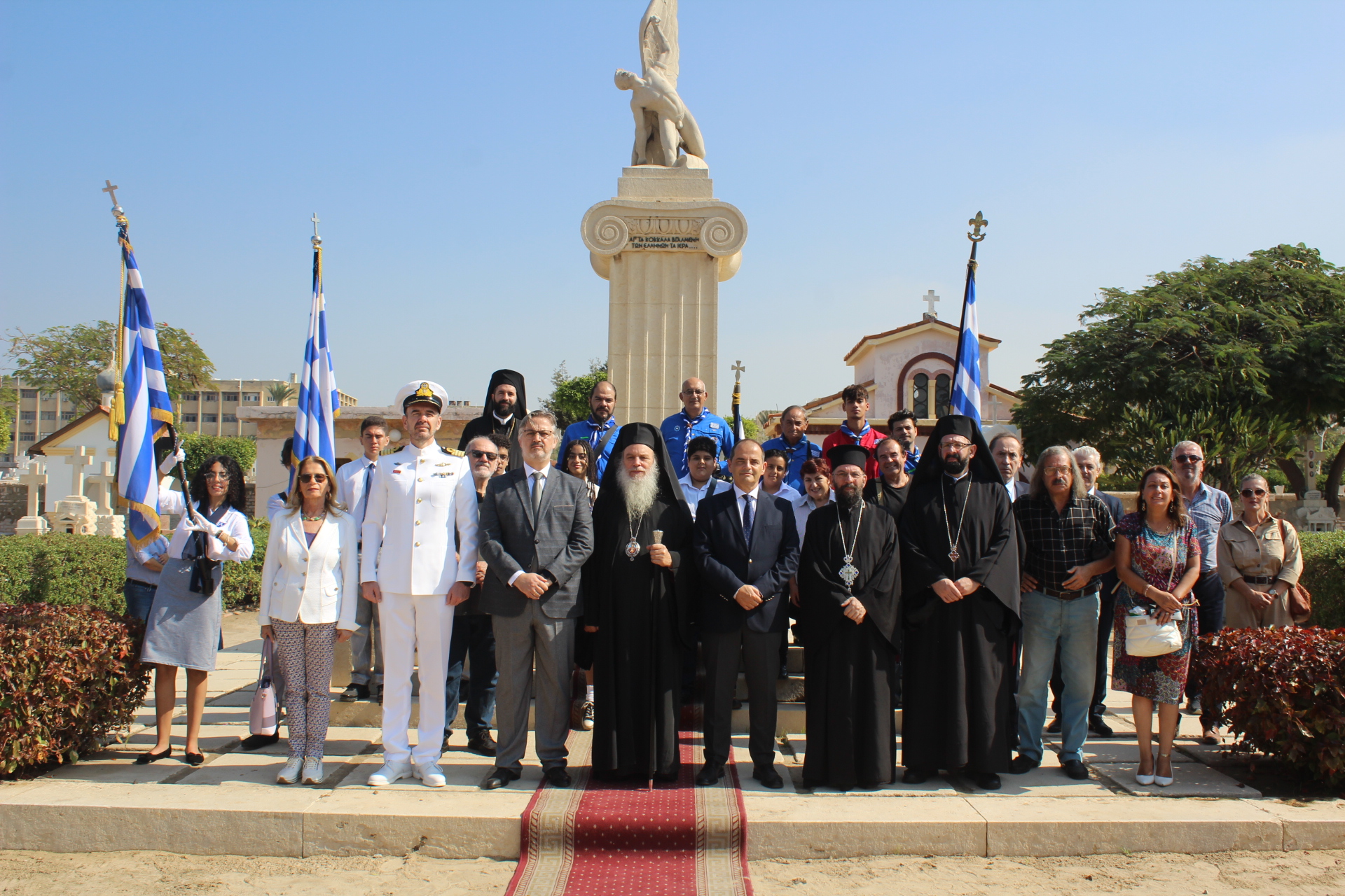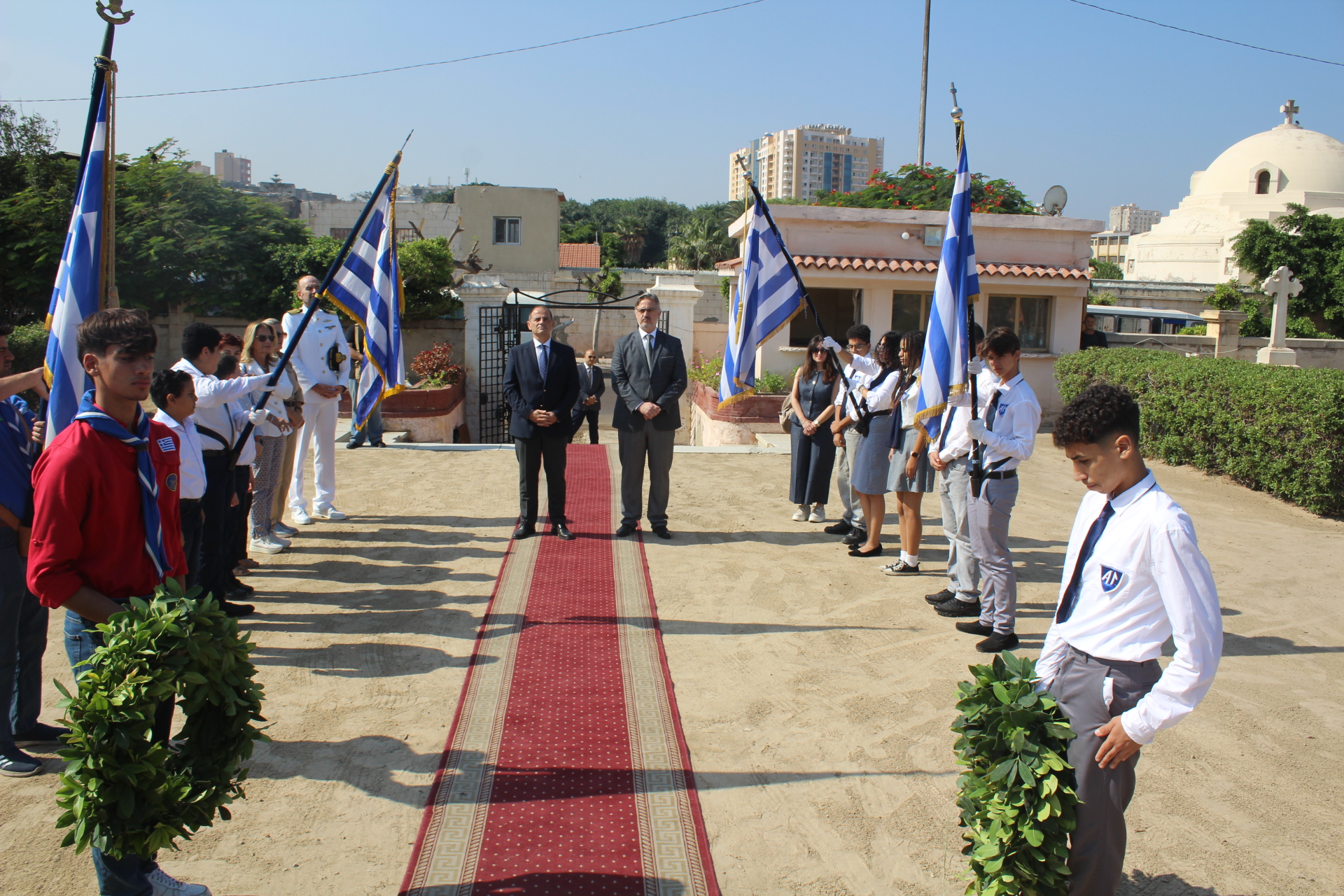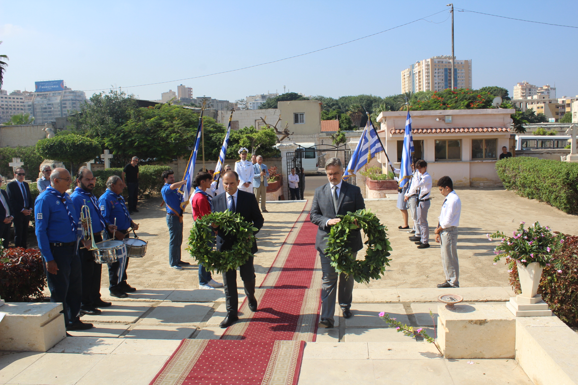 Το μήνυμα του Υφυπουργού Εξωτερικών κ. Ιωάννη Λοβέρδου διάβασε ο Γενικός Πρόξενος της Ελλάδας στην Αλεξάνδρεια κ. Ιωάννης Πυργάκης, στο οποίο αναφερόταν ο συμβολισμός της ημέρας μέσα από την εξιστόρηση της ηρωικής αντίστασης των Ελλήνων που εξεφράσθη με το ΟΧΙ και τον αγώνα του Ελληνικού λαού. Μεταξύ πολλών άλλων ανέφερε τα εξής: «Το έπος του ’40, ωστόσο, δεν γράφτηκε μόνο στα βουνά της Πίνδου· γράφτηκε και στις ψυχές των Ελλήνων, όπου γης. Οι απόδημοι Έλληνες συνέβαλαν αποφασιστικά στον εθνικό αγώνα, προσφέροντας οικονομική ενίσχυση, εθελοντές και πολύτιμη στήριξη στους αγωνιζόμενους της πατρίδας. Η ομογένεια, για άλλη μια φορά, στάθηκε στο πλευρό της Ελλάδας με ανιδιοτέλεια, αποδεικνύοντας ότι ο Ελληνισμός δεν γνωρίζει γεωγραφικά όρια.