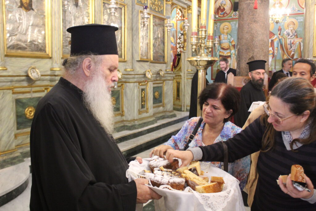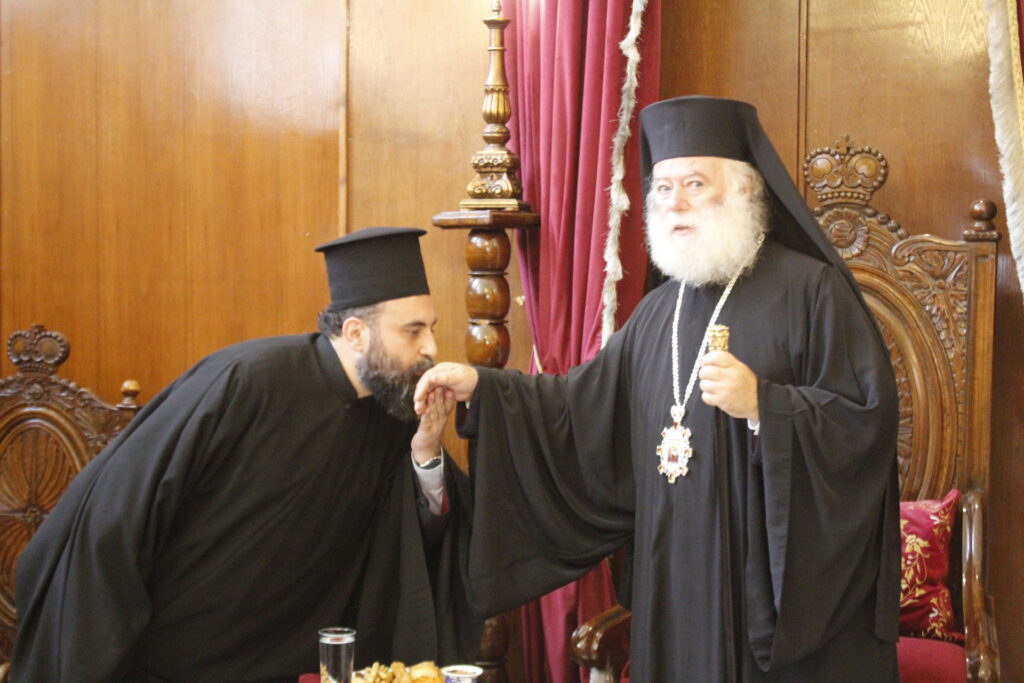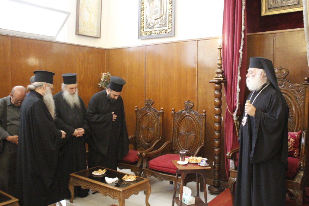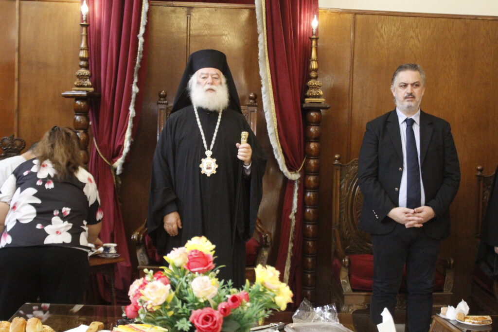 Στη συνέχεια, ο Μακαριώτατος ευχήθηκε εγκάρδια στον Σεβασμιώτατο Μητροπολίτη Λεοντοπόλεως κ. Γαβριήλ για τα ονομαστήριά του, καθώς και στον νέο Επίσκοπο Μαρεώτιδος και Πατριαρχικό Επίτροπο Αλεξανδρείας καλή δύναμη και πλούσια θεία Χάρη στο νέο του αρχιερατικό δρόμο.