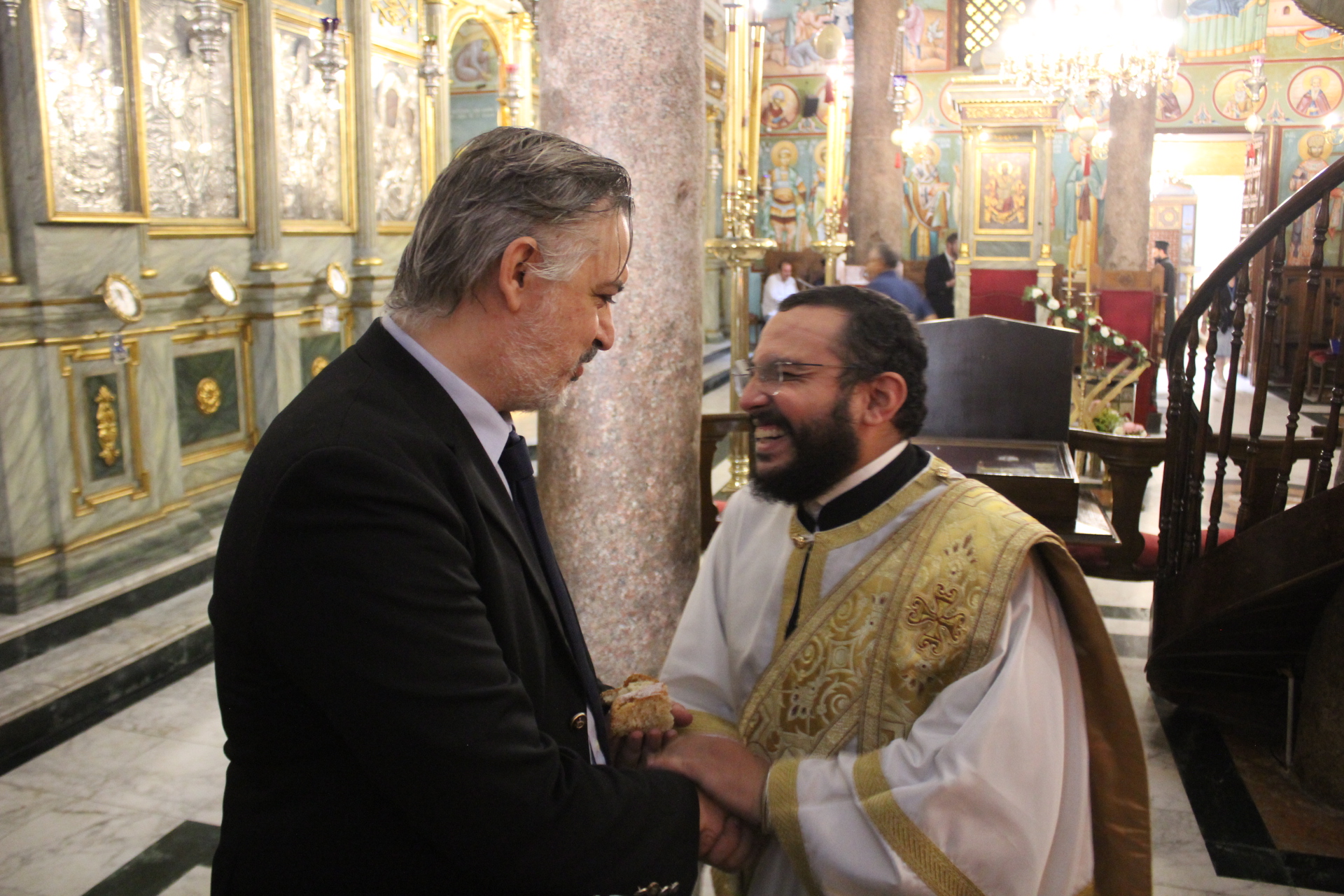 Ο Γενικός Πρόξενος της Ελλάδας στην Αλεξάνδρεια κ. Ιωάννης Πυργάκης, στήριξε για άλλη μια φορά ιεροψαλτικώς την Θεία Λειτουργία, με την αρωγή του ψάλτη Ιωάννη Γενειατάκη.