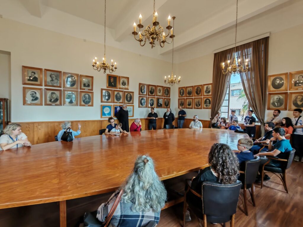 Τους υποδέχθηκε ο Αναπληρωτής Γενικός Γραμματέας κ. Δημήτριος Κάβουρας και ο Διευθυντής κ. Γεώργιος Μπούλος.  Ο κ. Δημήτριος Κάβουρας τους ξενάγησε στο Ελληνικό Τετράγωνο και τους ενημέρωσε για την ιστορία της Κοινότητας, τους μεγάλους ευεργέτες και τη σύγχρονη εποχή. Στο Αρχείο τους μίλησε για το σπουδαίο υλικό που φυλάσσεται στις αίθουσες της Κοινότητας αλλά και για όλα τα μεγάλα γεγονότα που χάραξαν το παρελθόν της Αιγυπτιώτικης Παροικίας.