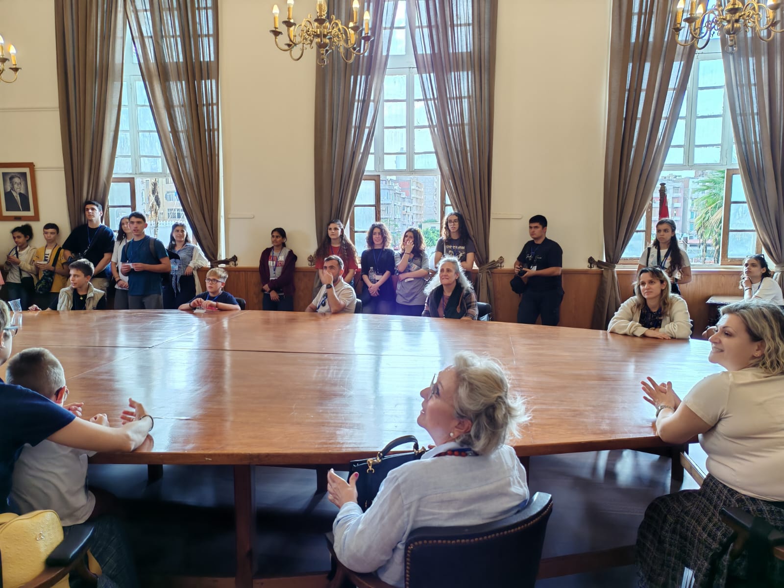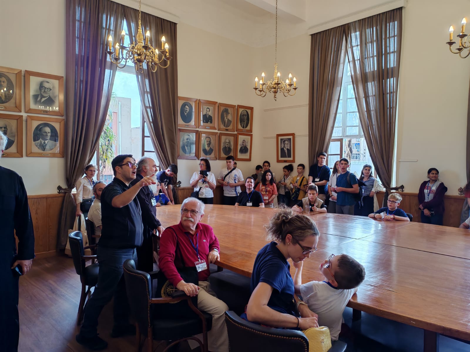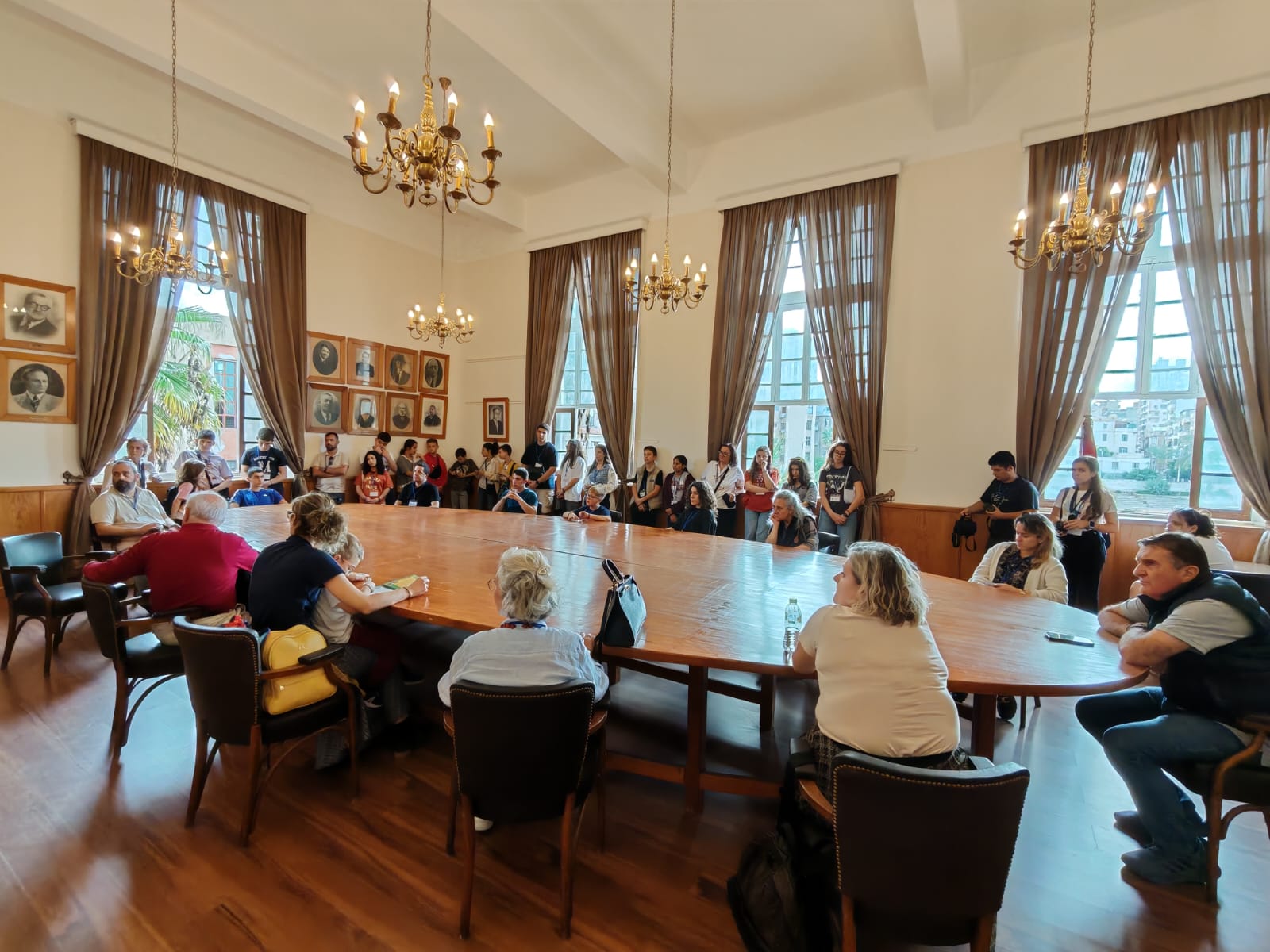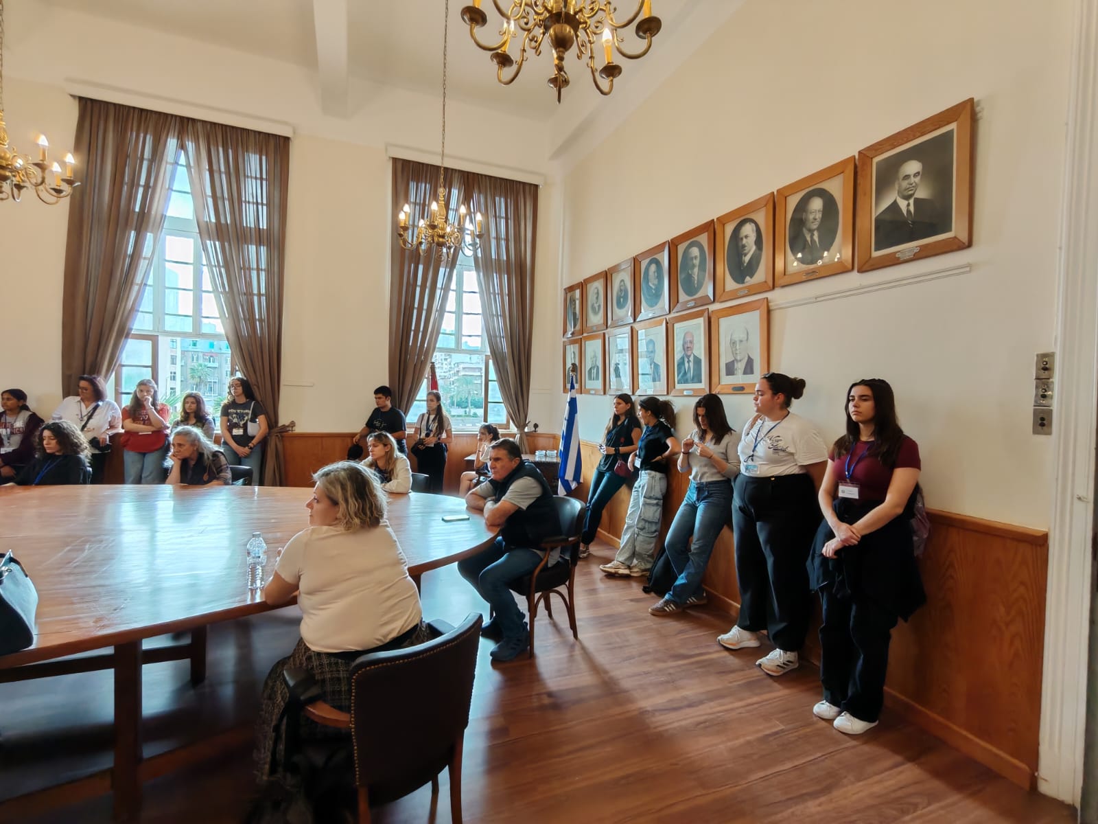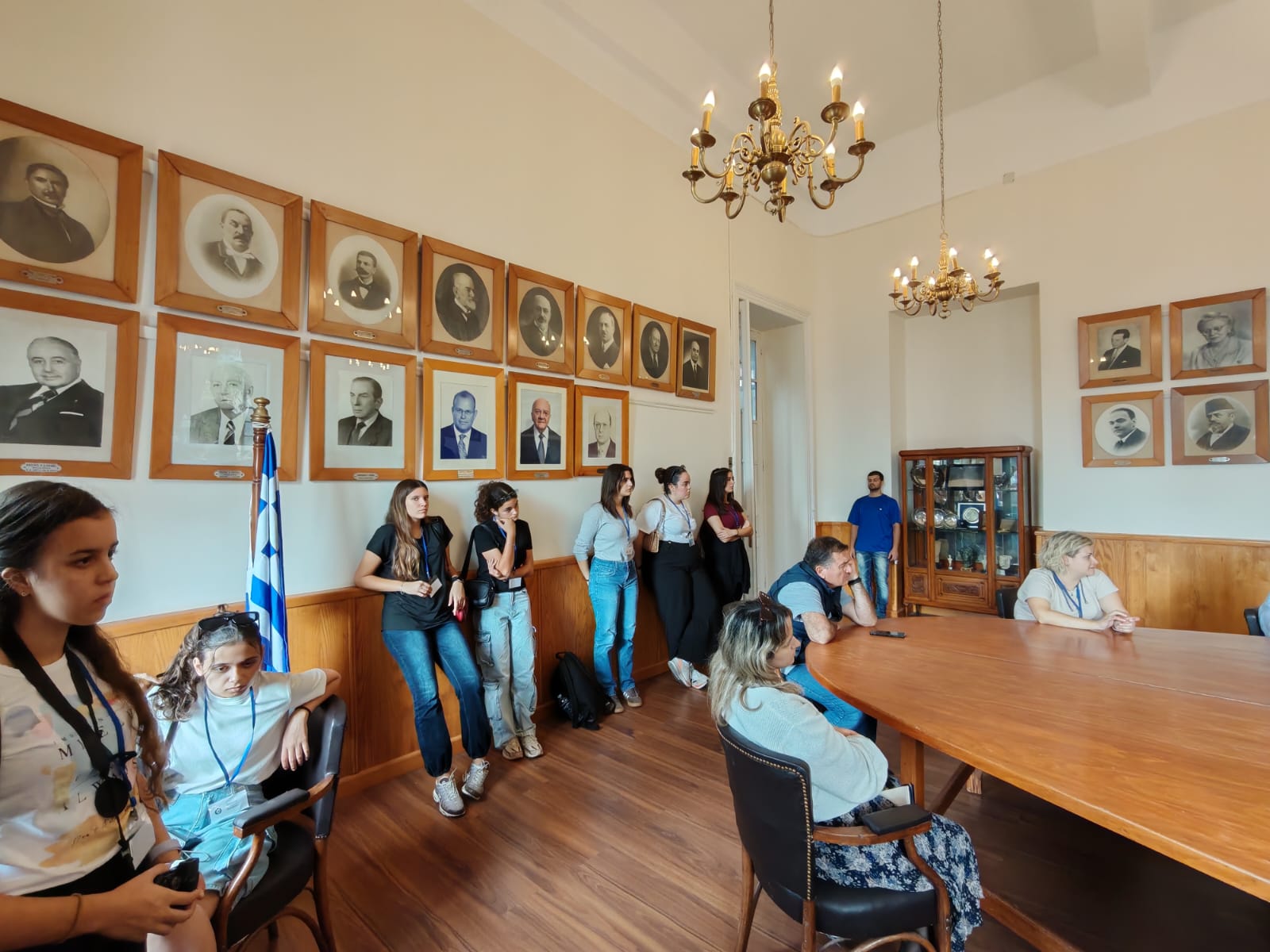 Τους υποδέχθηκε ο Αναπληρωτής Γενικός Γραμματέας κ. Δημήτριος Κάβουρας και ο Διευθυντής κ. Γεώργιος Μπούλος.  Ο κ. Δημήτριος Κάβουρας τους ξενάγησε στο Ελληνικό Τετράγωνο και τους ενημέρωσε για την ιστορία της Κοινότητας, τους μεγάλους ευεργέτες και τη σύγχρονη εποχή. Στο Αρχείο τους μίλησε για το σπουδαίο υλικό που φυλάσσεται στις αίθουσες της Κοινότητας αλλά και για όλα τα μεγάλα γεγονότα που χάραξαν το παρελθόν της Αιγυπτιώτικης Παροικίας.