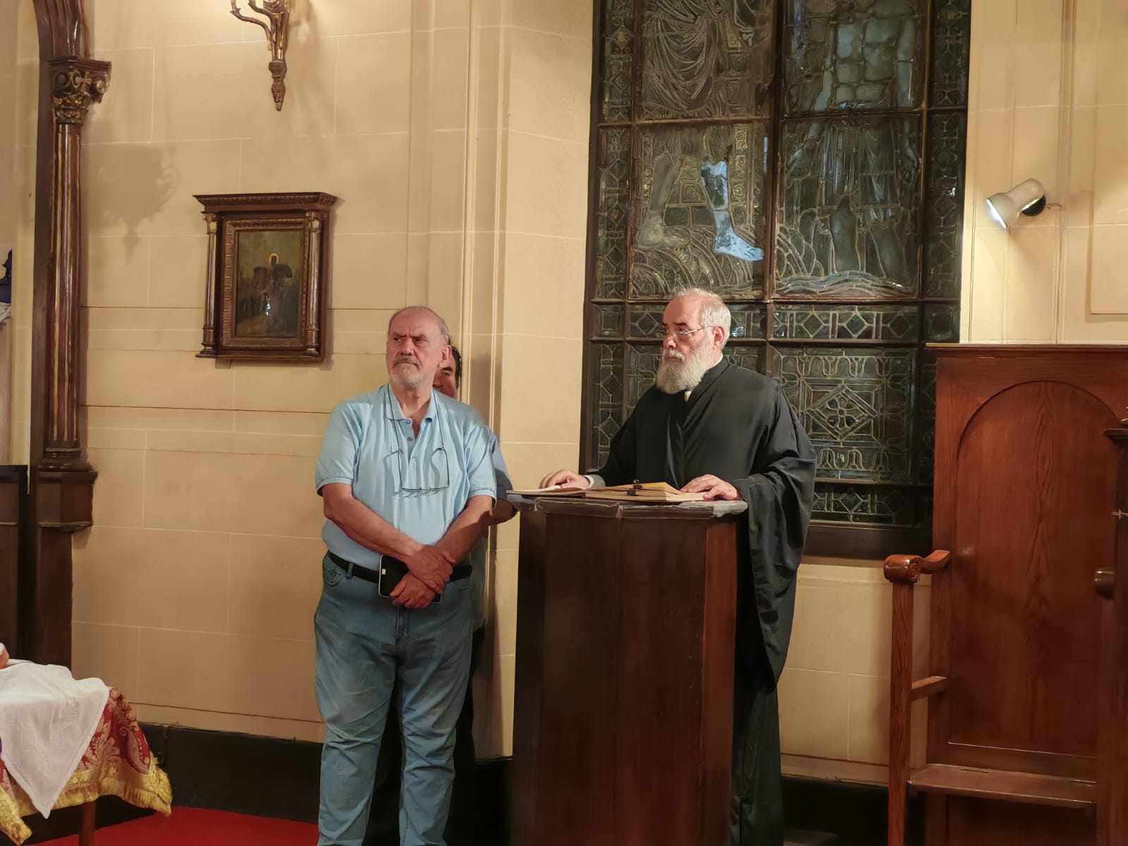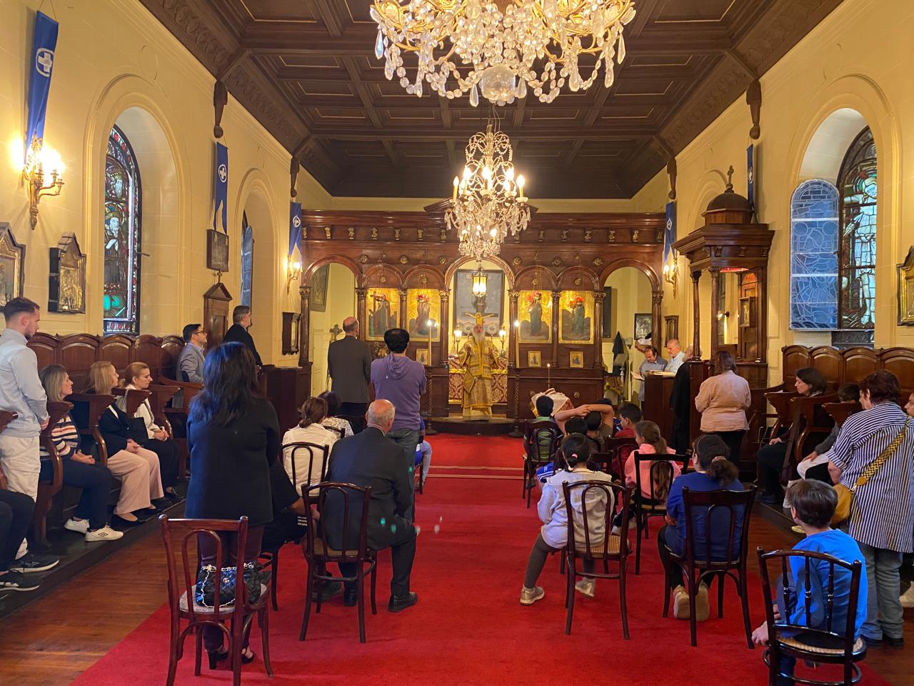Τη Θεία Λειτουργία λάμπρυνε με την παρουσία του ο Θεοφιλέστατος Μητροπολίτης Ταμιάθεως κ. Γερμανός – Προϊστάμενος της Ιεράς Μονής του Οσίου Σάββα του Ηγιασμένου, με συμπροσευχόμενους τον Σεβασμιότατο Μητροπολίτη Γέρων Λεοντοπόλεως κ. Γαβριήλ, Γενικό Πατριαρχικό Επίτροπο και τον Πανοσιολογιότατο Αρχιμανδρίτη κ. Επιφάνιο. Απέδωσαν τους βυζαντινούς ύμνους οι ιεροψάλτες κ. Ιωάννης Γενειατάκης και κ. Αλέξανδρος Μπάσης.