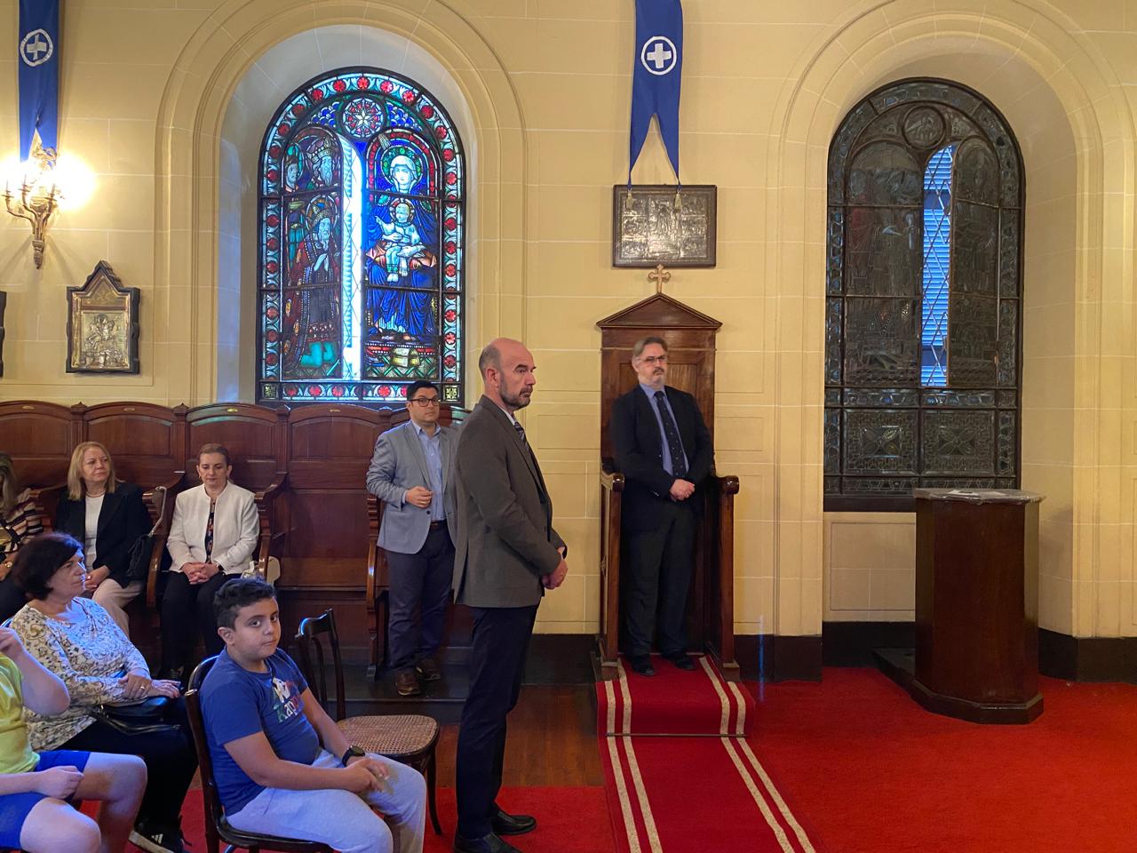 Παρέστησαν ο Γενικός Πρόξενος της Ελλάδας στην Αλεξάνδρεια, κ. Ιωάννης Πυργάκης, με την εορτάζουσα σύζυγό του, κα. Κατερίνα Γιδαράκου, ο Αναπληρωτής Γενικός Γραμματέας της Ελληνικής Κοινότητας Αλεξανδρείας, κ. Δημήτριος Κάβουρας, ο Συντονιστής του Πολεμικού Ναυτικού της Ελλάδας με το Αιγυπτιακό στην Αλεξάνδρεια κ. Χρυσόστομος Ράγκος, η Πρόεδρος του Ελληνικού Ναυτικού Ομίλου Αλεξανδρείας και του Πτολεμαίου Α΄ κα. Λιλίκα Θλιβίτου, η Πρόεδρος του Λυκείου Ελληνίδων κα. Αλίκη Αντωνίου, η Διευθύντρια του Αβερωφείου – Γυμνασίου Λυκείου κα. Αφροδίτη Πεβερέτου και η Διευθύντρια του Τοσιτσαίου – Πρατσίκειου Δημοτικού κα. Αμάντα Νικολακοπούλου. Παρούσα ήταν ακόμα, η πλειονότητα των μαθητών των κοινοτικών σχολείων, καθώς και το προσωπικό των Γραφείων της ΕΚΑ.