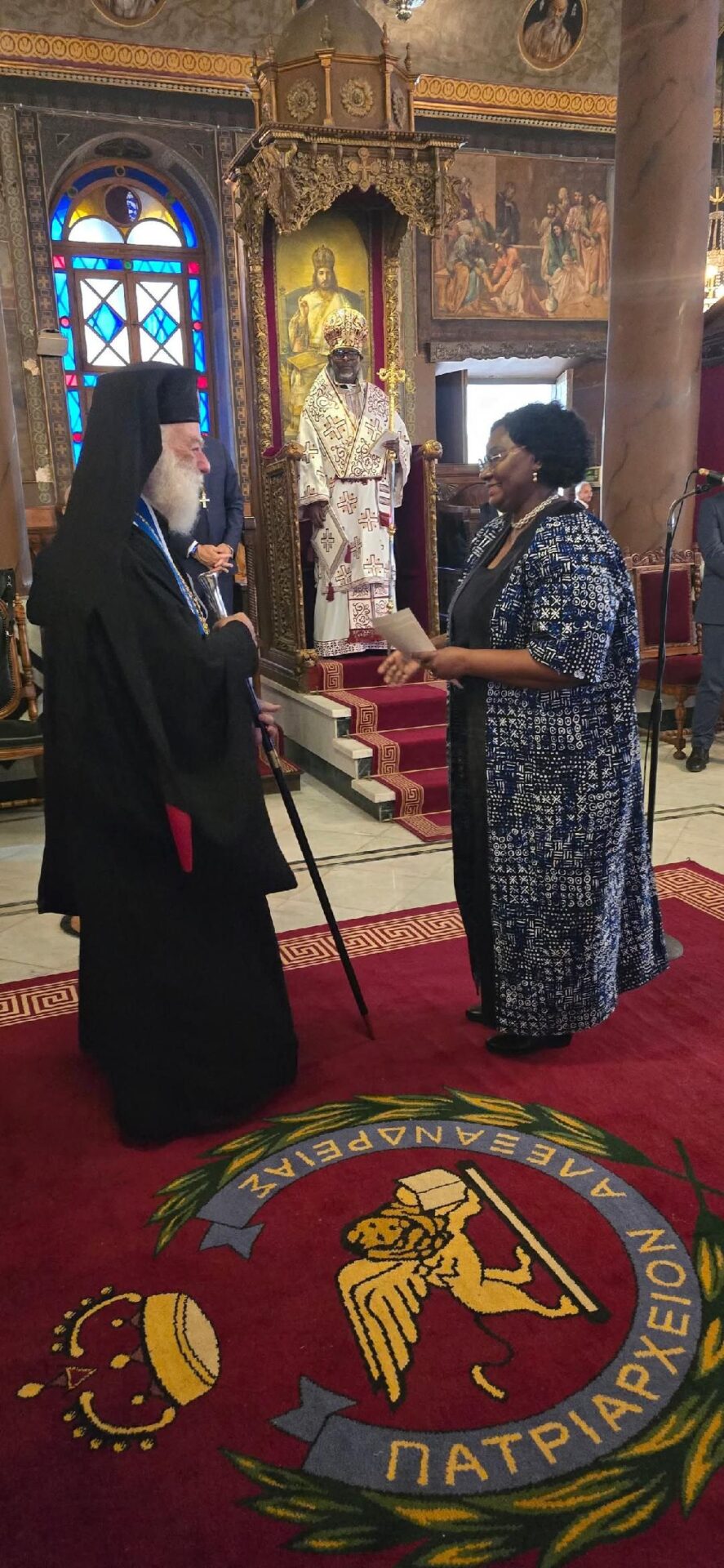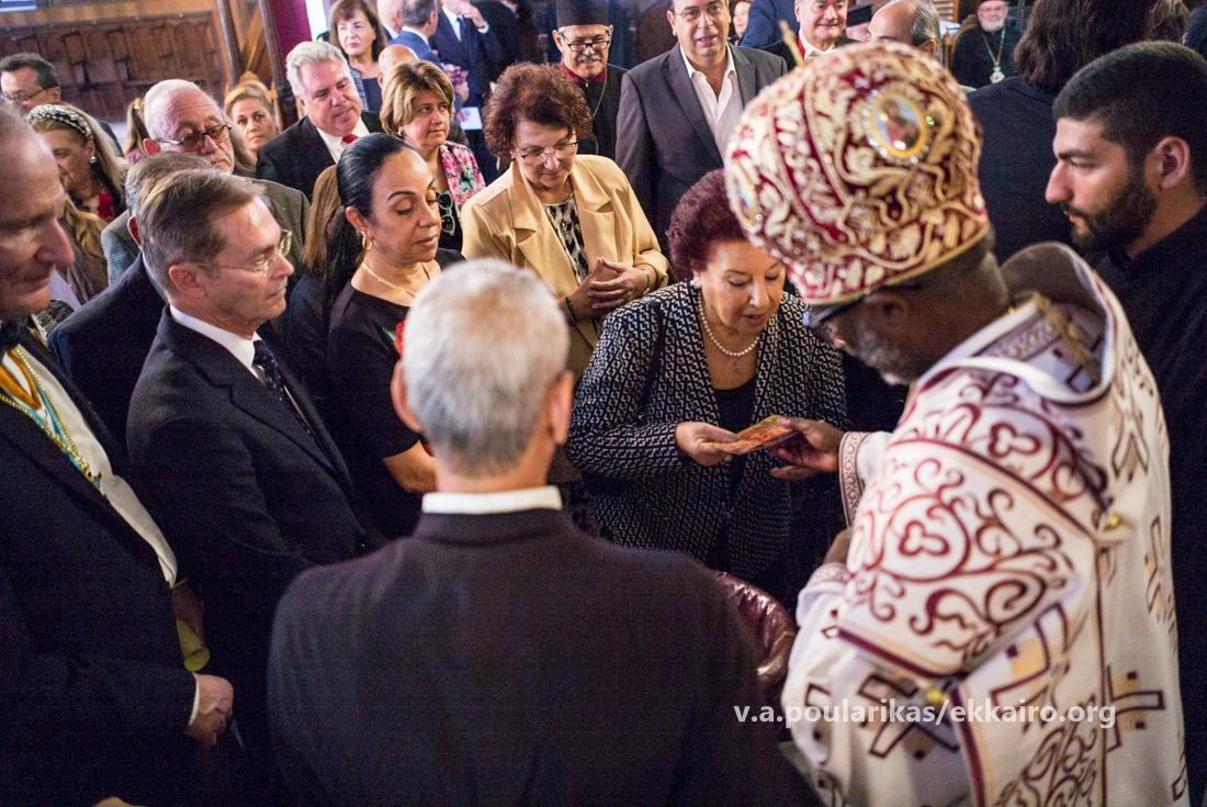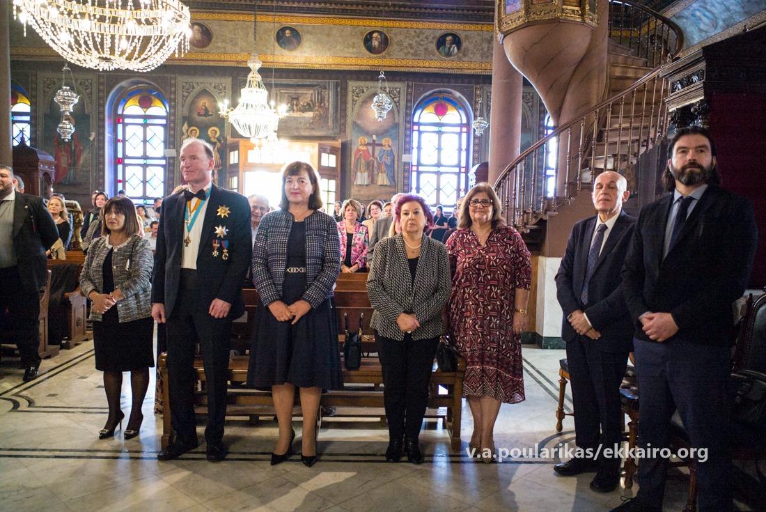 Στη Πατριαρχική Θεία Λειτουργία παρευρέθησαν ο Εξοχότατος Πρέσβης της Ελλάδος στην Αίγυπτο κ. Νικόλαος Παπαγεωργίου, η Εξοχοτάτη Πρέσβειρα της Κυπριακής Δημοκρατίας στην Αίγυπτο κα. Πόλυ Ιωάννου, ο Εξοχότατος Γενικός Πρόξενος της Ελλάδος στο Κάιρο κ. Συμεών Λιναρδάκης, η Επιτετραμμένη της Πρεσβείας της Δημοκρατίας της Κένυας στο Κάιρο κα. Jennifer K. Njiru, οι Πρόεδροι των Ελληνικών και Αραβοφώνων Κοινοτήτων Καΐρου και Αλεξανδρείας, ο Πρόεδρος της Αδελφότητος των Οφφικιάλων του Πατριαρχείου κ. Θεόδωρος Παναγόπουλος, ο Πολιτικός Διοικητής του Αγίου Όρους κ. Αλκιβιάδης Στεφανής, η Αρχόντισσα κ. Αικατερίνη Μπελεφάντη – Σοφιανού, Πρέσβειρα του Αποδήμου Ελληνισμού και της Ομογένειας του Αλεξανδρινού Θρόνου.