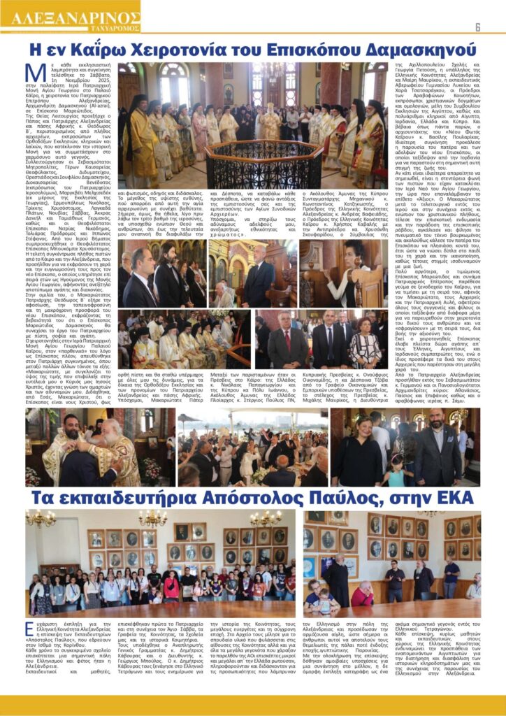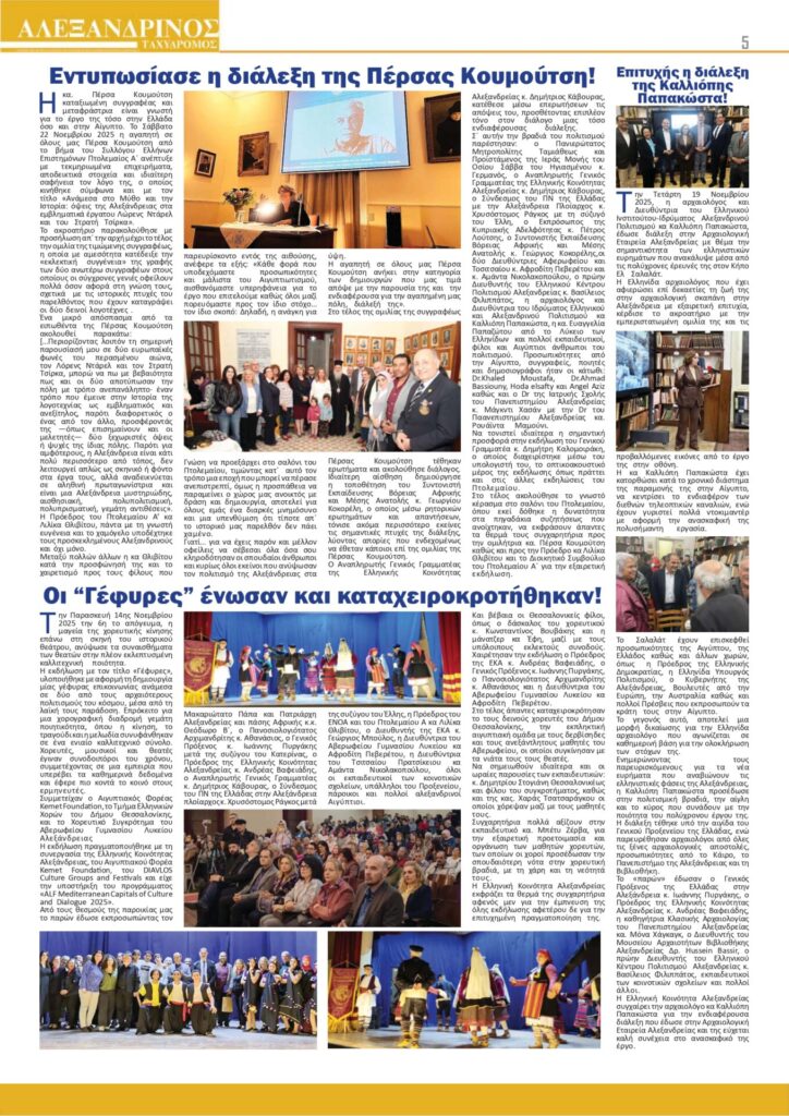 Αλεξανδρινός Ταχυδρόμος Νοεμβρίου 2025