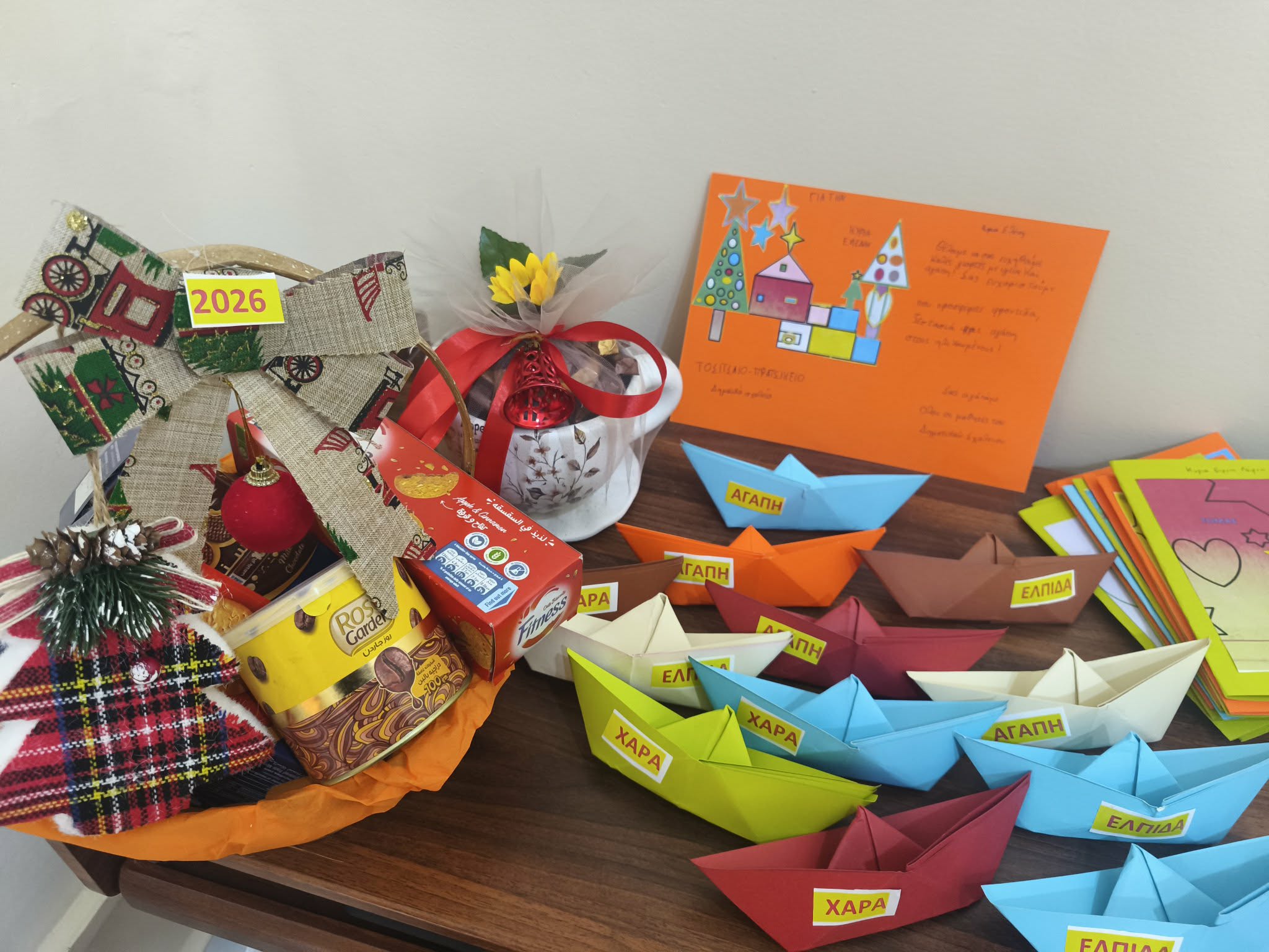 Έκαστος μαθητής, προσέφερε την κάρτα του που το ίδιο είχε δημιουργήσει σε υπολογιστή, στον ηλικιωμένο που του αντιστοιχούσε ενώ το χάρτινο καράβι έγραφε ελπίδα, αγάπη, χαρά για το 2026. Τα παιδιά αντάλλαξαν ευχές με τους ηλικιωμένους και τραγούδησαν μαζί τους χριστουγεννιάτικα τραγούδια.