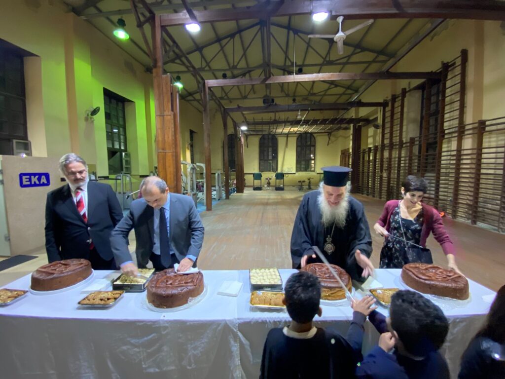 Η υπέροχη και απολύτως επιτυχημένη εορτή ολοκληρώθηκε με την μετακίνηση όλων στο Κοινοτικό Γυμναστήριο, όπου εκεί κόπηκε η Αγιοβασιλιάτικη Πίτα από τον Θεοφιλέστατο κ. Γερμανό, τον  Γενικό Πρόξενο κ. Ιωάννη Πυργάκη, τον Πρόεδρο της ΕΚΑ κ. Ανδρέα Βαφειάδη και την Διευθύντρια κα Αδαμαντία Νικολακοπούλου.