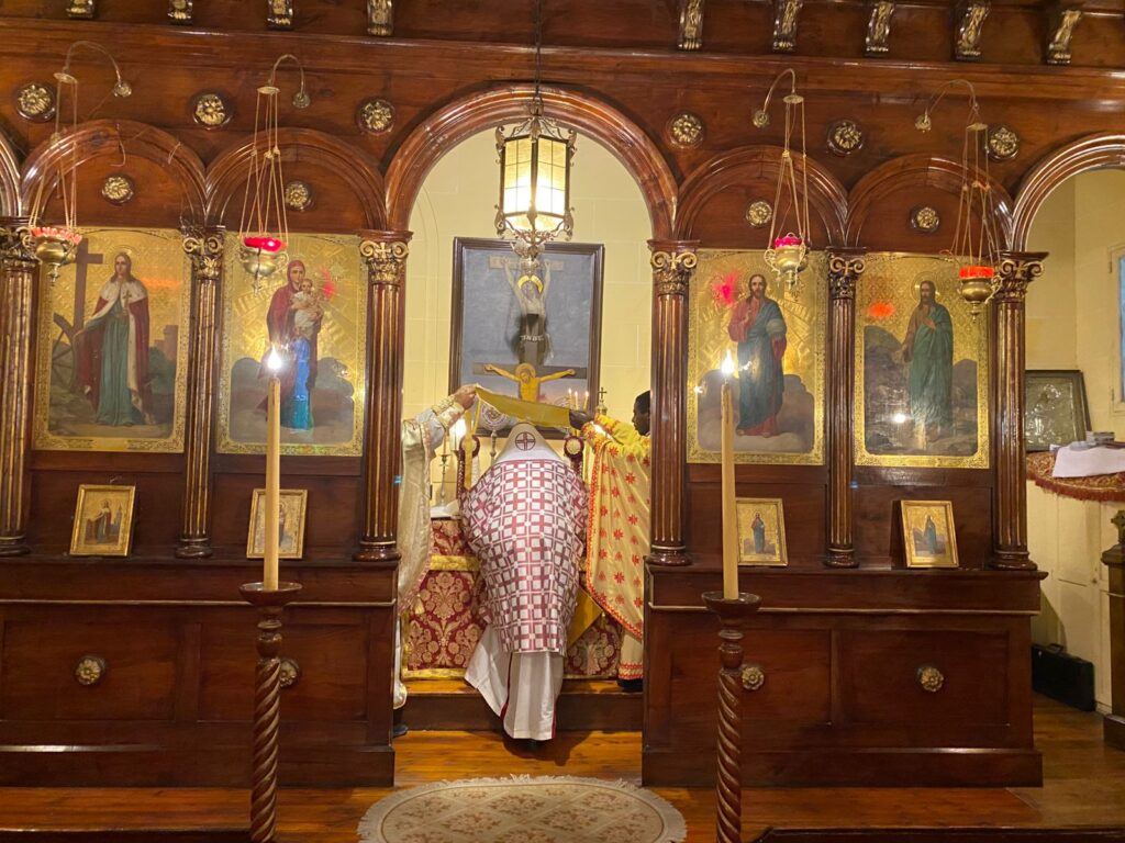 Τρίτη 23ης Δεκεμβρίου 2025 τελέσθηκε Αρχιερατική Θεία Λειτουργία στο Παρεκκλήσιο της Αγίας Αικατερίνης, πλησίον του Γενικού Προξενείου της Ελλάδος στην Αλεξάνδρεια, ιερουργούντος του Θεοφιλεστάτου Επισκόπου Μαρεώτιδος κ. Δαμασκηνού.