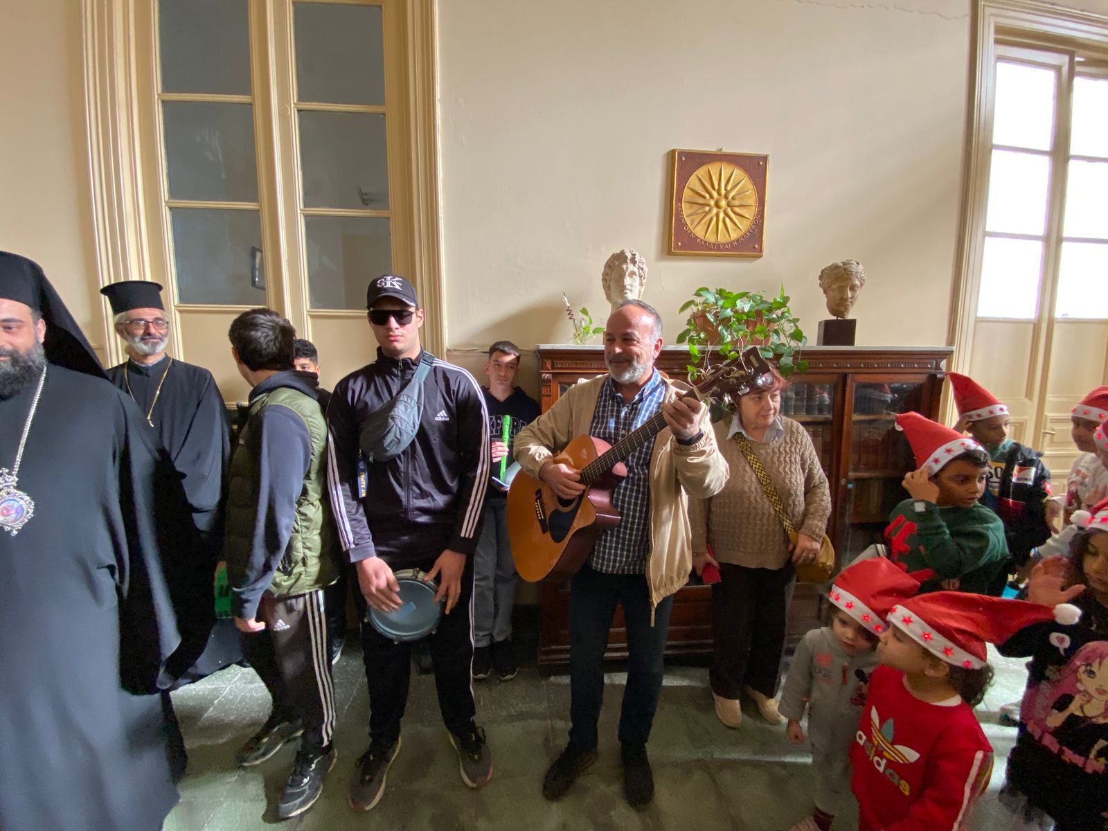 Ο Θεοφιλέστατος Επίσκοπος Μαρεώτιδος κ. Δαμασκηνός – Πατριαρχικός Επίτροπος, με τις ευλογίες και τις ευχές του Μακαριωτάτου, μετά την Θεία Λειτουργία στον Ιερό Ναό της Αγίας Αικατερίνης, έδωσε το “παρών” στο χριστιανικό έθιμο προσδίδοντας την χριστουγεννιάτικη νότα απ΄ την πλευρά του Πατριαρχείου.