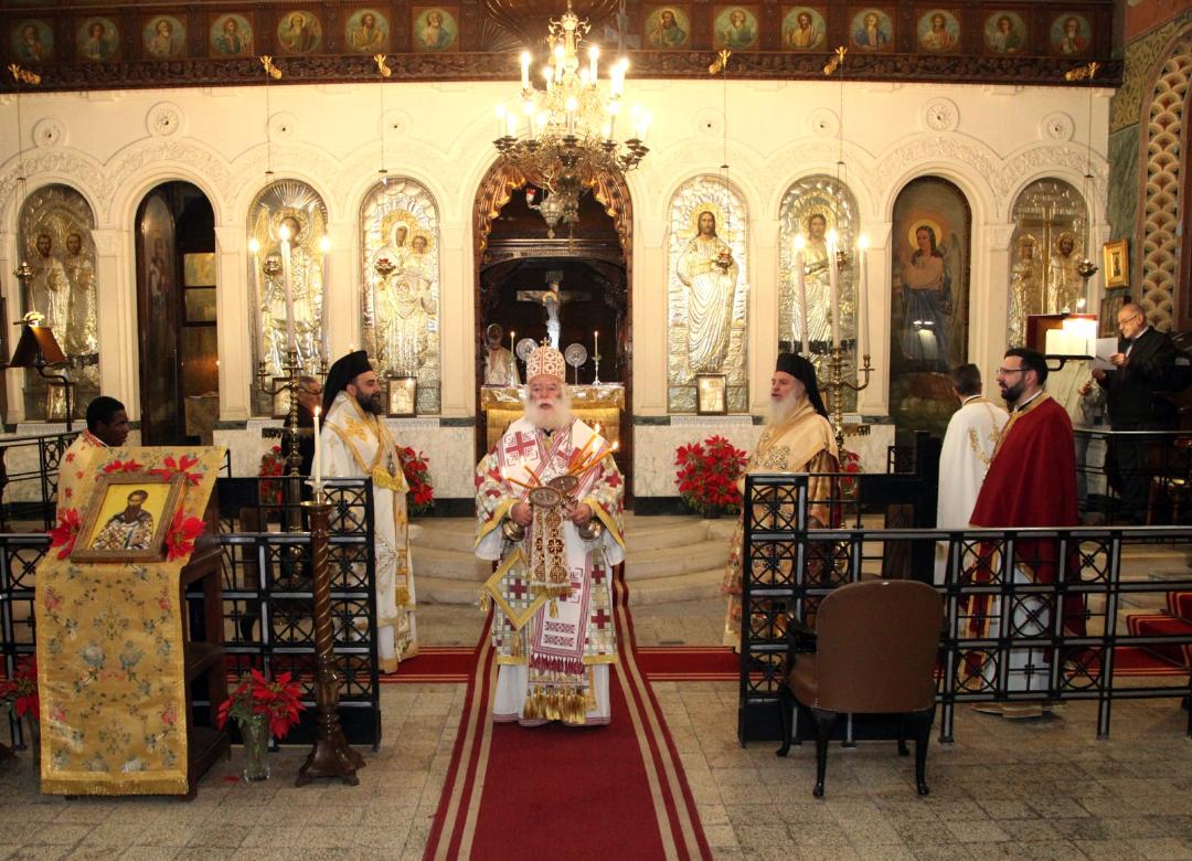 Την Τετάρτη 1η Ιανουαρίου 2026, ημέρα κατά την οποία η Αγία μας Εκκλησία εορτάζει την κατά σάρκα Περιτομή Του Κυρίου ημών Ιησού Χριστού και τη μνήμη του εν Αγίοις Πατρός ημών Βασιλείου του Μεγάλου Αρχιεπισκόπου Καισαρείας του Ουρανοφάντορος, ο Μακαριώτατος χοροστάτησε κατά την Ακολουθία του Όρθρου και προεξήρχε της Πατριαρχικής Θείας Λειτουργίας στον Ιερό Κοινοτικό Ναό των Παμμεγίστων Ταξιαρχών στην Ιμπραημία – Αλεξάνδρεια.