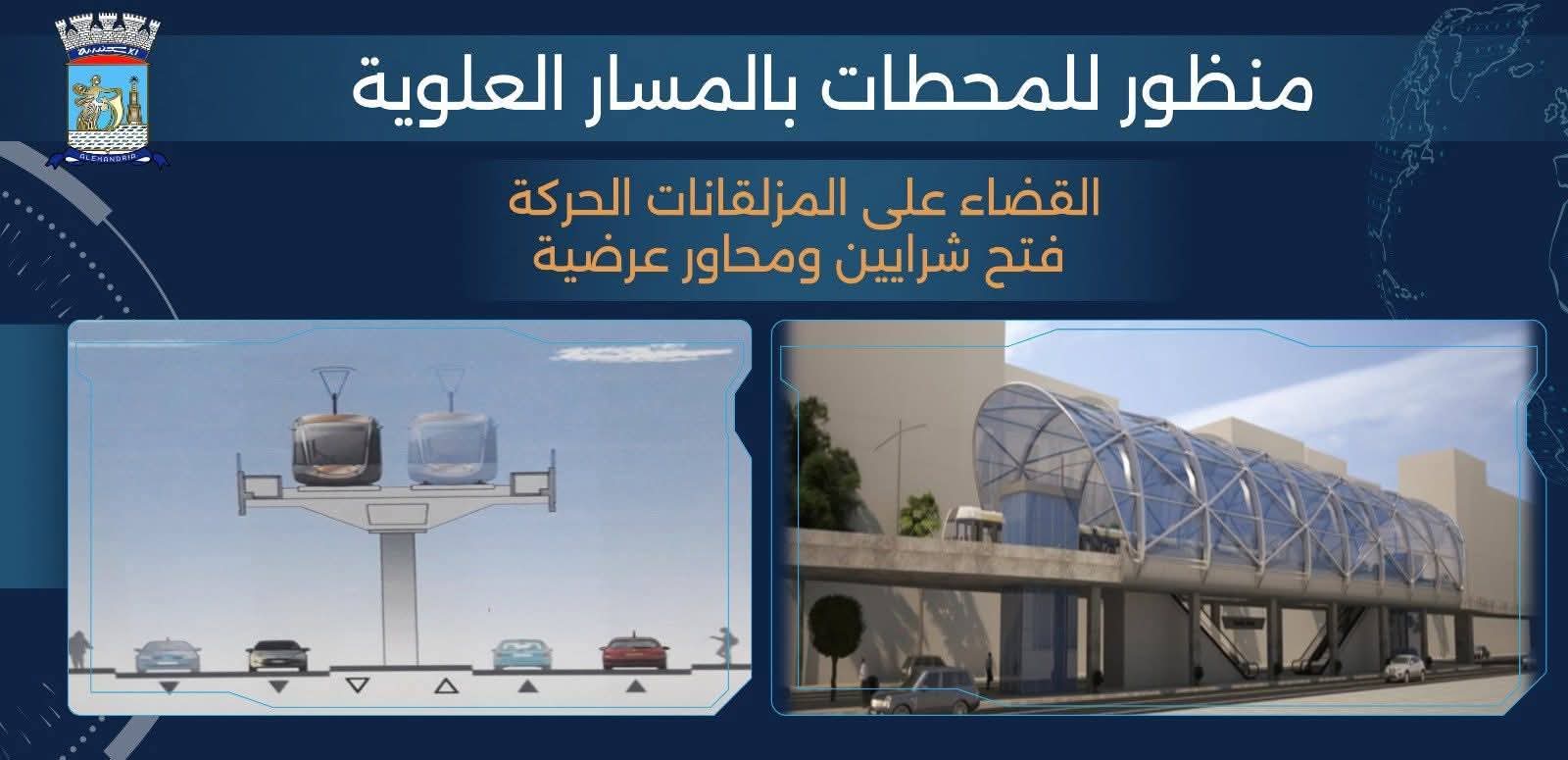 - 9 υπερυψωμένους σταθμούς, με σημαντικότερους τους: Roushdy, Sidi Gaber, Bacos, Schütz, Victoria και El Hedaya.