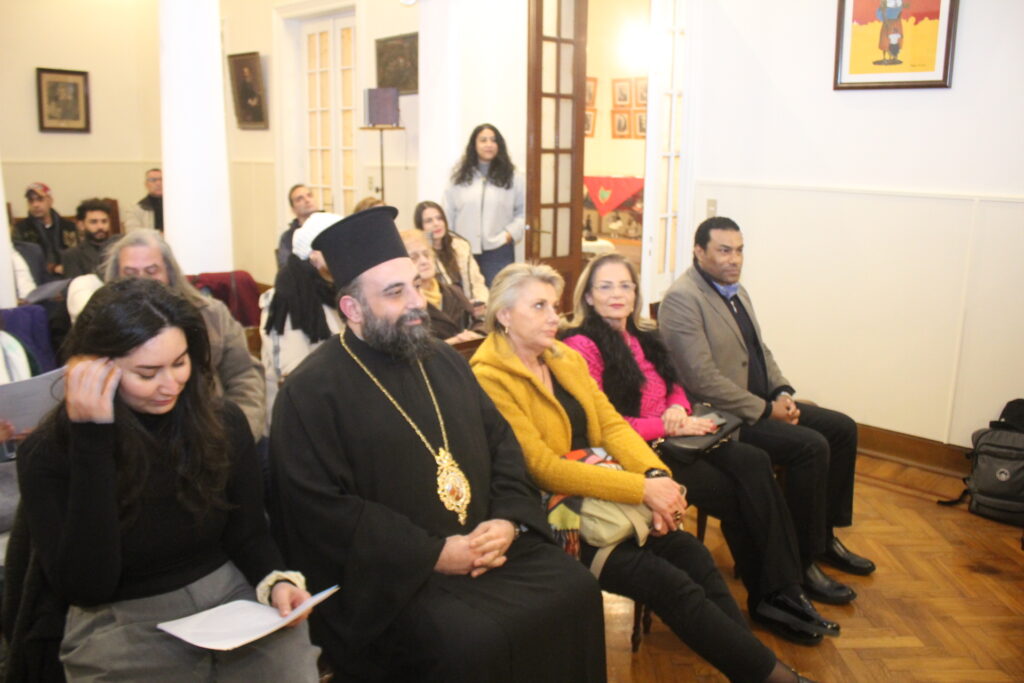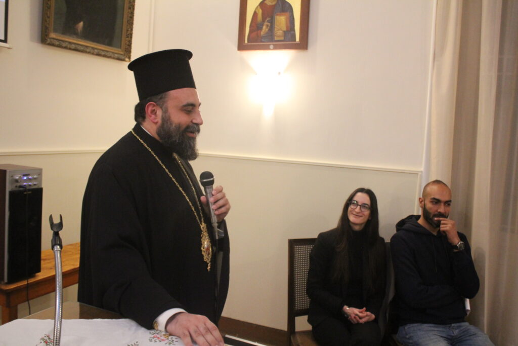 Ο Θεοφιλέστατος Επίσκοπος Μαρεώτιδος και Πατριαρχικός Επίτροπος κ. Δαμασκηνός, με το πέρας της παρουσίασης έλαβε το λόγο και ομίλησε με ιδιαίτερα τιμητικά λόγια για την Φωτεινή Ζαρογιάννη προσδίδοντας με την παρουσία και το λόγο του, αίγλη στην εκδήλωση.