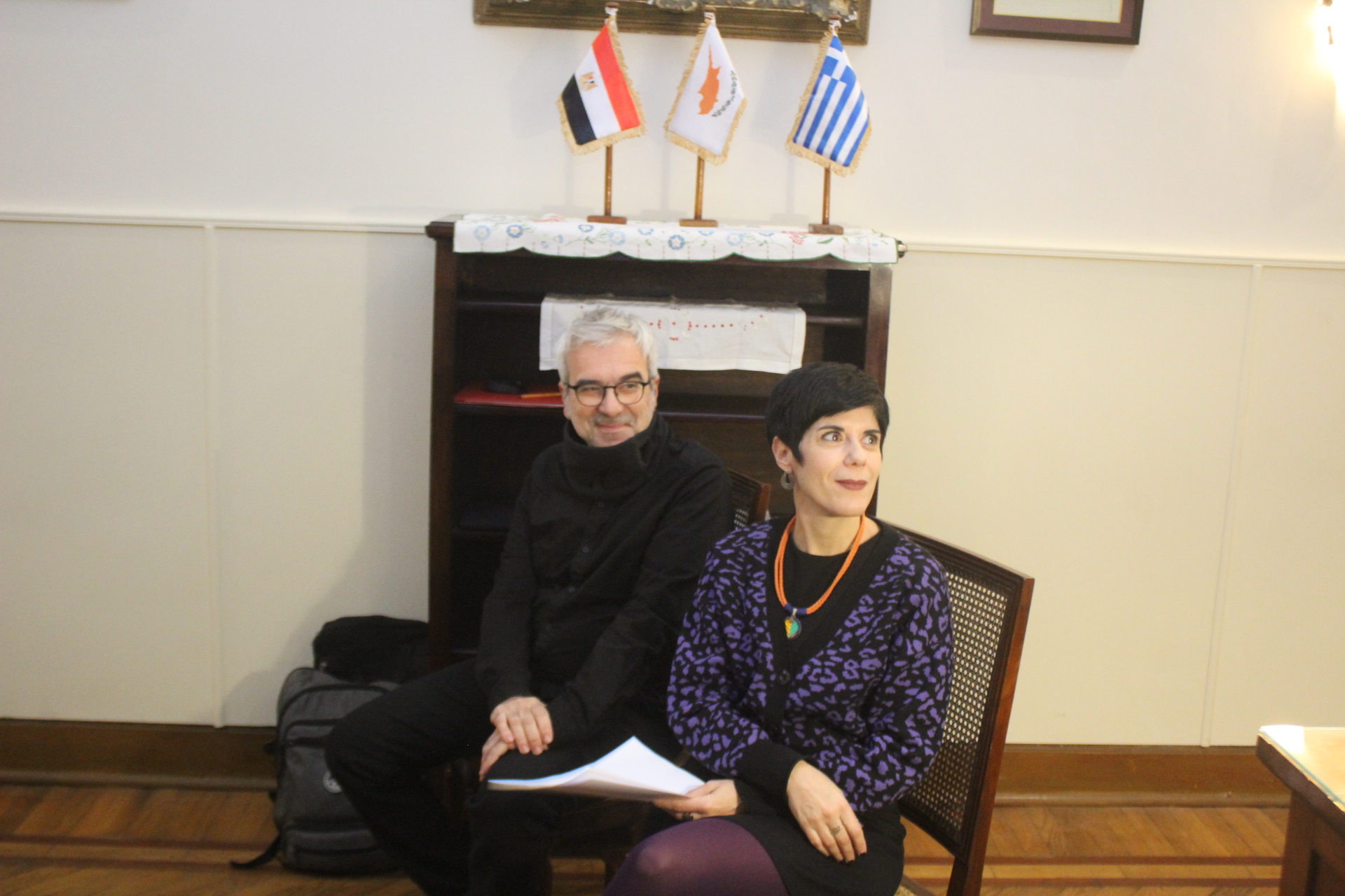 Ο αρχισυντάκτης της εφημερίδας «Αλεξανδρινός Ταχυδρόμος» της Ελληνικής Κοινότητας Αλεξανδρείας κ. Γρηγόρης Χαλιακόπουλος συντόνισε την εκδήλωση και παράλληλα προλόγισε την παρουσιαζόμενη Φωτεινή Ζαρογιάννη.
