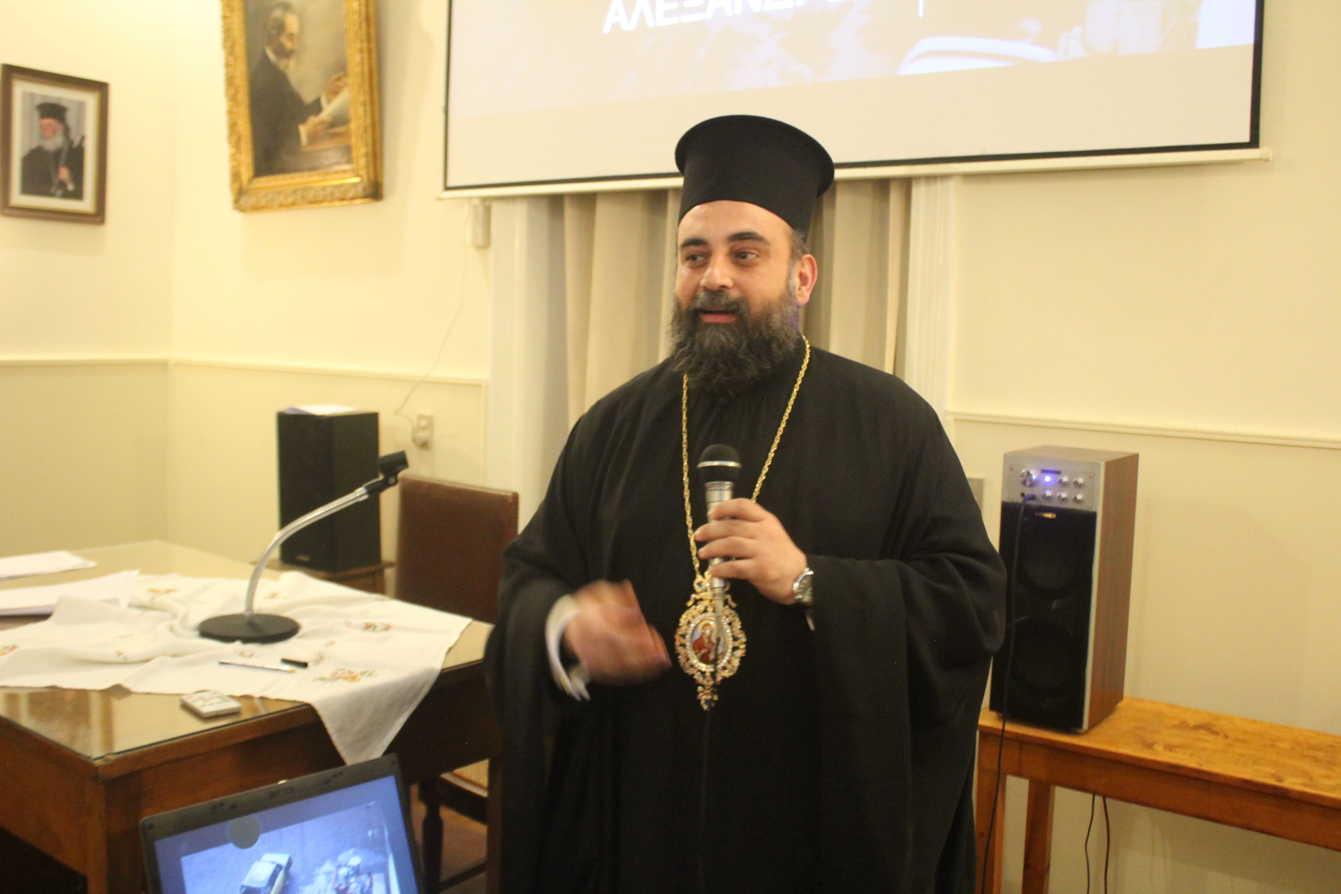 Ο Θεοφιλέστατος Επίσκοπος Μαρεώτιδος και Πατριαρχικός Επίτροπος κ. Δαμασκηνός, με το πέρας της παρουσίασης έλαβε το λόγο και ομίλησε με ιδιαίτερα τιμητικά λόγια για την Φωτεινή Ζαρογιάννη προσδίδοντας με την παρουσία και το λόγο του, αίγλη στην εκδήλωση.