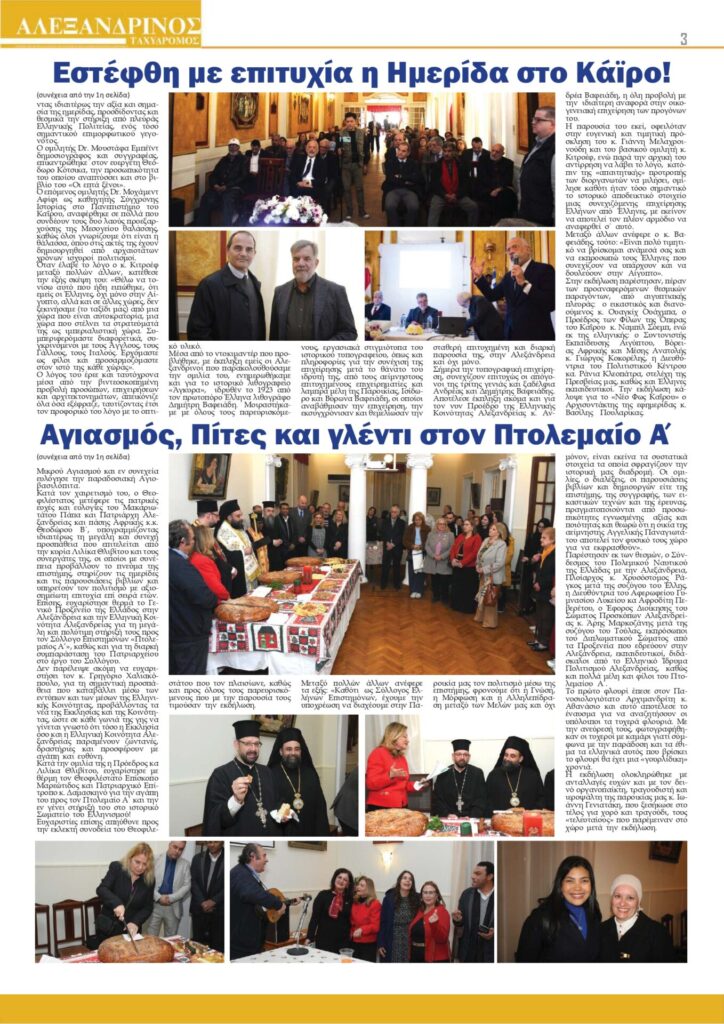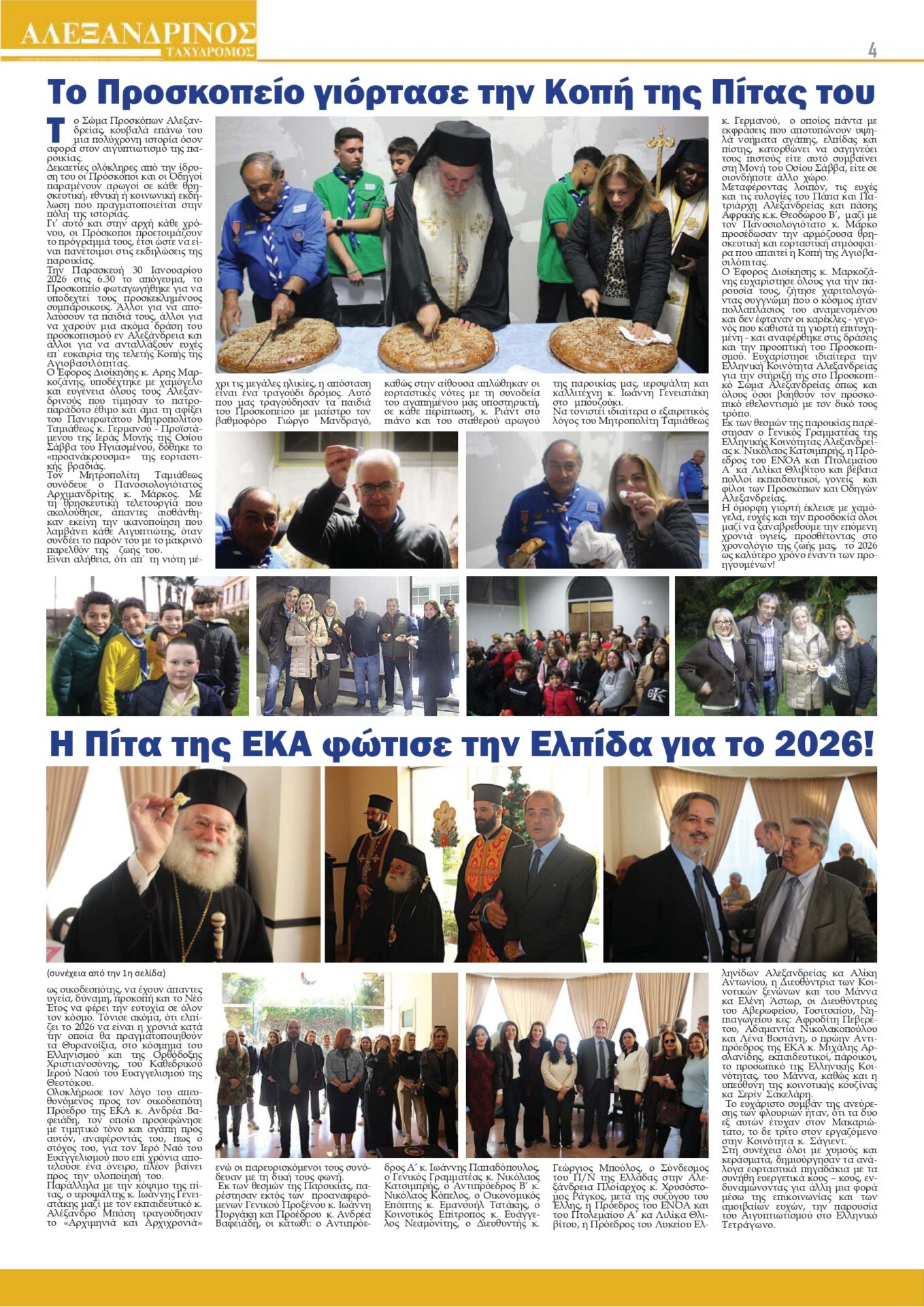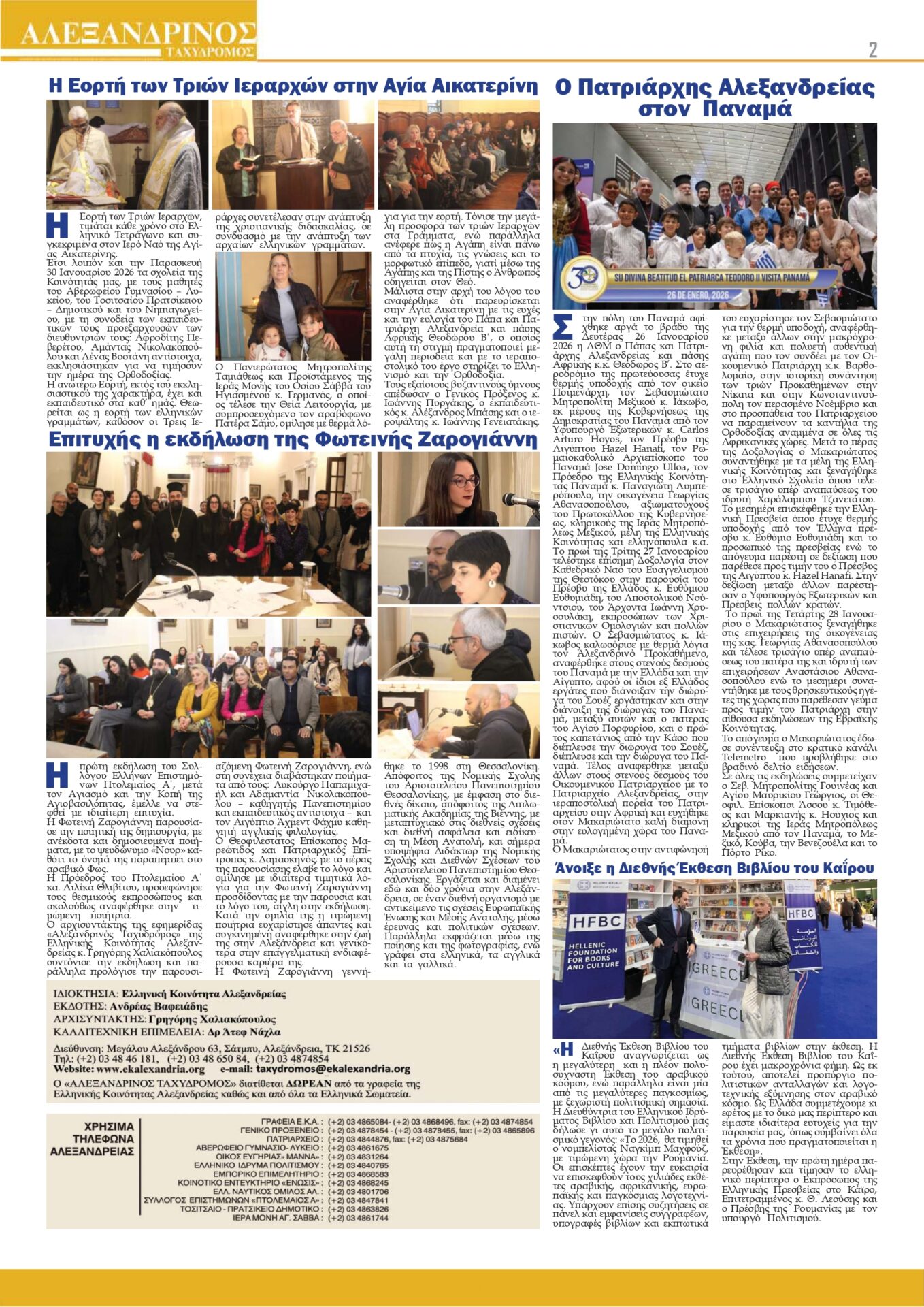 Κυκλοφόρησε ο Αλεξανδρινός Ταχυδρόμος Ιανουαρίου 2026, όπου συμπεριλαμβάνει γεγονότα που έλαβαν χώρα από την 7η Ιανουαρίου και μετά, καθώς οι προηγούμενες εορταστικές ημέρες συμπεριλήφθηκαν στο ένθετο έντυπο του Δεκεμβρίου 2025.