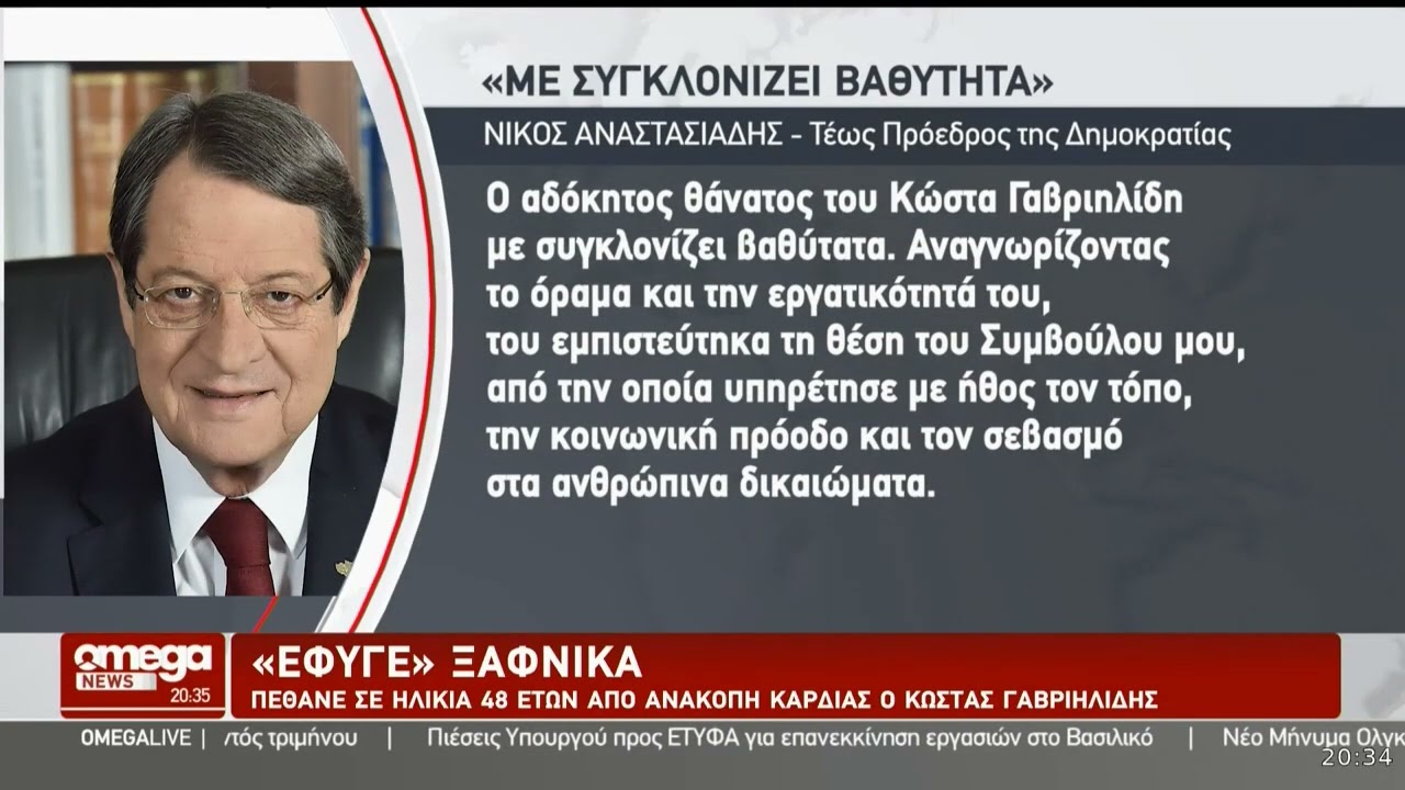 Για την απώλεια του Κ. Γαβριηλίδη ο Πρόεδρος της Κυπριακής Δημοκρατίας δήλωσε τα εξής: