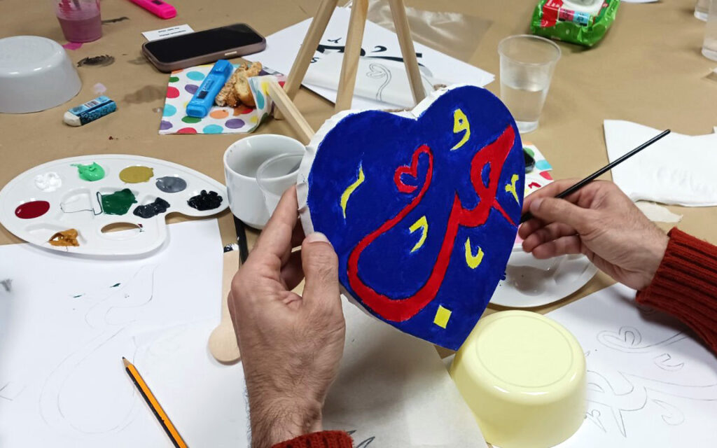 Η δράση, που απευθυνόταν στη Νέα Γενιά Αιγυπτιωτών και φίλους, προσέφερε στους συμμετέχοντες την ευκαιρία να γνωρίσουν την τέχνη της Αραβικής Καλλιγραφίας μέσα από μια βιωματική, ευχάριστη και άκρως δημιουργική εμπειρία. Υπό την εμπνευσμένη καθοδήγηση της καλλιτέχνιδας Ρίτας Καλομοίρη, η οποία φρόντισε με αγάπη και προσοχή κάθε λεπτομέρεια, οι συμμετέχοντες έμαθαν βασικά στοιχεία της αραβικής καλλιγραφίας και ακολούθησαν βήμα-βήμα τη διαδικασία, δημιουργώντας το δικό τους μοναδικό έργο με την αραβική λέξη «χομπ» (αγάπη), χωρίς να απαιτείται προηγούμενη εμπειρία ή γνώση της αραβικής γλώσσας.