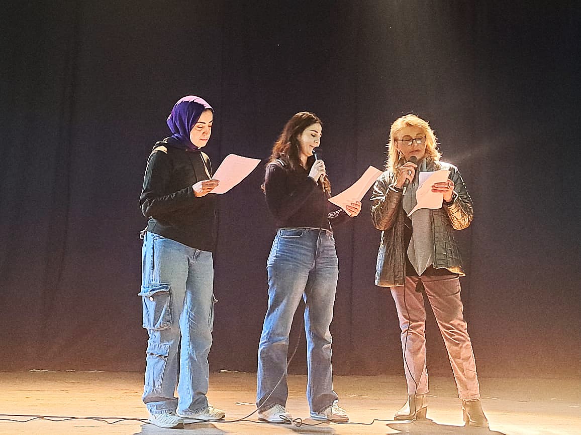 Προεξαρχούσης της Διευθύντριας του Ιδρύματος κας Σταυρούλας Σπανούδη, οι μαθήτριες προβάρουν το κείμενό τους στην Αίθουσα “Ιουλία Σαλβάγου”, ενώ στα γραφεία του ΕΛΙΒΙΠ η Ντανιέλα καμαρώνει για το νέο της βιβλίο.