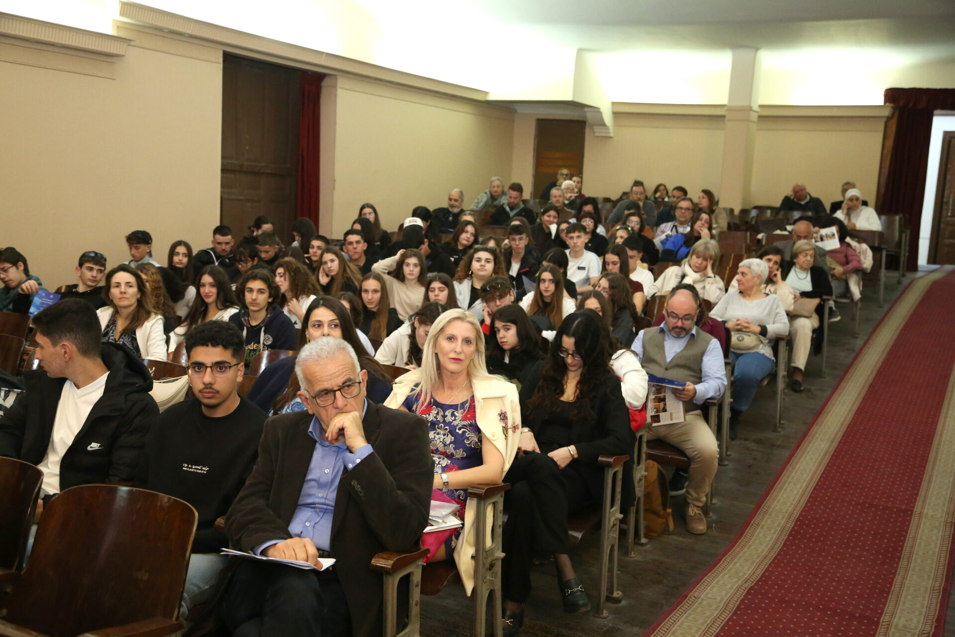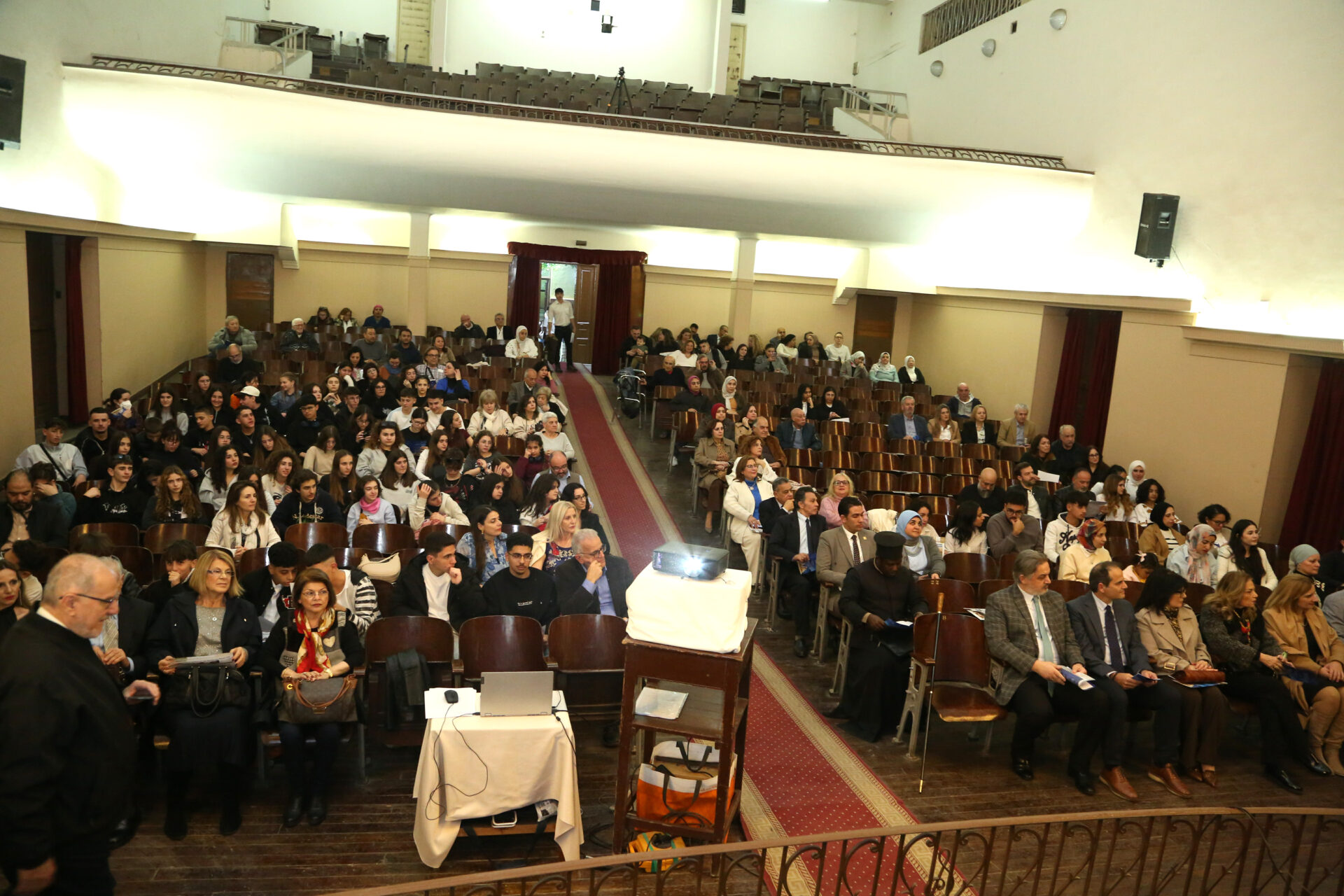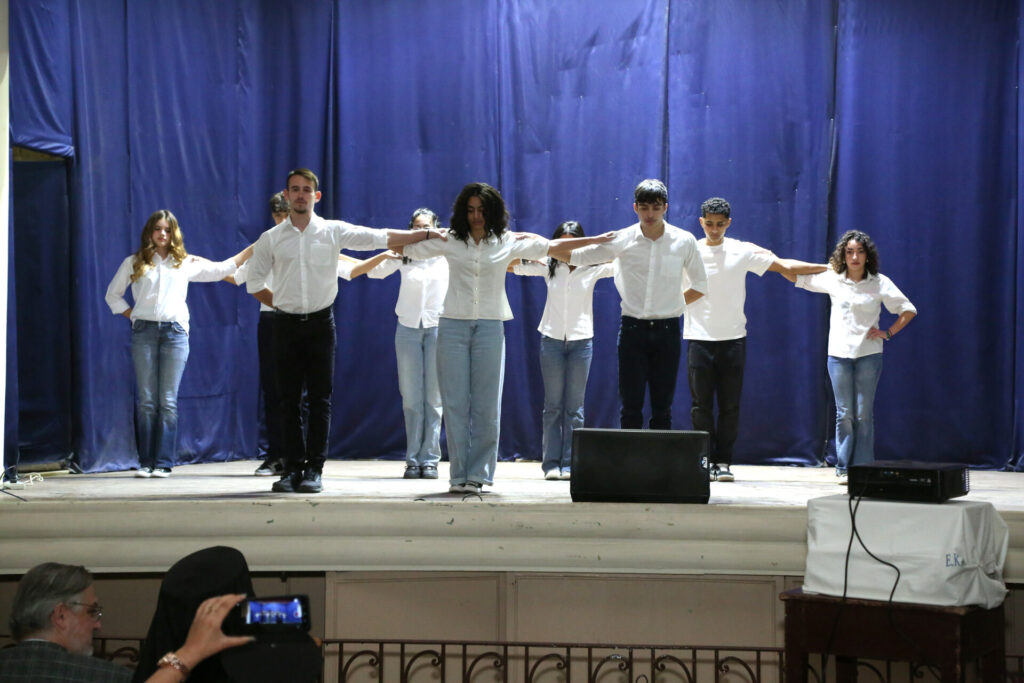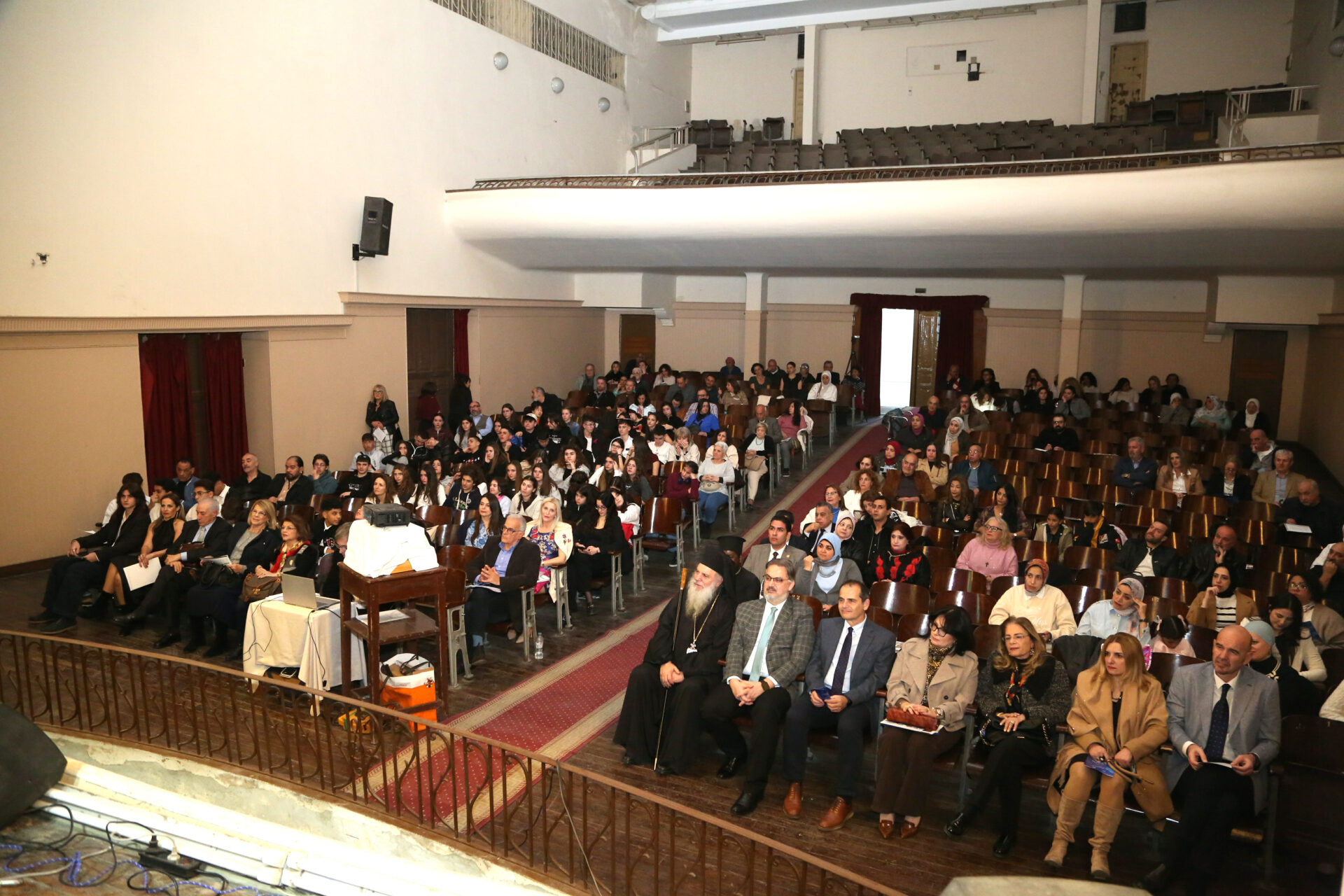 Με την είσοδο εντός της αιθούσης του Πανιερώτατου κ. Γερμανού Προϊστάμενου της Ιεράς Μονής του Οσίου Σάββα του Ηγιασμένου και πνευματικού οδηγού της Πατριαρχικής Σχολής άρχισε το τελετουργικό της εκδήλωσης.