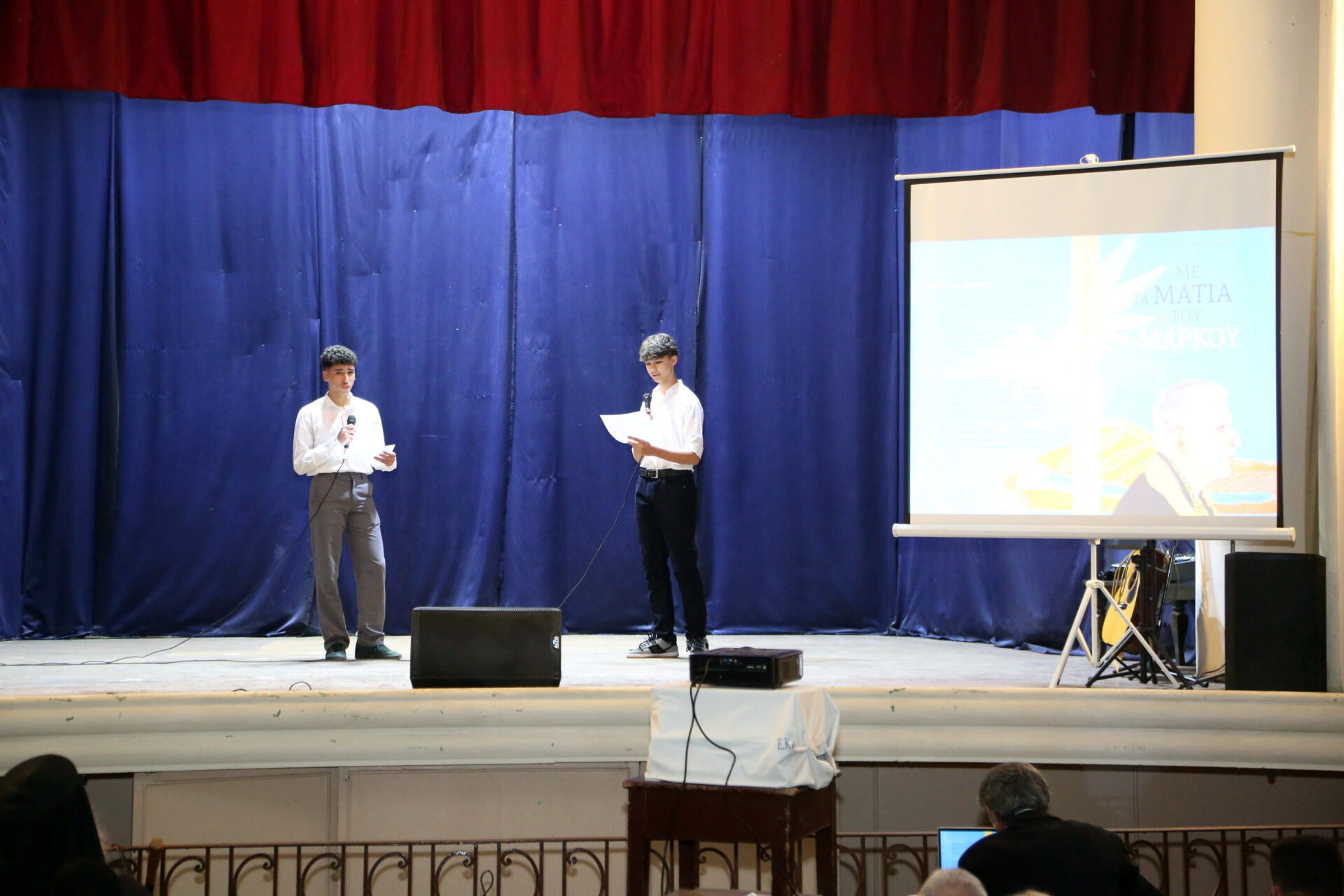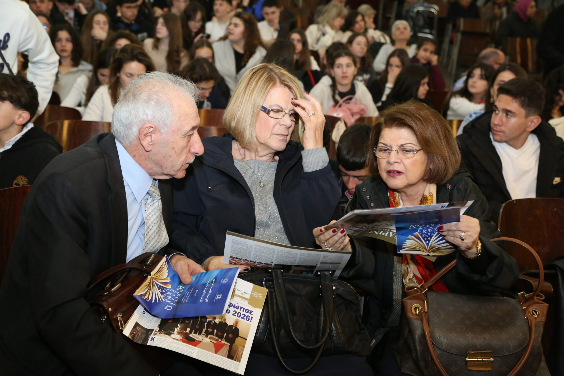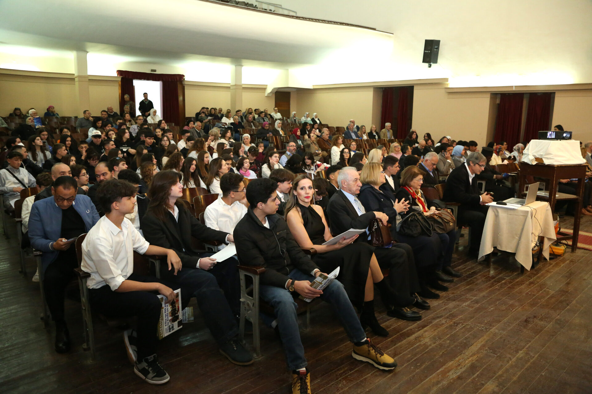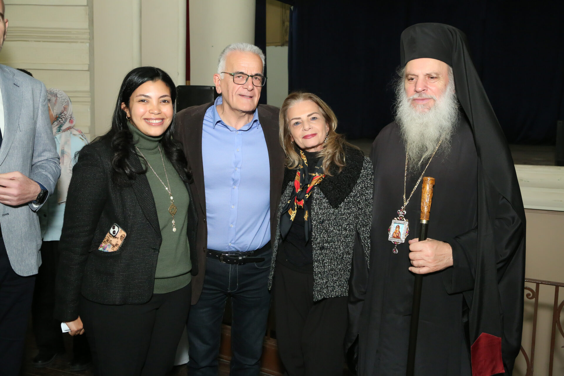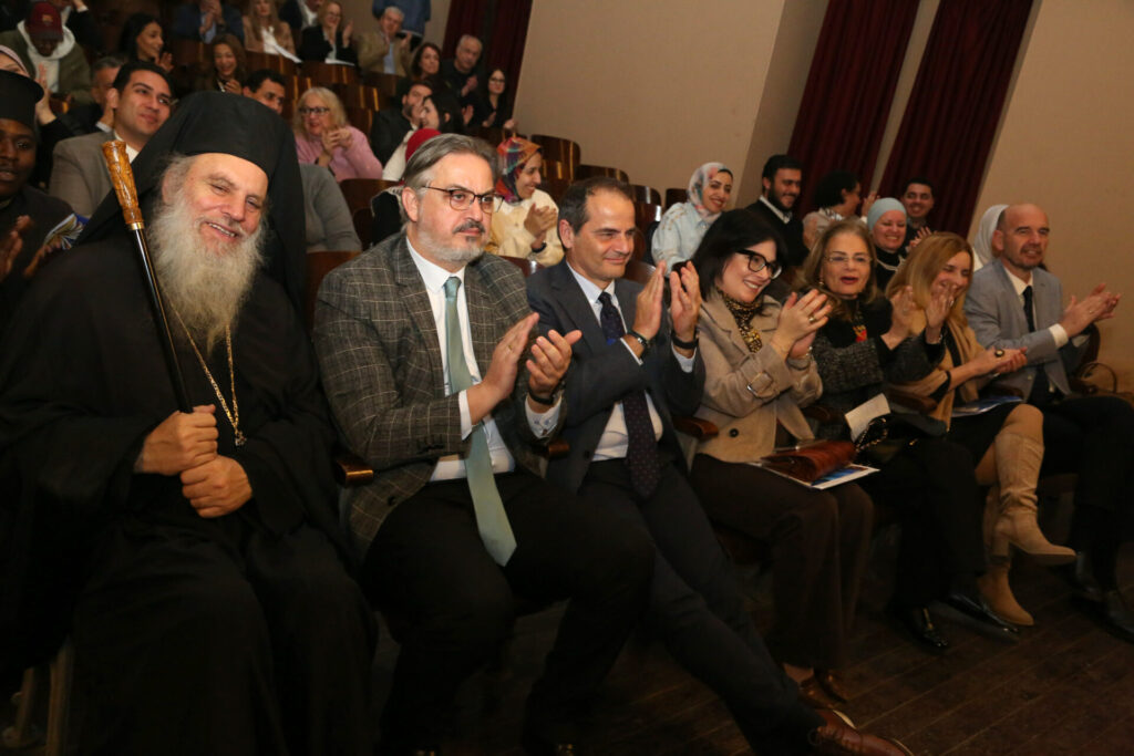 Παρέστησαν: ο Πανιερώτατος Μητροπολίτης Ταμιάθεως κ. Γερμανός, συνοδευμένος από τον Πανοσιολογιότατο κ. Μάρκο, ο Γενικός Πρόξενος της Ελλάδας στην Αλεξάνδρεια κ. Ιωάννης Πυργάκης μετά της συζύγου του Αικατερίνης, ο Σύνδεσμος του Π/Ν της Ελλάδας με την Αλεξάνδρεια Πλοίαρχος κ. Χρυσόστομος Ράγκος μετά της συζύγου του Έλλης, η Πρόεδρος του ΕΝΟΑ και του Πτολεμαίου Α΄ κα Λιλίκα Θλιβίτου, η Πρόεδρος του Λυκείου Ελληνίδων Αλεξανδρείας κα Αλίκη Αντωνίου, ο πρώην Αντιπρόεδρος της Ε.Κ.Α. κ. Μιχάλης Αρσλανίδης, η Διευθύντρια του Ινστιτούτου Ελληνικού και Αλεξανδρινού Πολιτισμού κα Καλλιόπη Παπακώστα, η Διευθύντρια των κοινοτικών ξενώνων και του ιδρύματος «Μάννα» κα Ελένη Άστωρ, ο καθηγητής Νεφρολογίας της Ιατρικής Σχολής του Πανεπιστημίου Αλεξανδρείας κ. Μάγκντι Χασάν, εκπαιδευτικοί, πάροικοι, μαθητές, Αιγύπτιοι και Αιγυπτιώτες, οι οποίοι στο τέλος συνεχάρησαν όλους τους συντελεστές της εξαιρετικής βραδιάς.
