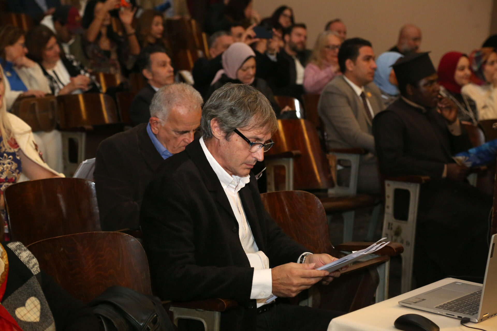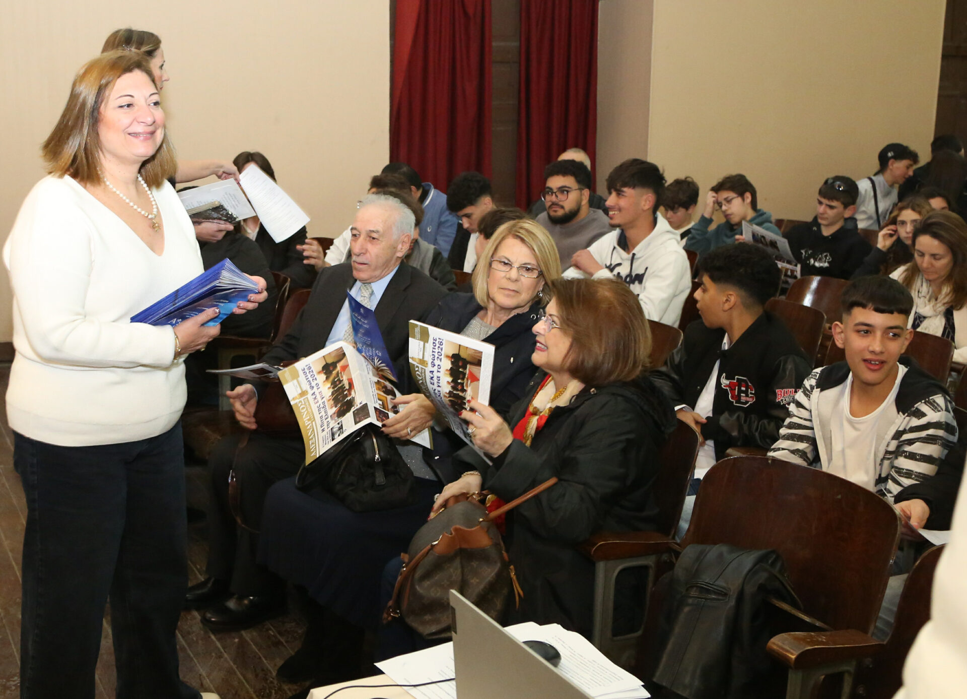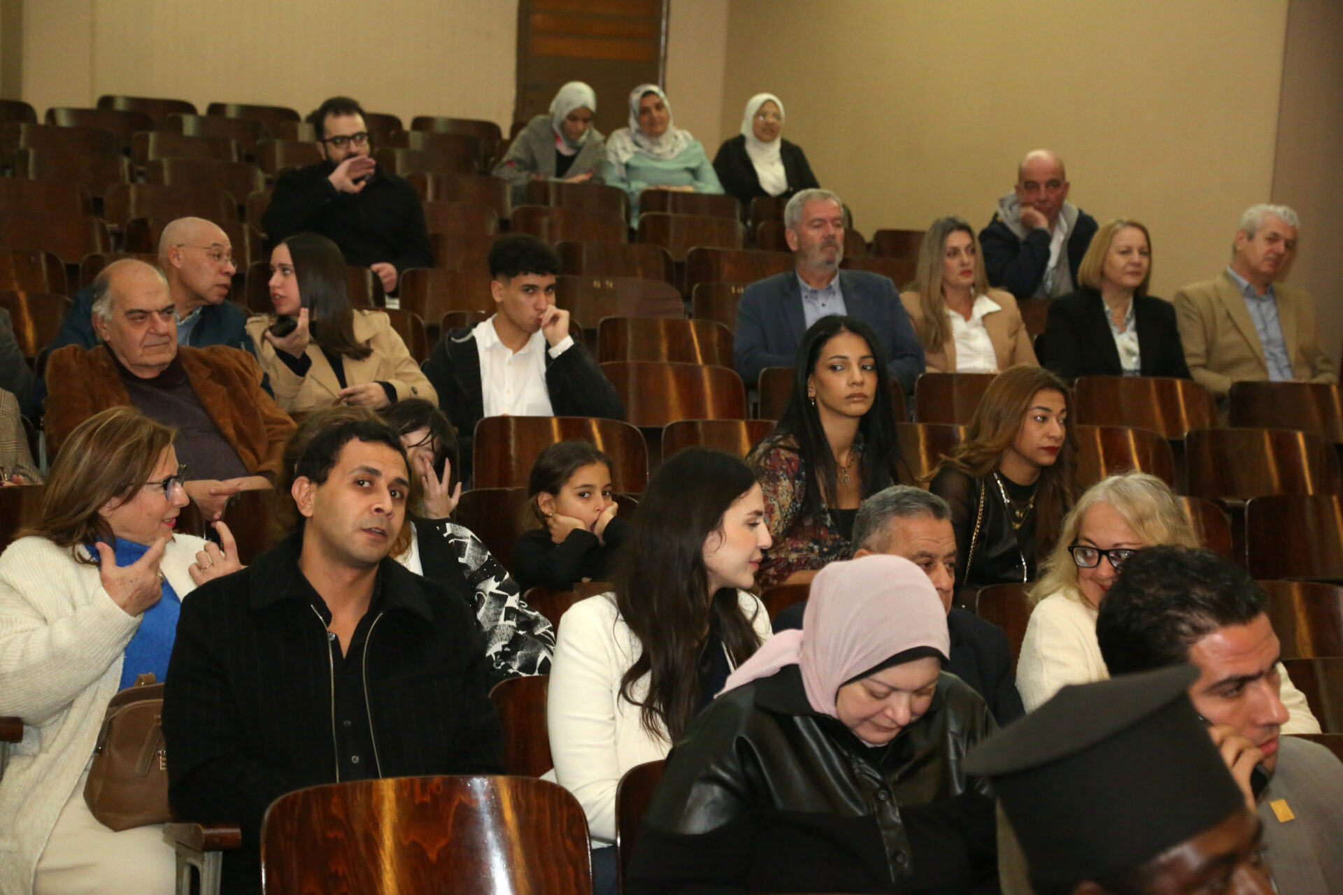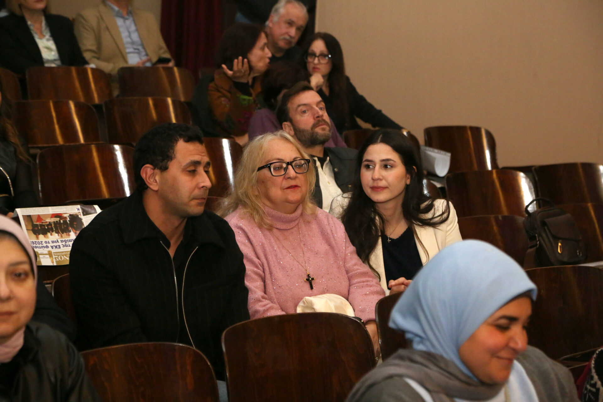 Παρέστησαν: ο Πανιερώτατος Μητροπολίτης Ταμιάθεως κ. Γερμανός, συνοδευμένος από τον Πανοσιολογιότατο κ. Μάρκο, ο Γενικός Πρόξενος της Ελλάδας στην Αλεξάνδρεια κ. Ιωάννης Πυργάκης μετά της συζύγου του Αικατερίνης, ο Σύνδεσμος του Π/Ν της Ελλάδας με την Αλεξάνδρεια Πλοίαρχος κ. Χρυσόστομος Ράγκος μετά της συζύγου του Έλλης, η Πρόεδρος του ΕΝΟΑ και του Πτολεμαίου Α΄ κα Λιλίκα Θλιβίτου, η Πρόεδρος του Λυκείου Ελληνίδων Αλεξανδρείας κα Αλίκη Αντωνίου, ο πρώην Αντιπρόεδρος της Ε.Κ.Α. κ. Μιχάλης Αρσλανίδης, η Διευθύντρια του Ινστιτούτου Ελληνικού και Αλεξανδρινού Πολιτισμού κα Καλλιόπη Παπακώστα, η Διευθύντρια των κοινοτικών ξενώνων και του ιδρύματος «Μάννα» κα Ελένη Άστωρ, ο καθηγητής Νεφρολογίας της Ιατρικής Σχολής του Πανεπιστημίου Αλεξανδρείας κ. Μάγκντι Χασάν, εκπαιδευτικοί, πάροικοι, μαθητές, Αιγύπτιοι και Αιγυπτιώτες, οι οποίοι στο τέλος συνεχάρησαν όλους τους συντελεστές της εξαιρετικής βραδιάς.
