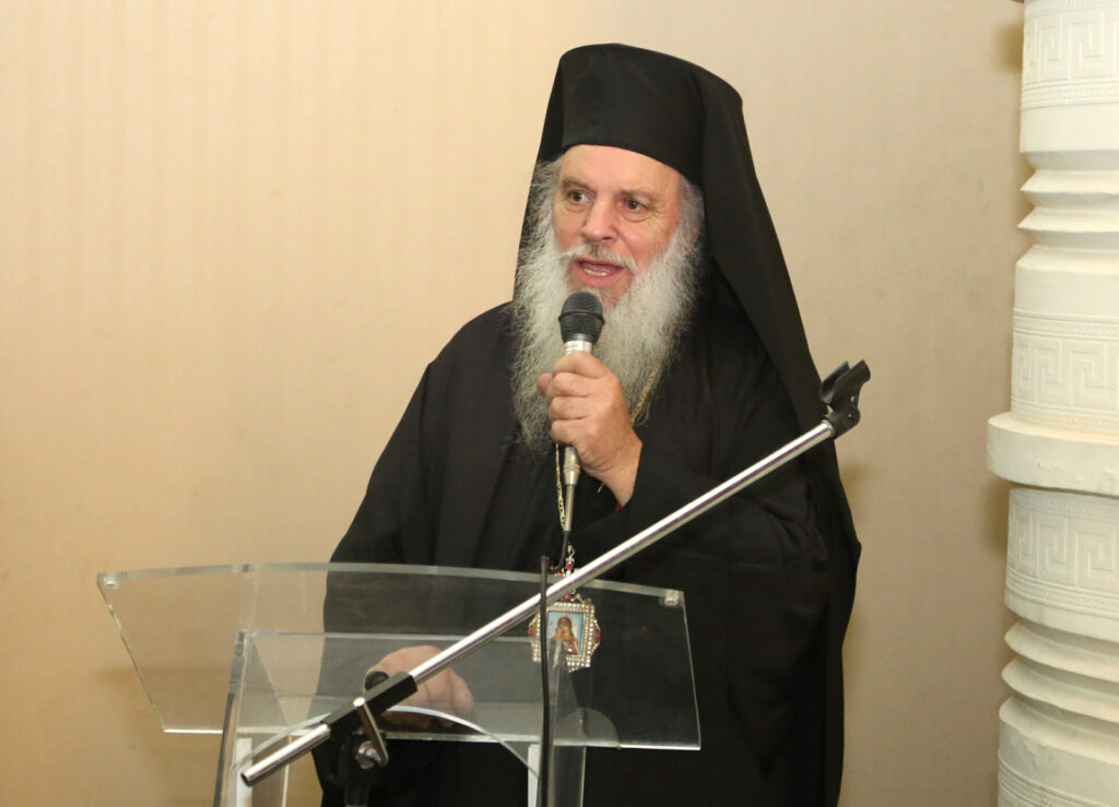 Ο Πανιερώτατος κ. Γερμανός, πρώτος χαιρέτησε την εκδήλωση και ομίλησε μεταφέροντας το μήνυμα και τις ευχές του Πάπα και πατριάρχη Αλεξανδρείας και Πάσης Αφρικής Θεοδώρου Β’, ενώ ο ίδιος ανεφέρθη στην σημασία της Ελληνικής Γλώσσας στο διάβα των αιώνων και τόνισε ιδιαίτερα και ξεχωριστά την ιεραποστολική δράση του Μακαριωτάτου ο οποίος δίνει ανάσες ζωής στους χειμαζόμενους λαούς της Αφρικής. Παράλληλα ενημέρωσε για το μεγάλο του ταξίδι στον Παναμά. Ακόμα ανεφέρθη στο γεγονός ότι τα Ιερά Βιβλία γράφτηκαν εις την ελληνική γλώσσα, στην δε πόλη της Αλεξάνδρειας έγινε η μετάφραση των Εβδομήκοντα.