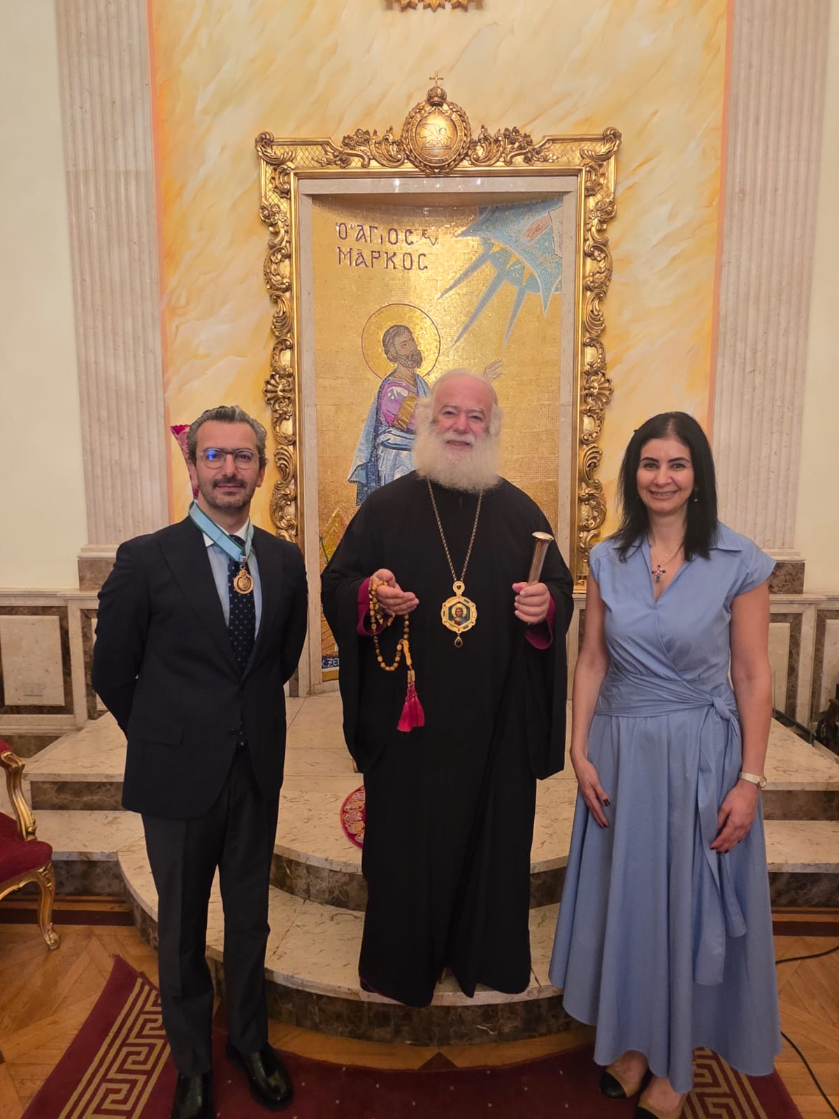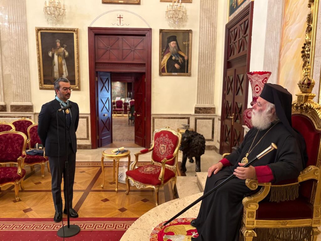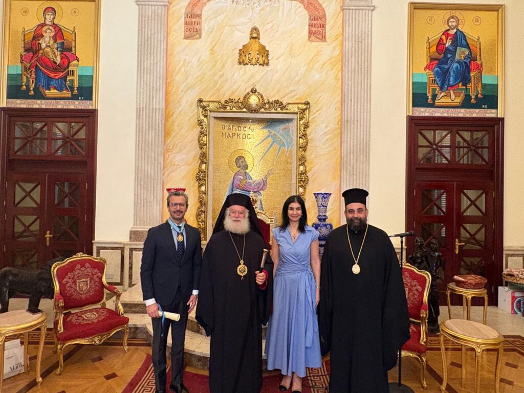 Η τελετή απονομής πραγματοποιήθηκε στην Πατριαρχική Καθέδρα στην Αλεξάνδρεια, παρουσία της συζύγου του τιμωμένου καςSophia Razzouq, σε κλίμα σεβασμού, πνευματικής συγκίνησης και αμοιβαίας εκτίμησης.