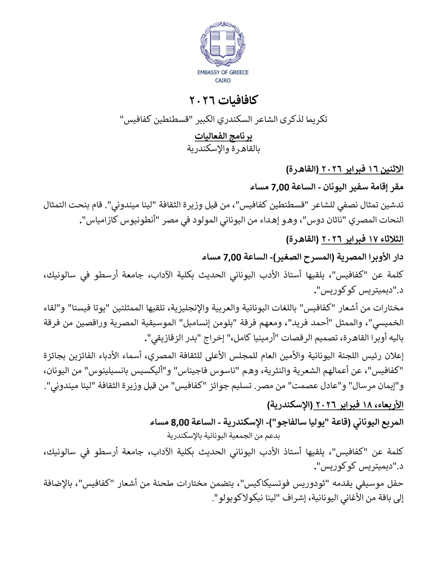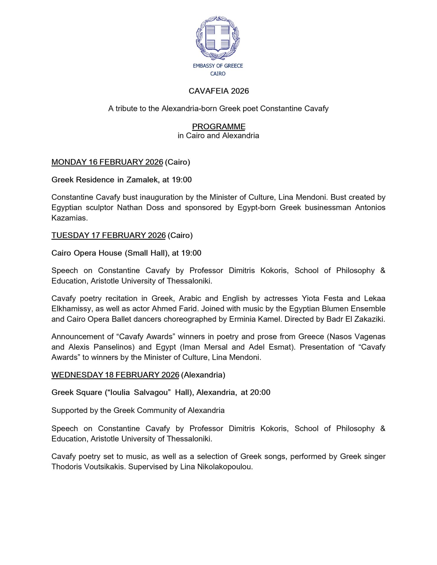 ΚΑΒΑΦΕΙΑ 2026: ΠΡΟΓΡΑΜΜΑ ΕΚΔΗΛΩΣΕΩΝ