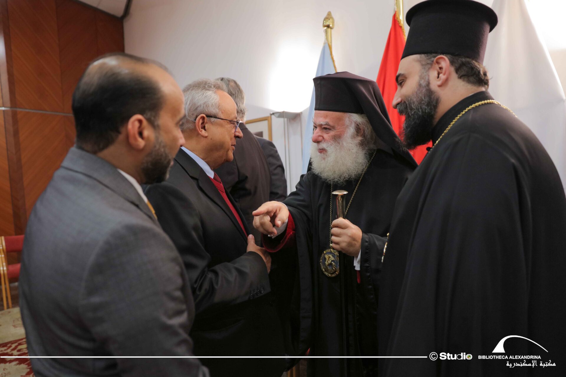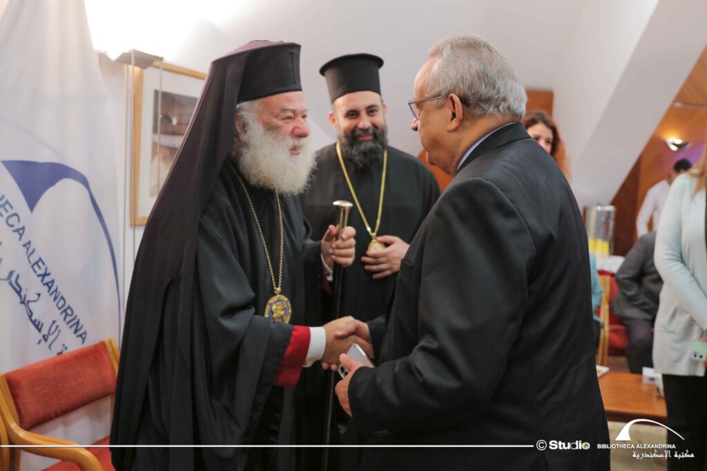 Την επιτυχημένη εκδήλωση τίμησε με την παρουσία του ο Πάπας και Πατριάρχης Αλεξανδρείας και πάσης Αφρικής κ.κ. Θεόδωρος Β΄ συνοδευόμενος από τον Θεοφιλέστατο Επίσκοπο Μαρεώτιδος κ. Δαμασκηνό – Πατριαρχικό Επίτροπο, τους οποίους υποδέχθηκαν ο Γενικός Πρόξενος της Ελλάδας στην Αλεξάνδρεια κ. Ιωάννης Πυργάκης και ο καθηγητής Dr. Ahmed Zayed, Διευθυντής της Βιβλιοθήκης Αλεξανδρείας.