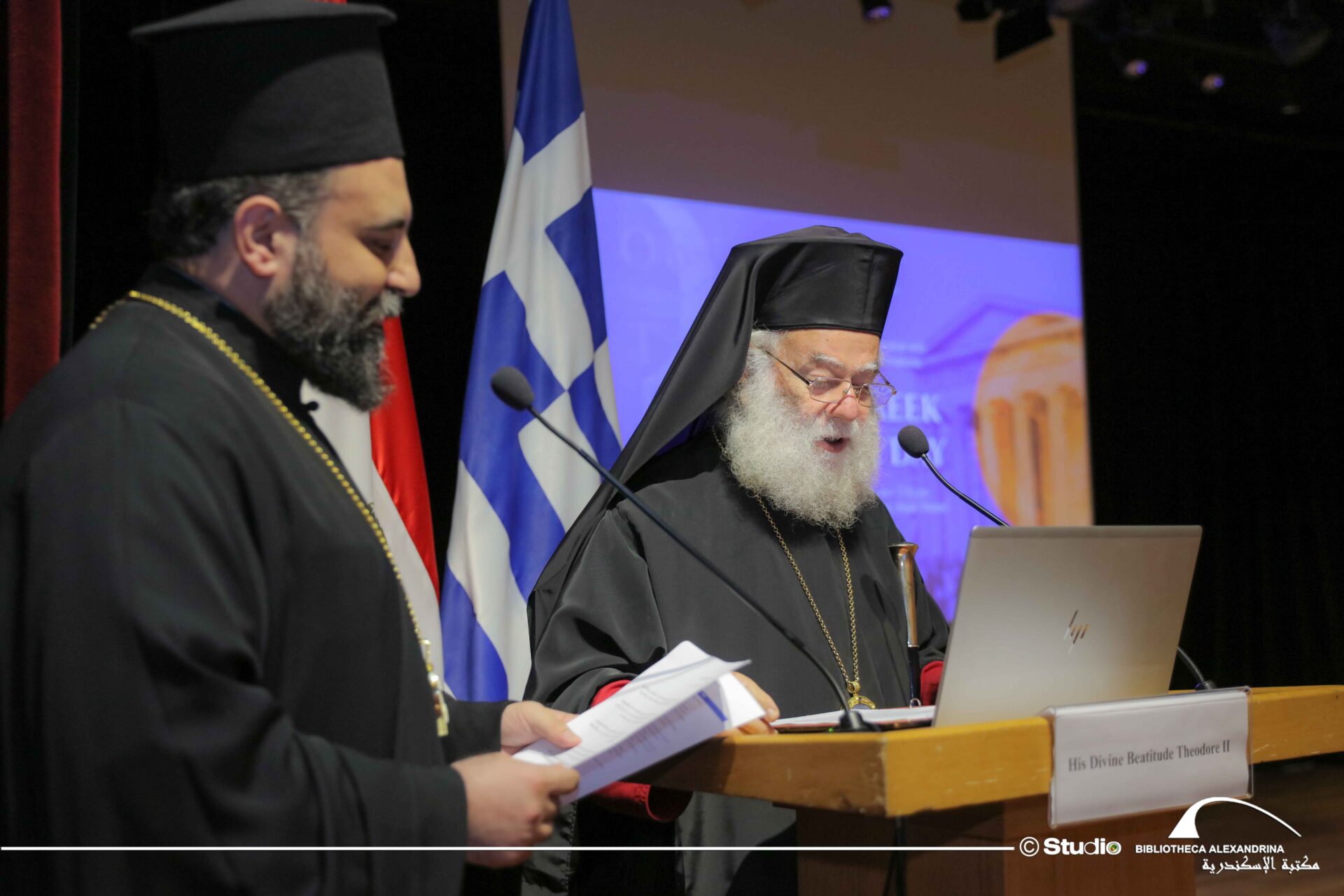 Ο Πάπας και Πατριάρχης Αλεξανδρείας και πάσης Αφρικής κ.κ. Θεόδωρος Β’, δήλωσε μεταξύ άλλων ότι: «Η Αίγυπτος και η Ελλάδα δεν συνδέονται μόνο με ιστορικούς δεσμούς· συνδέονται με δεσμούς καρδιάς και πολιτισμού. Η ελληνική γλώσσα δεν είναι απλώς ένα σύστημα λέξεων. Είναι φορέας μνήμης και ταυτότητας. Είναι η γλώσσα της φιλοσοφίας, της επιστήμης και της ποίησης, αλλά και η γλώσσα του Ευαγγελίου, των Πατέρων της Εκκλησίας, της θεολογίας και της προσευχής. Είναι η γλώσσα που ένωσε τον λόγο με το ήθος και κατέστησε τον πολιτισμό πράξη ευθύνης. Στην Αλεξάνδρεια, η ελληνική λέξη απέκτησε παγκόσμια διάσταση. Στη Βιβλιοθήκη της καλλιεργήθηκε η γνώση. Η Ημέρα της Ελληνικής Γλώσσας συνδέεται με τον εθνικό μας ποιητή, τον Διονύσιο Σολωμό, ο οποίος μας υπενθύμισε ότι “το έθνος πρέπει να μάθει να θεωρεί εθνικό ό,τι είναι αληθινό”. Η ελληνική γλώσσα, γεννημένη σε τόπο διαλόγου και φιλοσοφίας, μπορεί και οφείλει να συνεχίσει να είναι γλώσσα συνύπαρξης, σεβασμού και αρμονίας ιδίως εδώ, στην πολυπολιτισμική Αλεξάνδρεια.