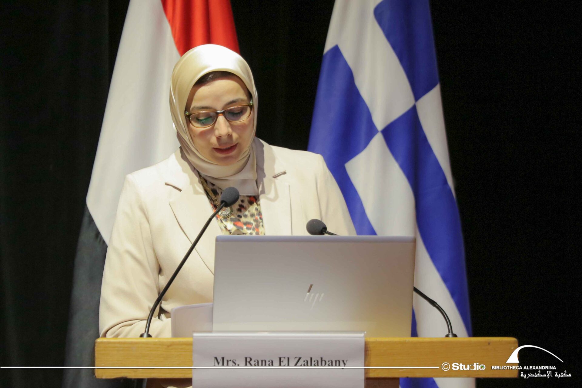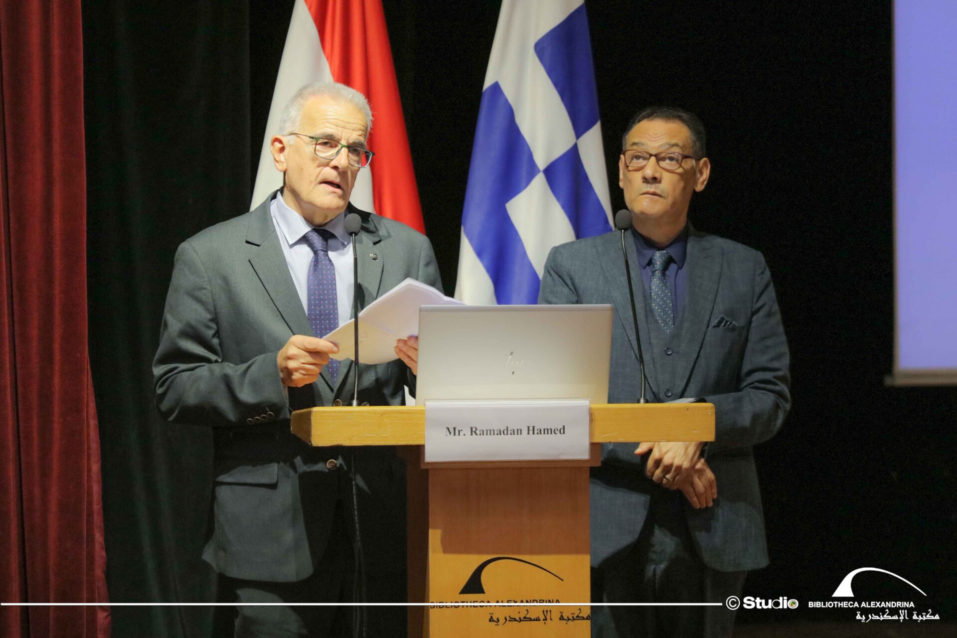 Η Βιβλιοθήκη της Αλεξάνδρειας ενδιαφέρεται για τη μελέτη του μεσογειακού πολιτισμού και του ελληνικού πολιτισμού, μέσω των ερευνητικών της κέντρων και σήμερα ξεκινάμε ένα ταξίδι, σε μια από τις παλαιότερες και πιο επιδραστικές ζωντανές γλώσσες στην ιστορία της ανθρωπότητας», προσθέτοντας συνάμα, ότι, «εμείς στη Βιβλιοθήκη της Αλεξάνδρειας επιβεβαιώνουμε ότι η ελληνική γλώσσα θα παραμείνει σύμβολο διαφωτισμού και γνώσης και είμαστε υπερήφανοι για τη συνεχή πολιτιστική συνεργασία μας με την Ελλάδα».