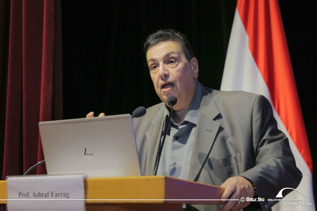 Ακολούθησε η κεντρική διάλεξη με τίτλο «Η ελληνική γλώσσα και ο ρόλος της στη διατήρηση της επιστημονικής, λογοτεχνικής και πνευματικής κληρονομιάς σε ολόκληρο τον κόσμο», που εκφώνησε ο Δρ. Ashraf Faraj, καθηγητής συγκριτικών γλωσσικών επιστημών (ελληνικά και λατινικά) και πρώην κοσμήτορας της Σχολής Φιλολογίας του Πανεπιστημίου Αλεξανδρείας, αναφέροντας ότι «η συνεισφορά της ελληνικής γλώσσας στη διατήρηση και μεταφορά της ανθρώπινης γνώσης ανά γενεές και ο αντίκτυπός της στην επιστημονική κληρονομιά παγκοσμίως την πνευματική και λογοτεχνική, συνεχίζει να είναι παρούσα με πολλούς επιστημονικούς και λογοτεχνικούς όρους που κυκλοφορούν μέχρι σήμερα.
