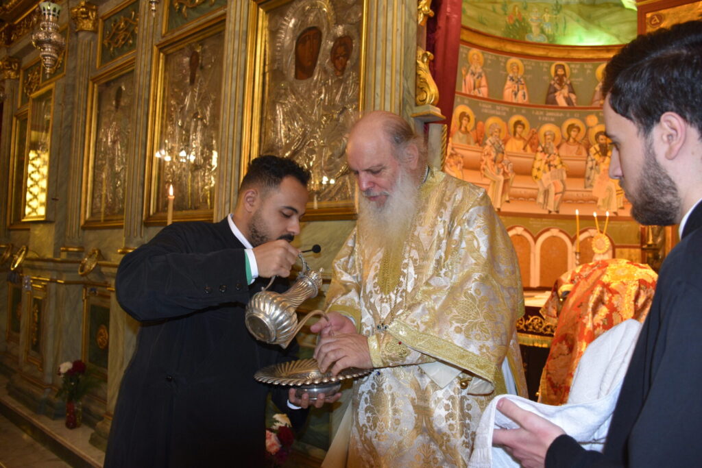 Ανήμερα της εορτής, ο Μακαριώτατος προεξήρχε της Πατριαρχικής Θείας Λειτουργίας στην Ιερά Πατριαρχική Μονή του Αγίου Σάββα του Ηγιασμένου στην Αλεξάνδρεια, πλαισιούμενος υπό του Σεβασμιωτάτου Αρχιεπισκόπου Σινά, Φαράν και Ραϊθώ κ. Συμεών, Καθηγουμένου της Ιεράς Αυτοκρατορικής και Αυτονόμου Μονής της Αγίας Αικατερίνης του Θεοβαδίστου Όρους Σινά, καθώς και των Μητροπολιτών Ερμουπόλεως κ. Νικολάου, Μέμφιδος κ. Νικοδήμου, Νουβίας κ. Σάββα, Πηλουσίου κ. Νάρκισσου και Ταμιάθεως κ. Γερμανού, και των Επισκόπων Κωνσταντινιανής κ. Κοσμά, Ιππώνος κ. Στεφάνου και Μαρεώτιδος κ. Δαμασκηνού, ενώ εκ του Ιερού Βήματος παρέστη συμπροσευχόμενος ο Θεοφιλέστατος Επίσκοπος Νιτρίας κ. Νικόδημος.
