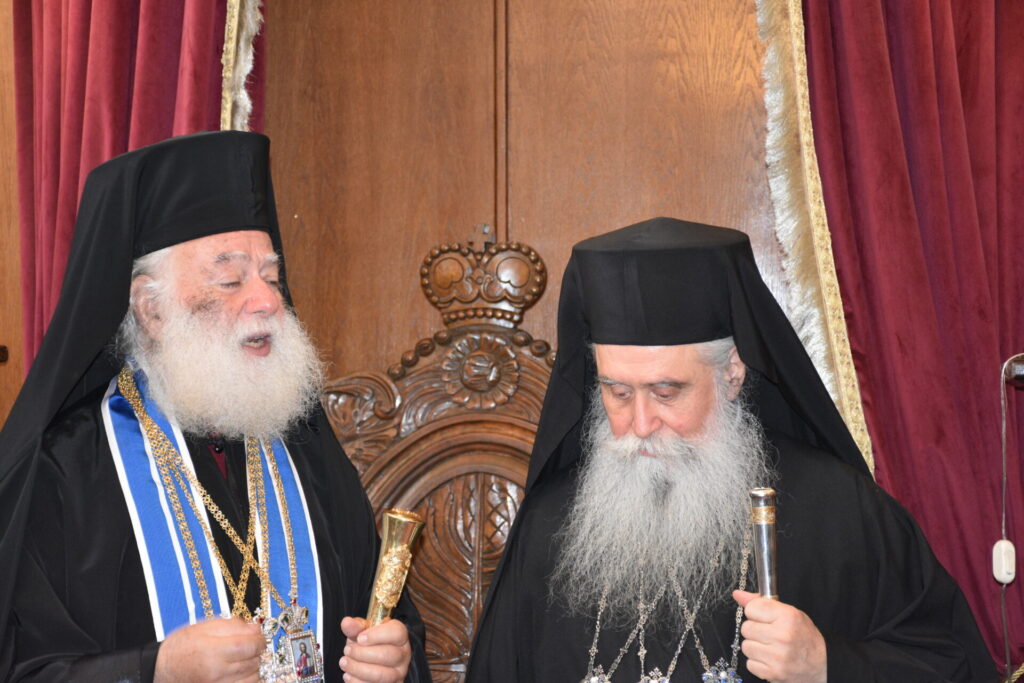 Κατακλείοντας, ο Μακαριώτατος προσέφερε στον Σεβασμιώτατο, ως ιδιαίτερη ευλογία και απτό σημείο πατρικής αγάπης, τα προσωπικά του Πατριαρχικά εγκόλπια, ώστε, όταν τα φέρει ιερουργών στην Ιερά Μονή της Αγίας Αικατερίνης του Θεοβαδίστου Όρους Σινά, να μνημονεύει στις προσευχές του το Παλαιφάτο Πατριαρχείο Αλεξανδρείας, όπως ο Κύριος, διά πρεσβειών της Αγίας Αικατερίνης, να στηρίξει και το μεγάλο ιεραποστολικό και φιλανθρωπικό έργο που επιτελείται στην Αφρικανική ήπειρο.