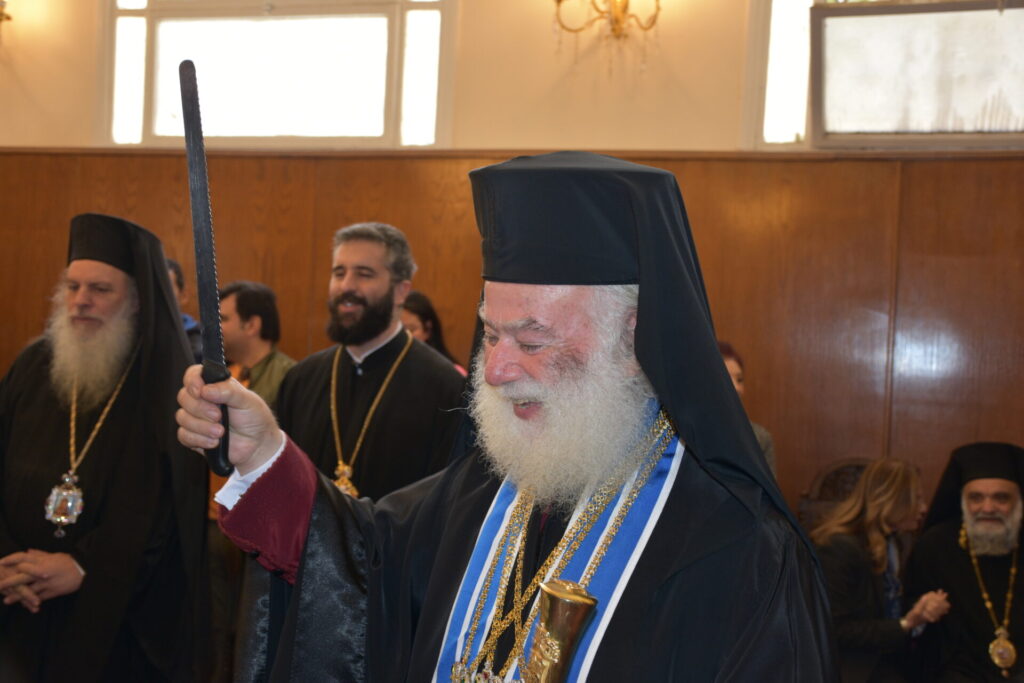 Με πατερική παρρησία παρομοίασε τον Σεβασμιώτατο κ. Συμεών με «νέον Μωυσήν», καλούμενον να οδηγήσει τη Σιναϊτική Αδελφότητα εν μέσω συγχρόνων προκλήσεων προς τον εύδιο λιμένα της χάριτος και της σωτηρίας, επισημαίνοντας ότι η Πατριαρχική αγκάλη της Αλεξάνδρειας παραμένει πάντοτε ανοικτή.
