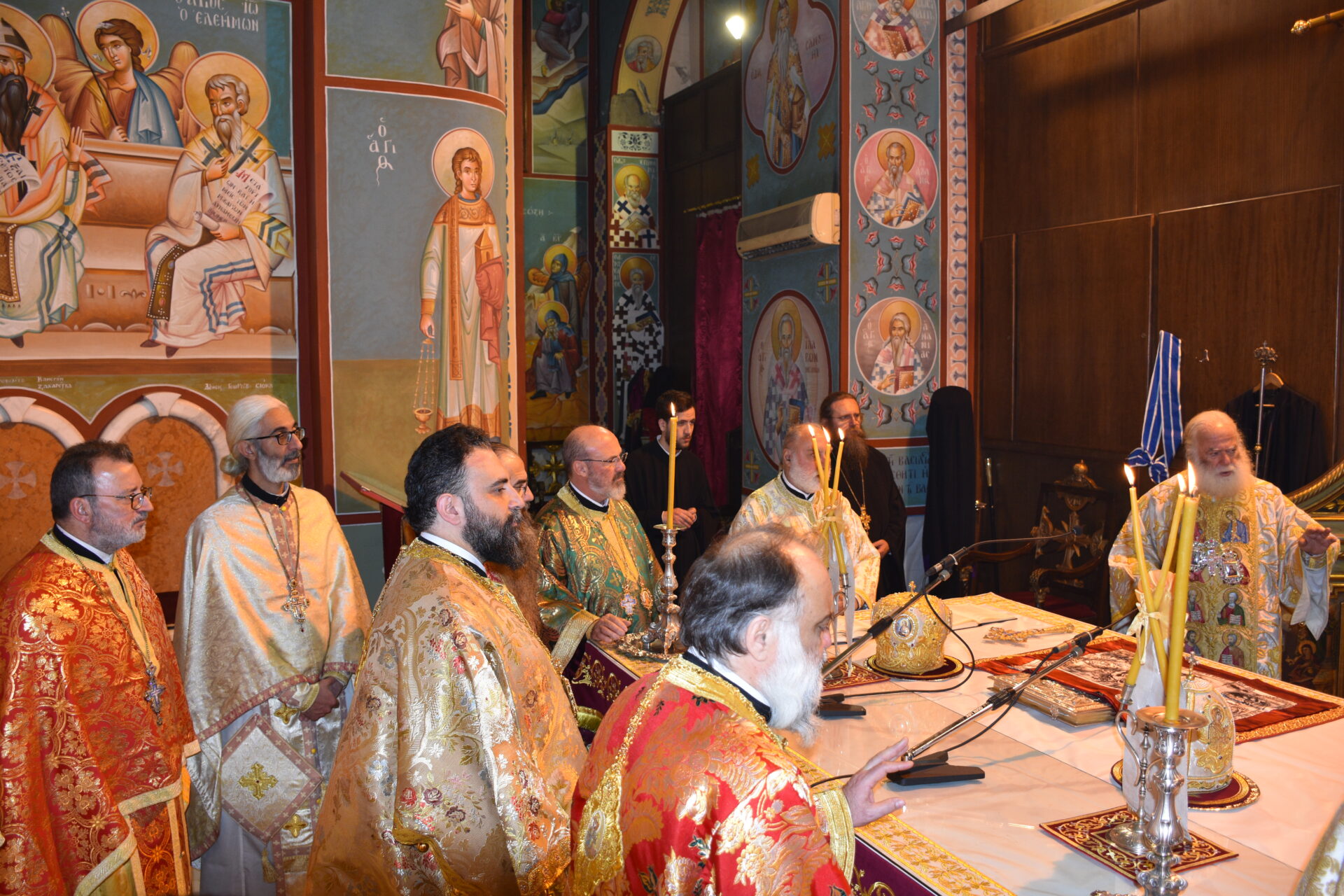 Κατά την παραμονή της εορτής, ο Σεβασμιώτατος χοροστάτησε στον πανηγυρικό Εσπερινό επί τη μνήμη του Αγίου Θεοδώρου του Τήρωνος στην Ιερά Πατριαρχική Μονή του Αγίου Σάββα.