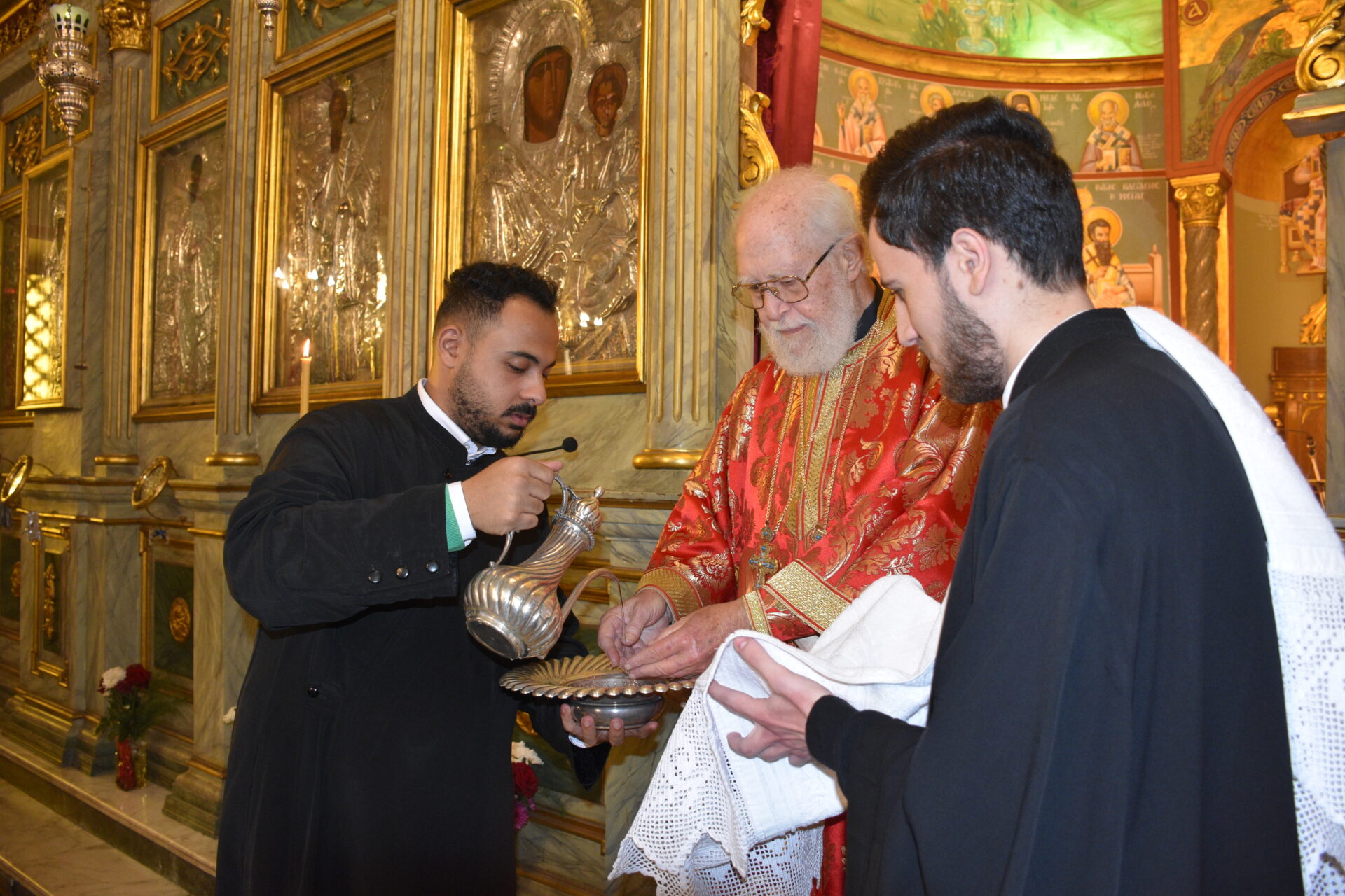 Ανήμερα της εορτής, ο Μακαριώτατος προεξήρχε της Πατριαρχικής Θείας Λειτουργίας στην Ιερά Πατριαρχική Μονή του Αγίου Σάββα του Ηγιασμένου στην Αλεξάνδρεια, πλαισιούμενος υπό του Σεβασμιωτάτου Αρχιεπισκόπου Σινά, Φαράν και Ραϊθώ κ. Συμεών, Καθηγουμένου της Ιεράς Αυτοκρατορικής και Αυτονόμου Μονής της Αγίας Αικατερίνης του Θεοβαδίστου Όρους Σινά, καθώς και των Μητροπολιτών Ερμουπόλεως κ. Νικολάου, Μέμφιδος κ. Νικοδήμου, Νουβίας κ. Σάββα, Πηλουσίου κ. Νάρκισσου και Ταμιάθεως κ. Γερμανού, και των Επισκόπων Κωνσταντινιανής κ. Κοσμά, Ιππώνος κ. Στεφάνου και Μαρεώτιδος κ. Δαμασκηνού, ενώ εκ του Ιερού Βήματος παρέστη συμπροσευχόμενος ο Θεοφιλέστατος Επίσκοπος Νιτρίας κ. Νικόδημος.