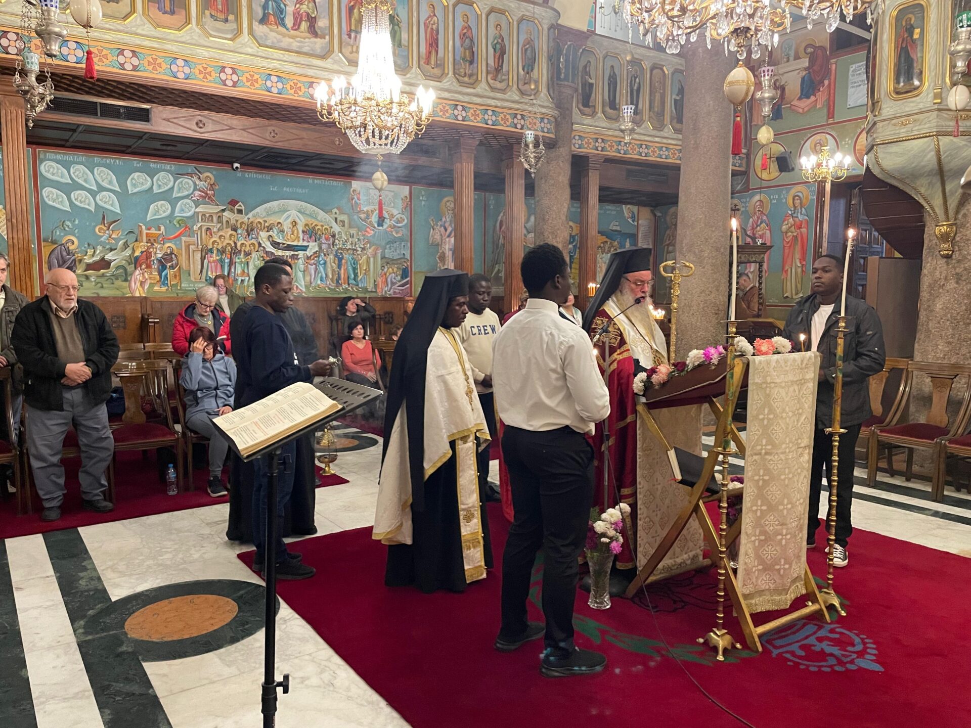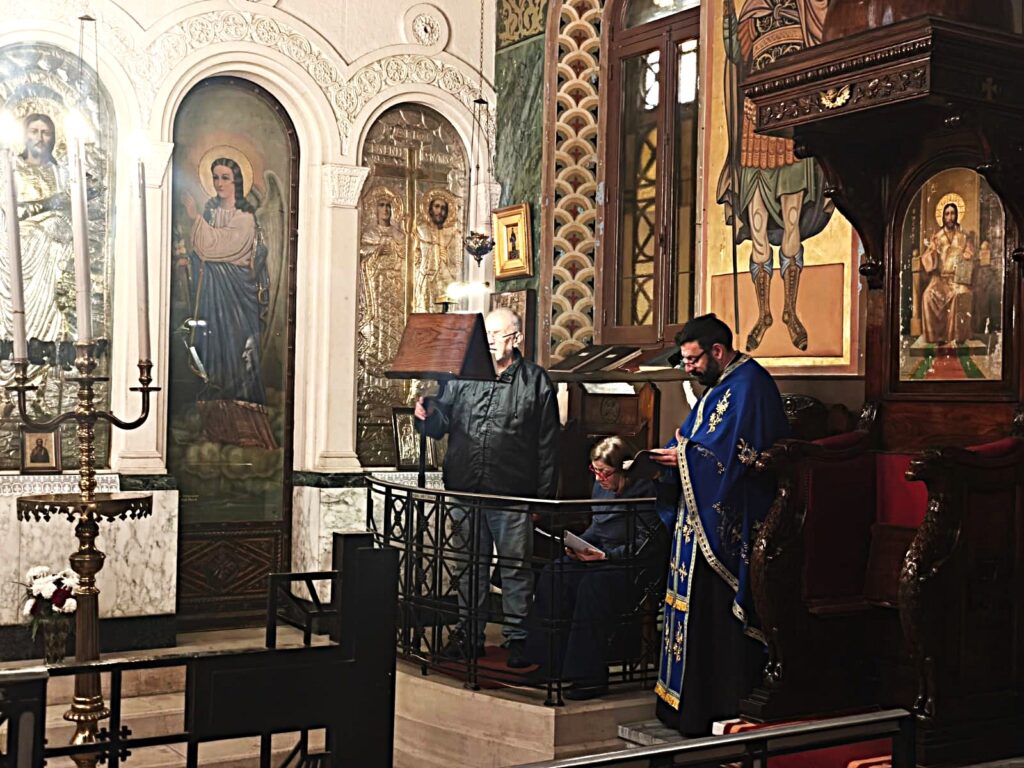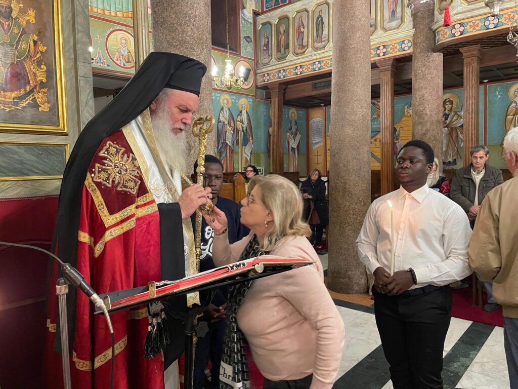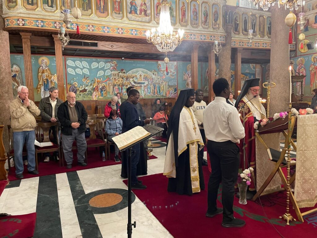 Ο Πανιερώτατος Μητροπολίτης Ταμιάθεως κ. Γερμανός – Προϊστάμενος της Ιεράς Μονής τέλεσε την ιΙερή Ακολουθία, με συμπροσευχόμενους τους Πανοσιολογιότατους Αρχιμανδρίτες: κ. Επιφάνιο, και κ. Μάρκο, καθώς και τον Αραβόφωνο Ιερέα πατέρα Σάμυ. Όπως πάντα παρών ο ιεροψάλτης κ. Ιωάννης Γενειατάκης και βέβαια ευχάριστη νότα η παρουσία των συμπροσευχόμενων νέων μαθητών της Πατριαρχικής Σχολής Άγιος Αθανάσιος, από διάφορες χώρες της Αφρικής.