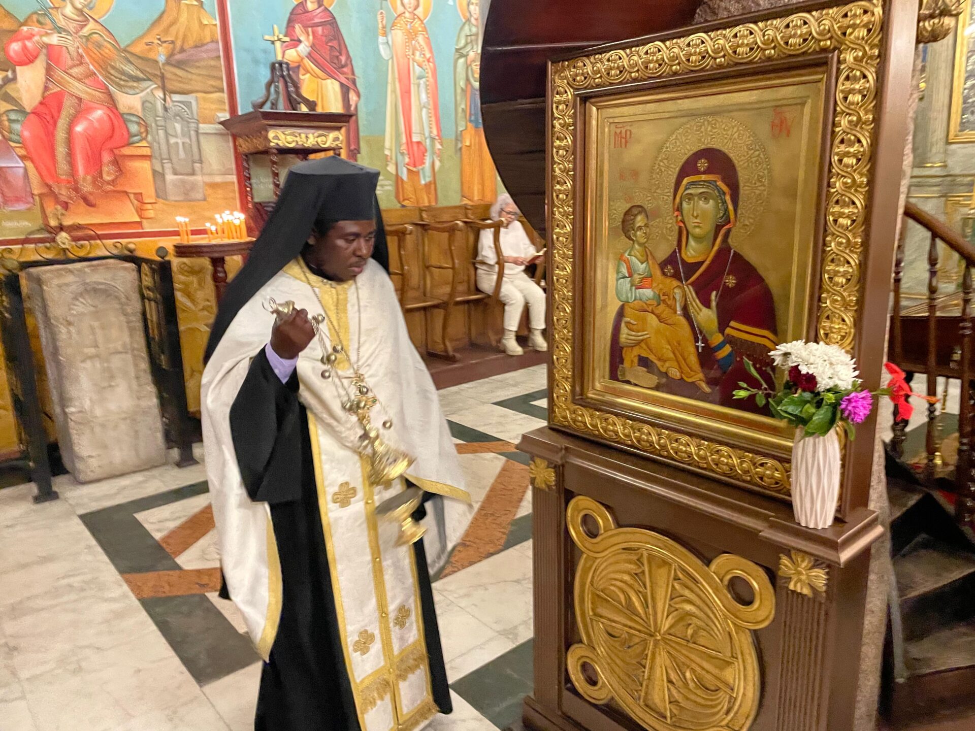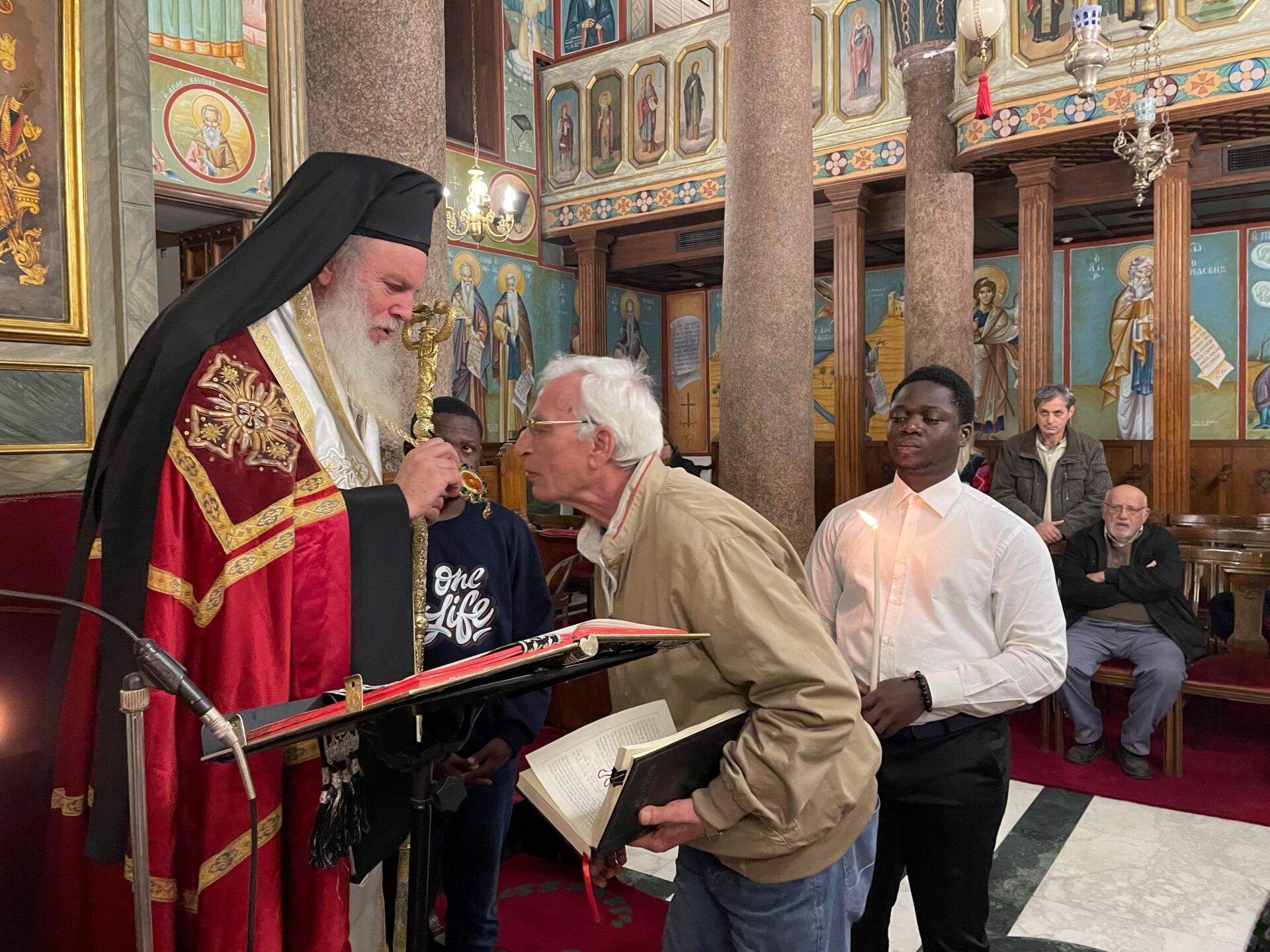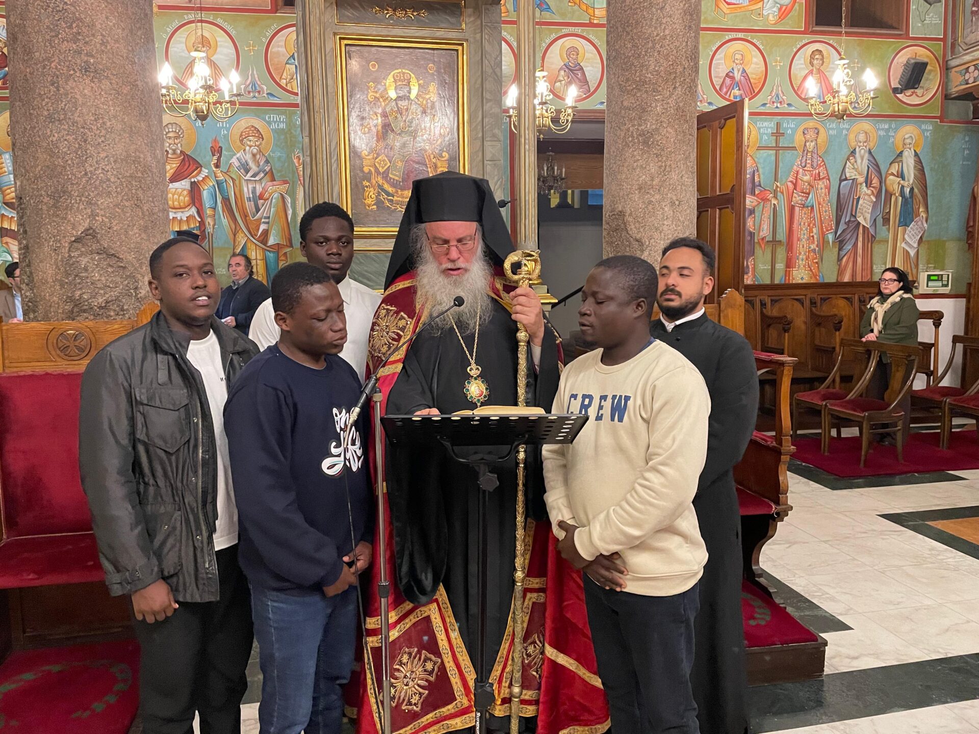 Ο Πανιερώτατος Μητροπολίτης Ταμιάθεως κ. Γερμανός – Προϊστάμενος της Ιεράς Μονής τέλεσε την ιΙερή Ακολουθία, με συμπροσευχόμενους τους Πανοσιολογιότατους Αρχιμανδρίτες: κ. Επιφάνιο, και κ. Μάρκο, καθώς και τον Αραβόφωνο Ιερέα πατέρα Σάμυ. Όπως πάντα παρών ο ιεροψάλτης κ. Ιωάννης Γενειατάκης και βέβαια ευχάριστη νότα η παρουσία των συμπροσευχόμενων νέων μαθητών της Πατριαρχικής Σχολής Άγιος Αθανάσιος, από διάφορες χώρες της Αφρικής.