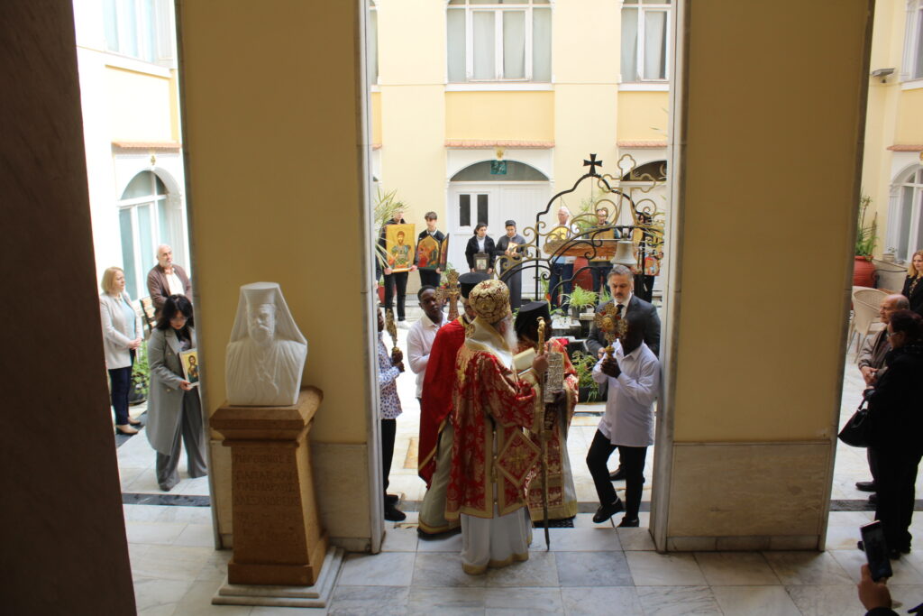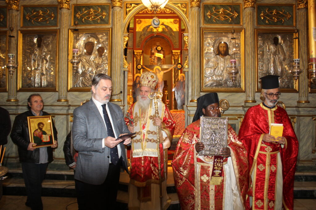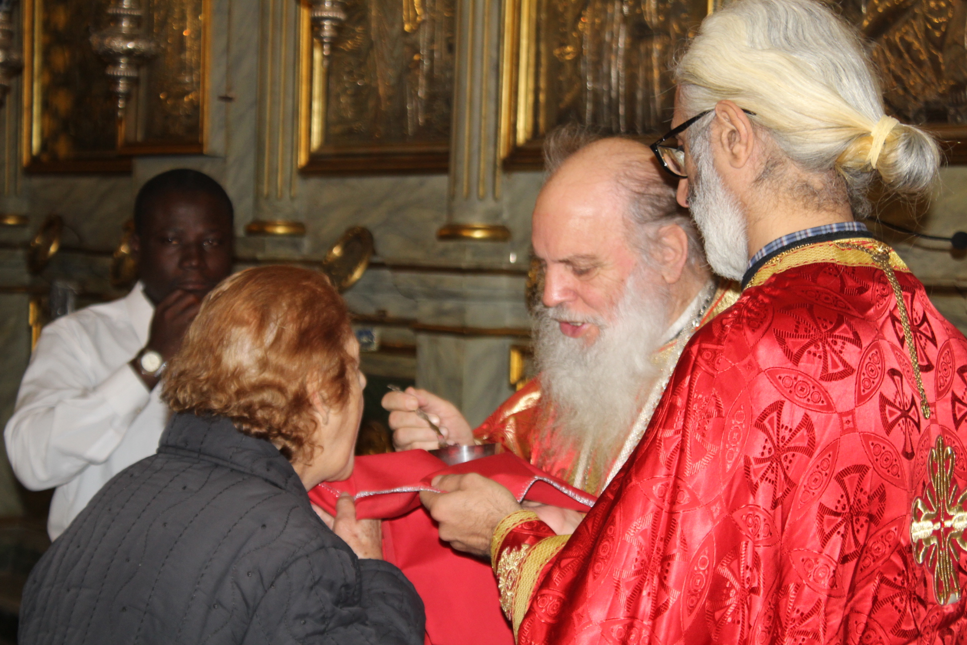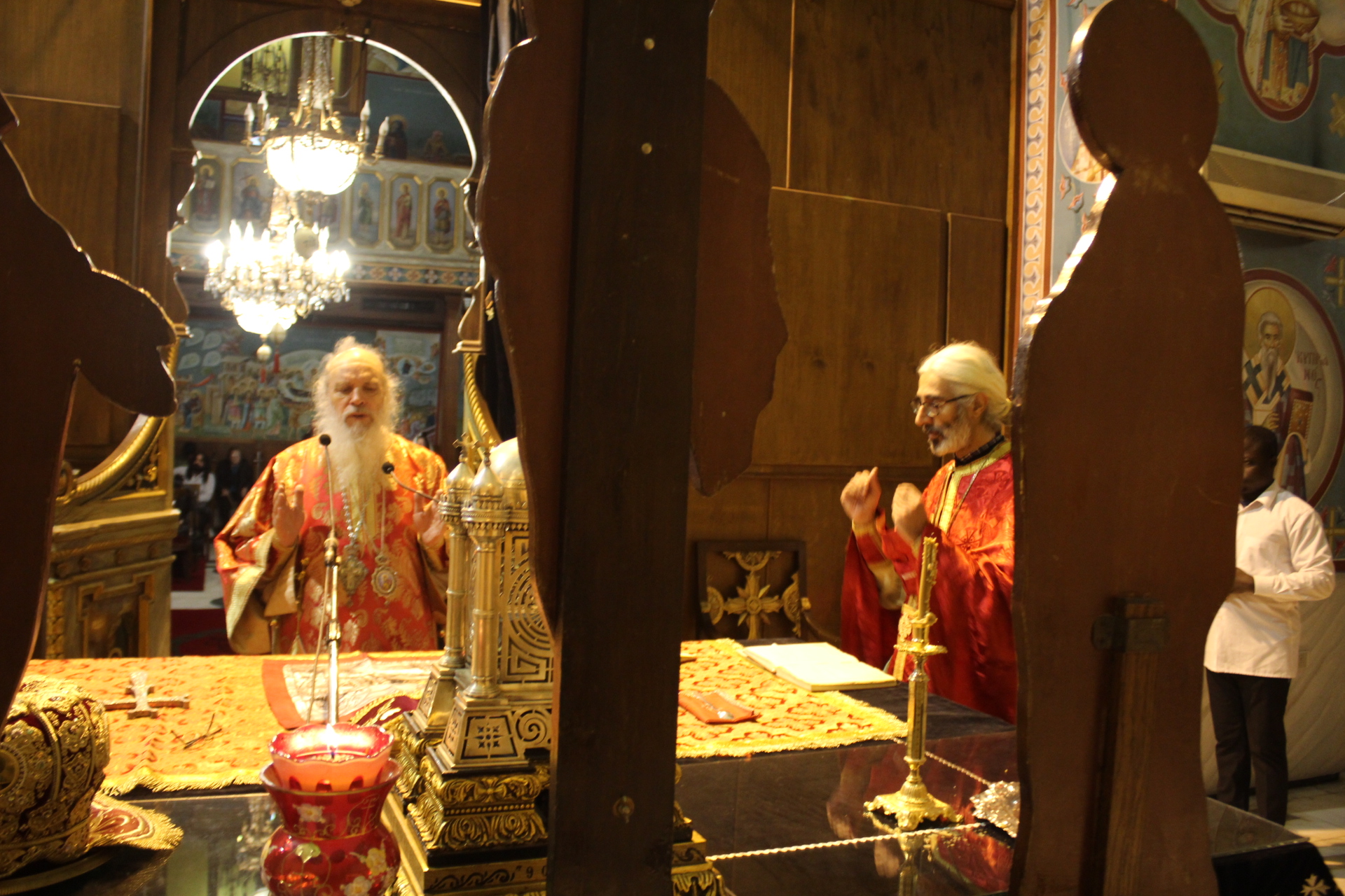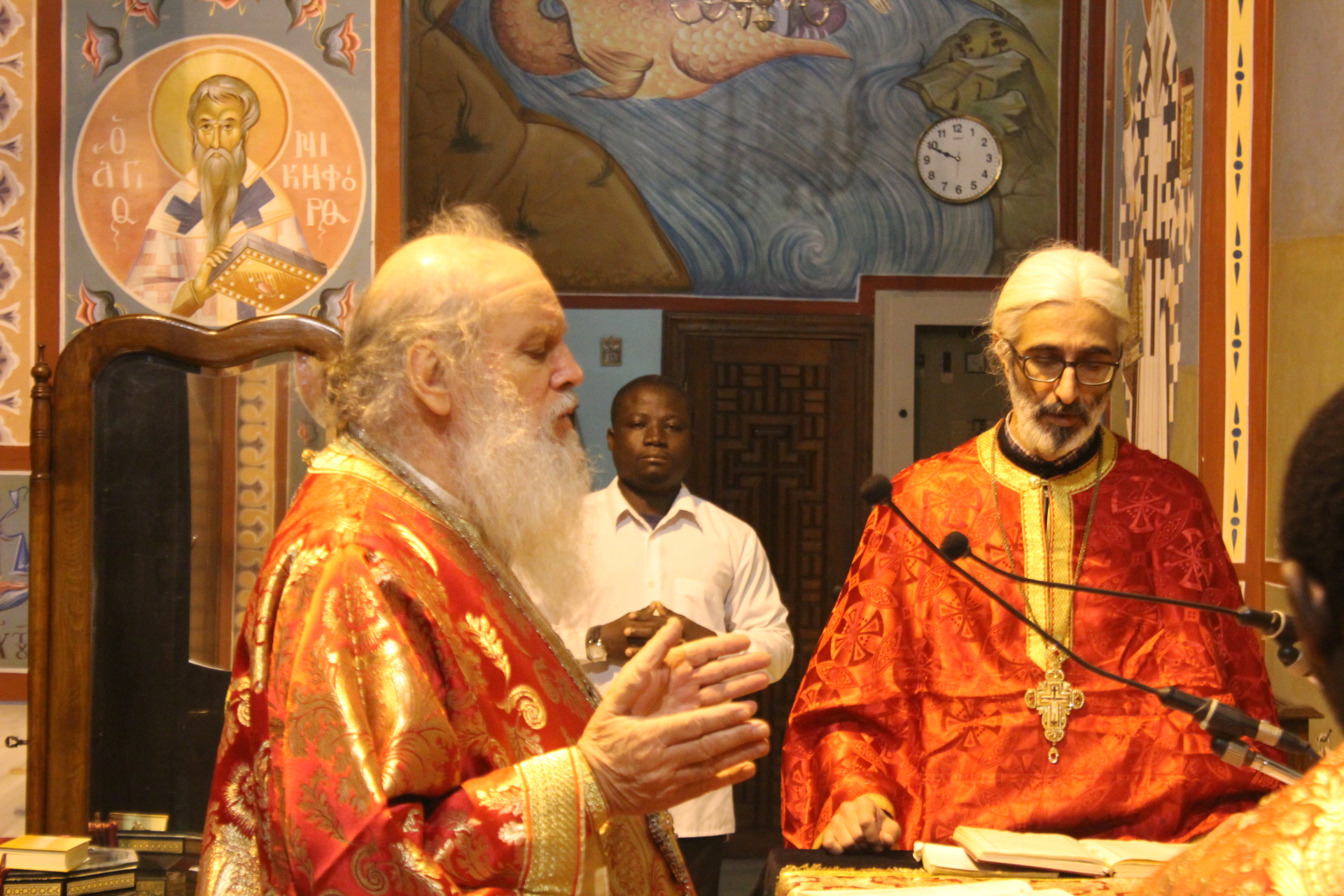 Στο ψαλτήρι ο Γενικός Πρόξενος της Ελλάδας στην Αλεξάνδρεια κ. Ιωάννης Πυργάκης, για άλλη μια φορά δημιούργησε κατανυκτικότητα, “φορτίζοντας” με την βυζαντινή υμνογραφία συγκινησιακά συναισθήματα. Μαζί του αρωγός ο μουσικός- ιεροψάλτης κ. Ιωάννης Γενειατάκης και οι εκπαιδευόμενοι – άρτι αφιχθέντες – από τις Αφρικανικές χώρες, νέοι μαθητές της Πατριαρχικής Σχολής Άγιος Αθανάσιος.