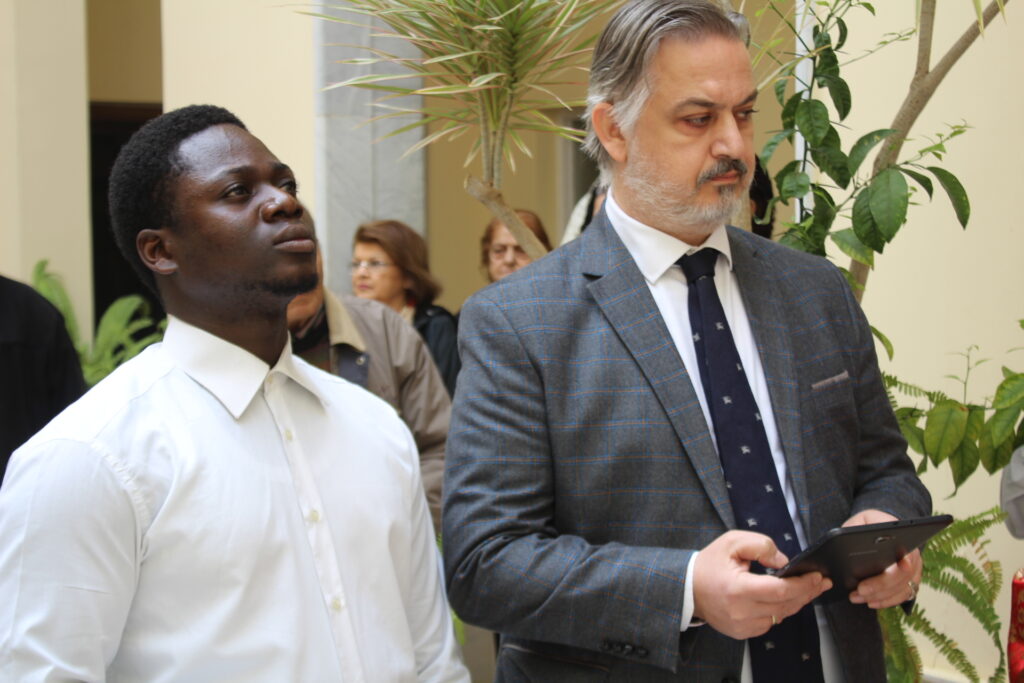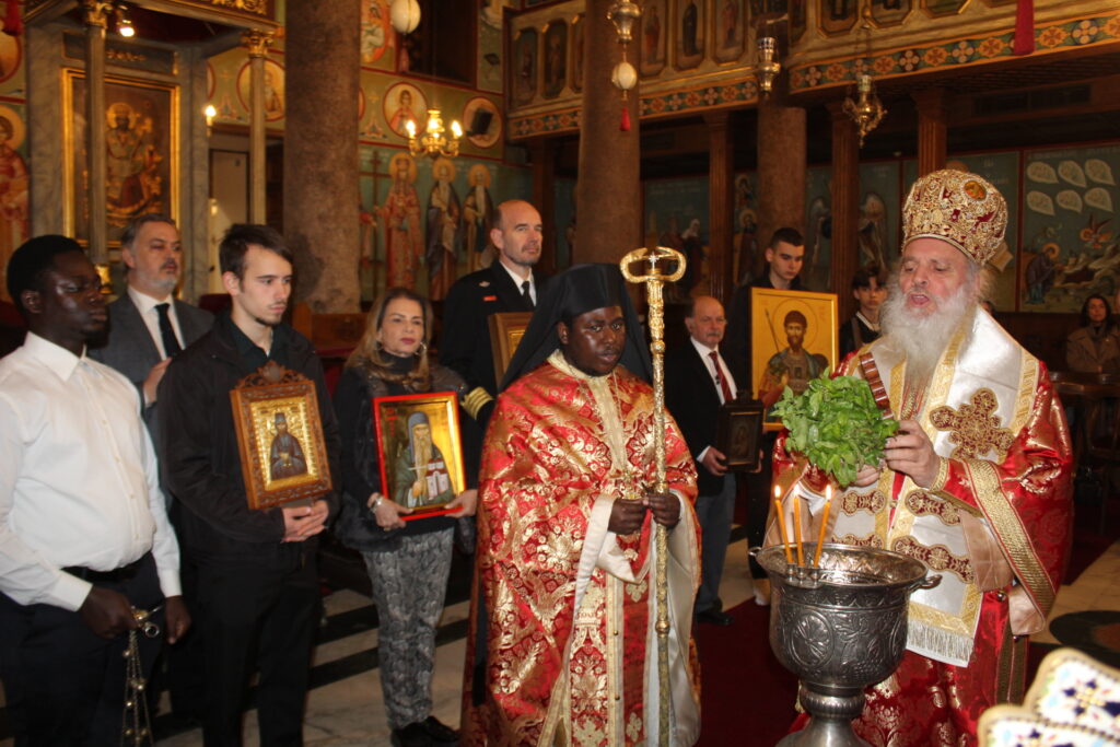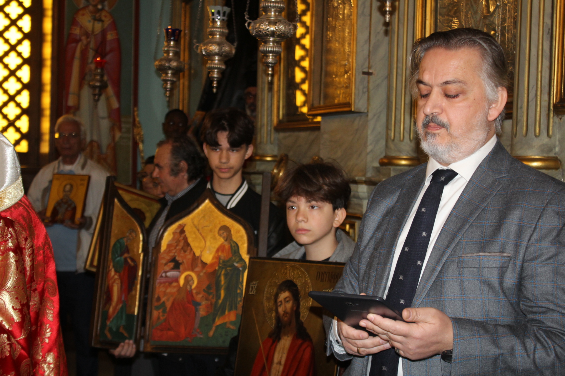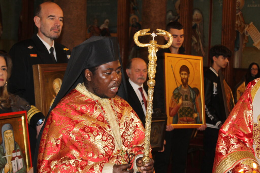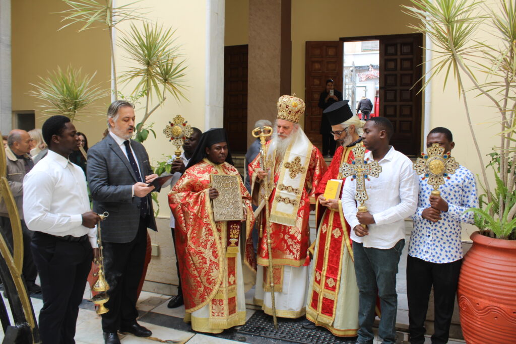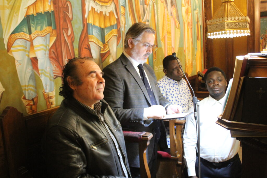 Στο ψαλτήρι ο Γενικός Πρόξενος της Ελλάδας στην Αλεξάνδρεια κ. Ιωάννης Πυργάκης, για άλλη μια φορά δημιούργησε κατανυκτικότητα, “φορτίζοντας” με την βυζαντινή υμνογραφία συγκινησιακά συναισθήματα. Μαζί του αρωγός ο μουσικός- ιεροψάλτης κ. Ιωάννης Γενειατάκης και οι εκπαιδευόμενοι – άρτι αφιχθέντες – από τις Αφρικανικές χώρες, νέοι μαθητές της Πατριαρχικής Σχολής Άγιος Αθανάσιος.