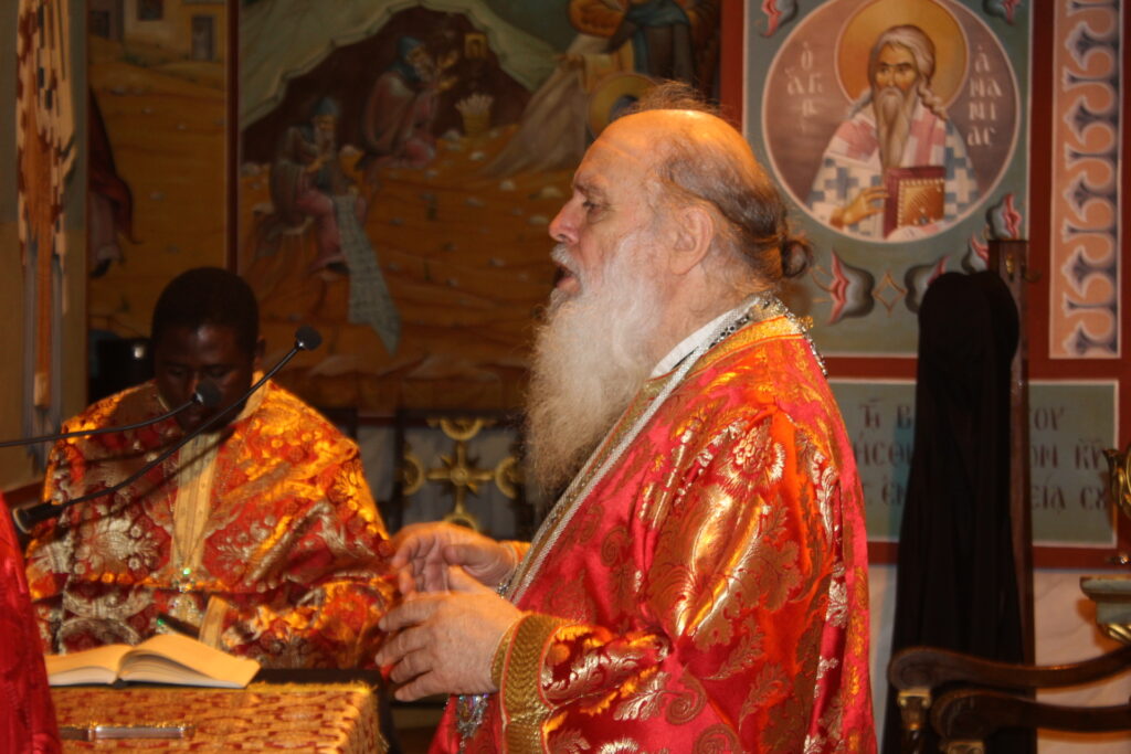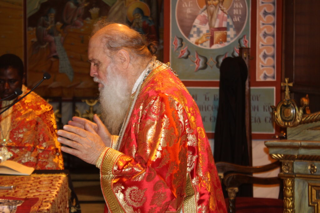 Στη συνέχεια ο Μητροπολίτης κ. Γερμανός διάβασε την αιτία που η Ορθοδοξία μας εορτάζει την Κυριακή αυτή, τόνισε με την ξεχωριστή του σεμνότητα και ταπεινότητα που τον χαρακτηρίζει, την πίστη που οφείλουμε όλοι στον Ιησού Χριστό, την Παναγία Θεοτόκο και τους Αγίους, ενώ εμφανώς συγκινημένος, μετέφερε την ευλογία και τις ευχές του Μακαριωτάτου ο οποίος βρίσκεται εκτός Αιγύπτου για το θεάρεστο ιεραποστολικό έργο, το οποίο τελεί ως Ιεράρχης της Χριστιανοσύνης στην αφρικανική ήπειρο αλλά και σε ολόκληρο τον κόσμο.