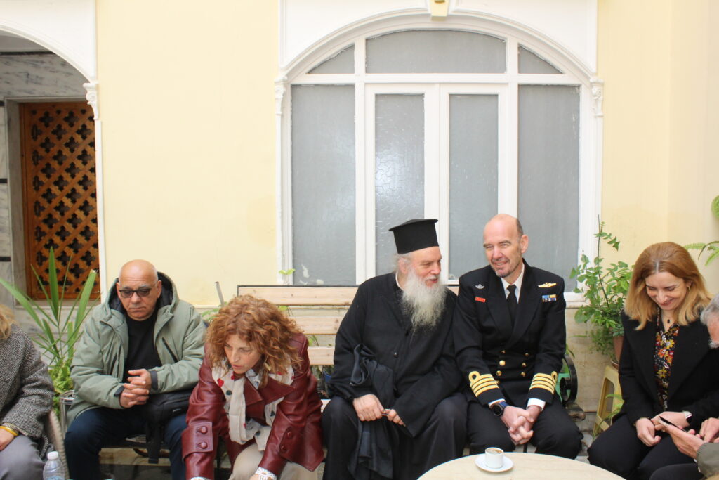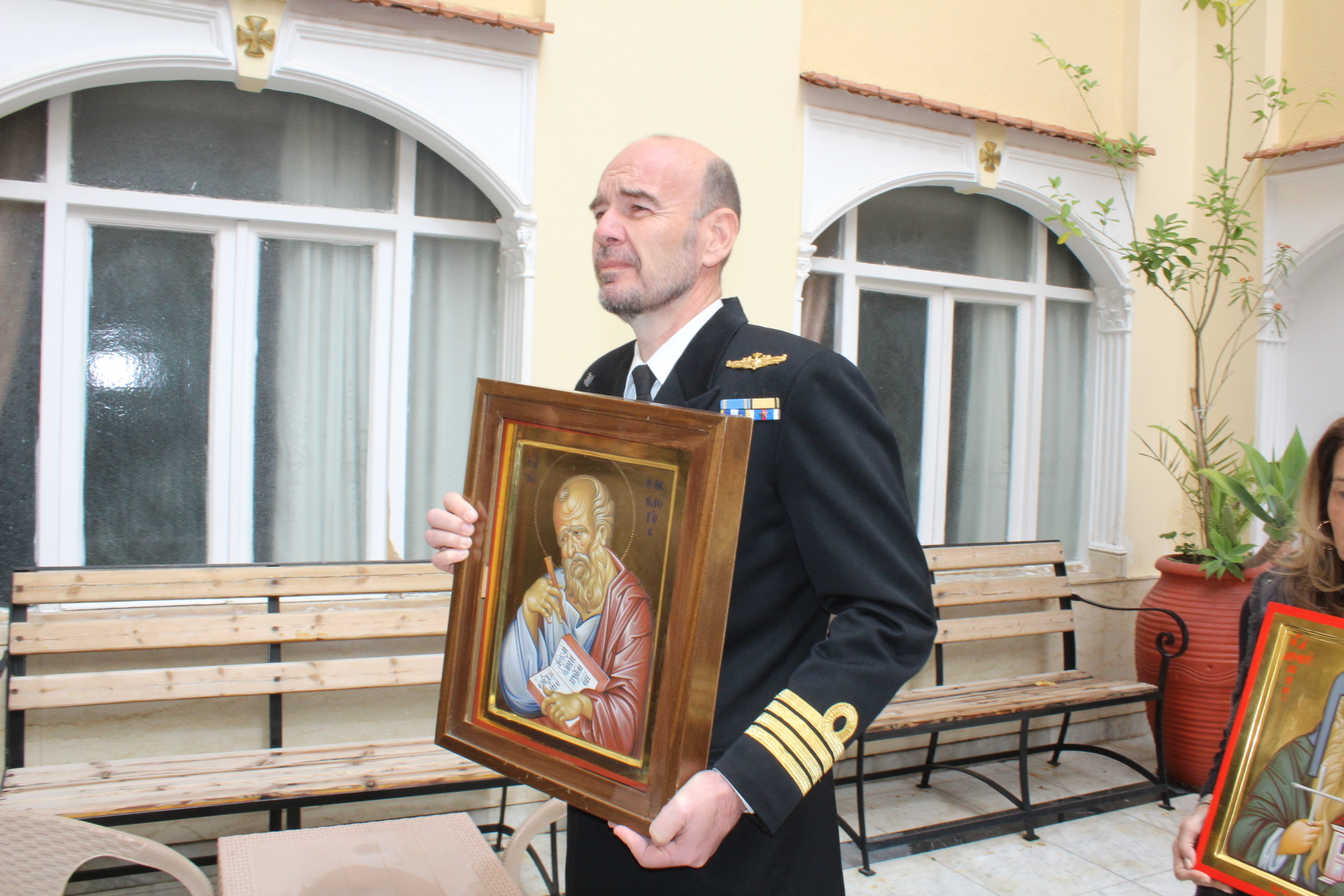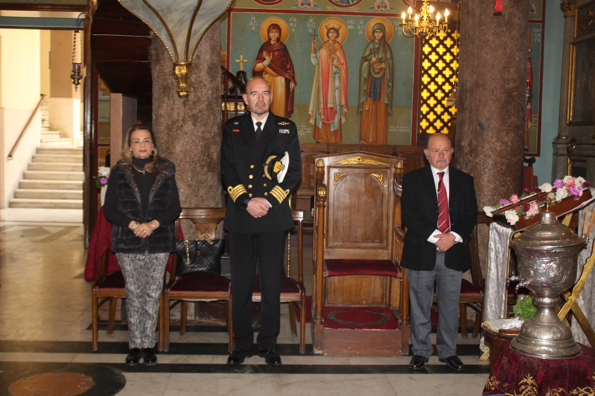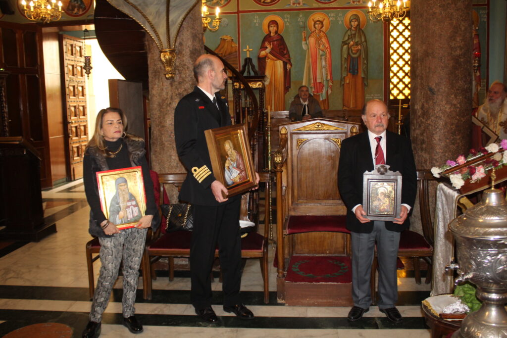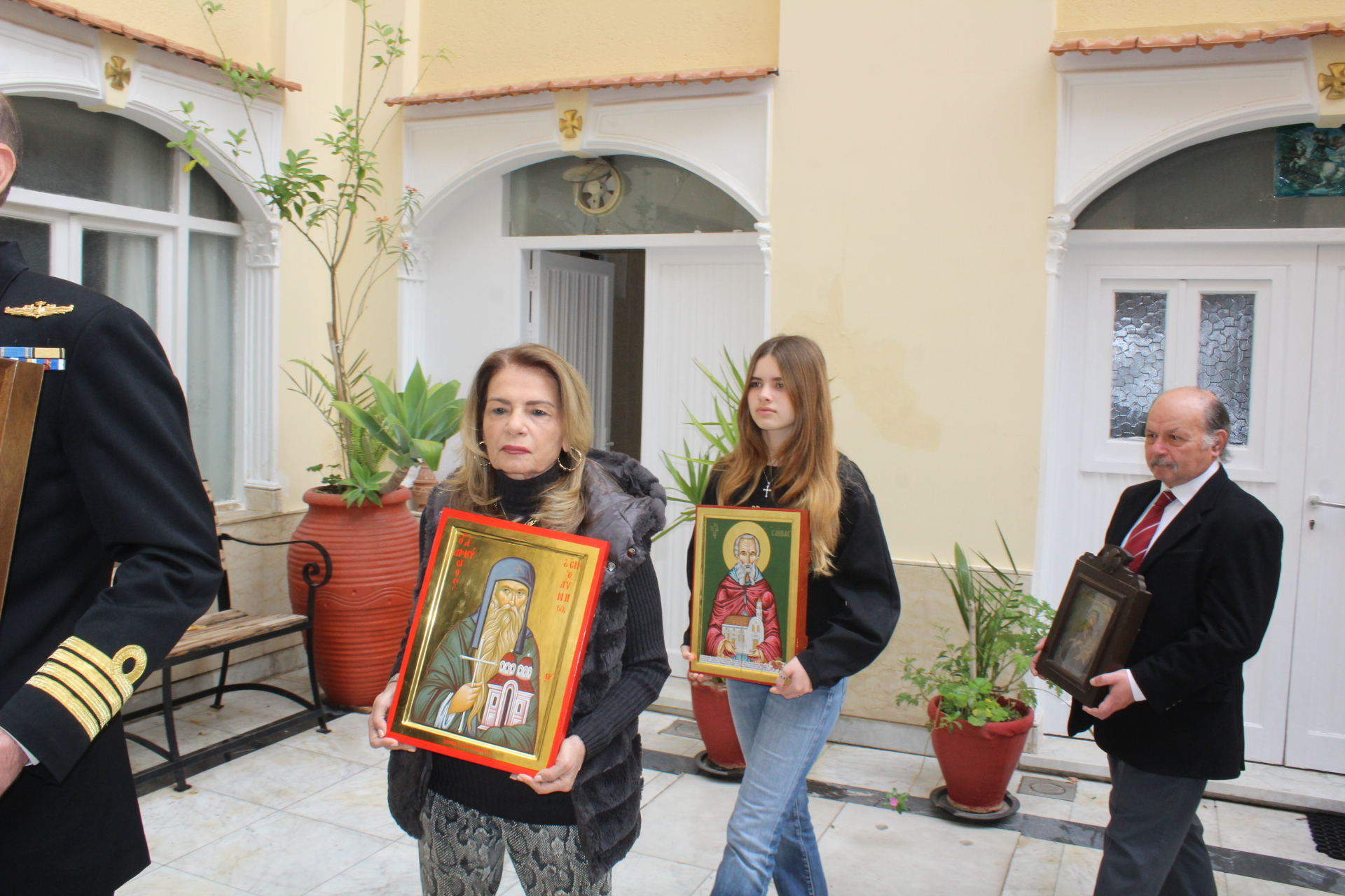 Εκ των παρισταμένων, ο Αντιπρόεδρος Α’ της Ελληνικής Κοινότητας κ. Νικόλαος Κόπελος, ο Σύνδεσμος του Πολεμικού Ναυτικού της Ελλάδας με την Αλεξάνδρεια, Πλοίαρχος κ. Χρυσόστομος Ράγκος, η Πρόεδρος του ΕΝΟΑ και του Πτολεμαίου Α’ κα Λιλίκα Θλιβίτου, μαθητές των Κοινοτικών Σχολείων και πιστοί της παροικίας, κρατώντας στα χέρια τους τις Άγιες εικόνες ακολούθησαν την ιερά πομπή, της περιφοράς των εικόνων στον προαύλιο χώρο του Αγίου Σάββα.