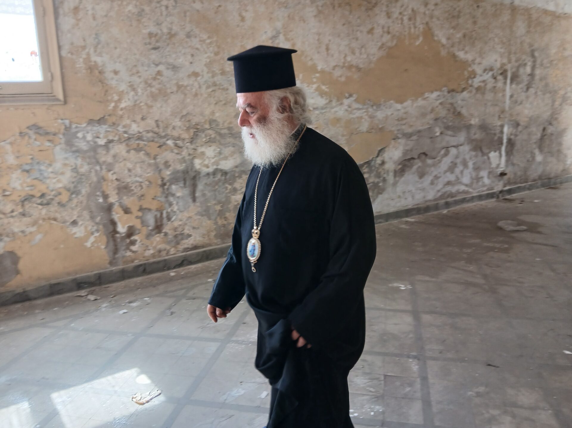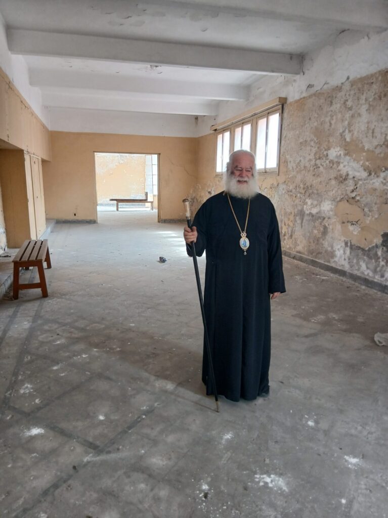 Κατά τη σημερινή επίσκεψη του Μακαριωτάτου πραγματοποιήθηκε μία πρώτη εκτίμηση της κατάστασης του κτηρίου το οποίο παρουσιάζει σοβαρές φθορές λόγω μακράς εγκατάλειψης.
